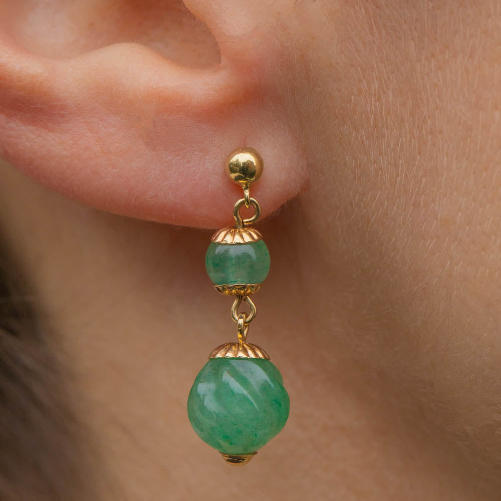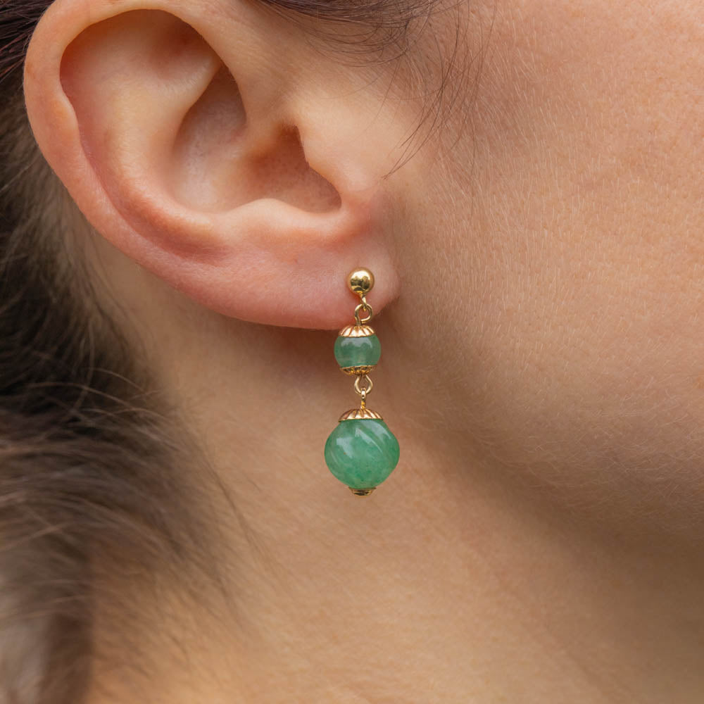9ct Gold Carved Jade Double Drop Earrings