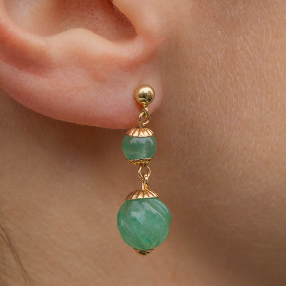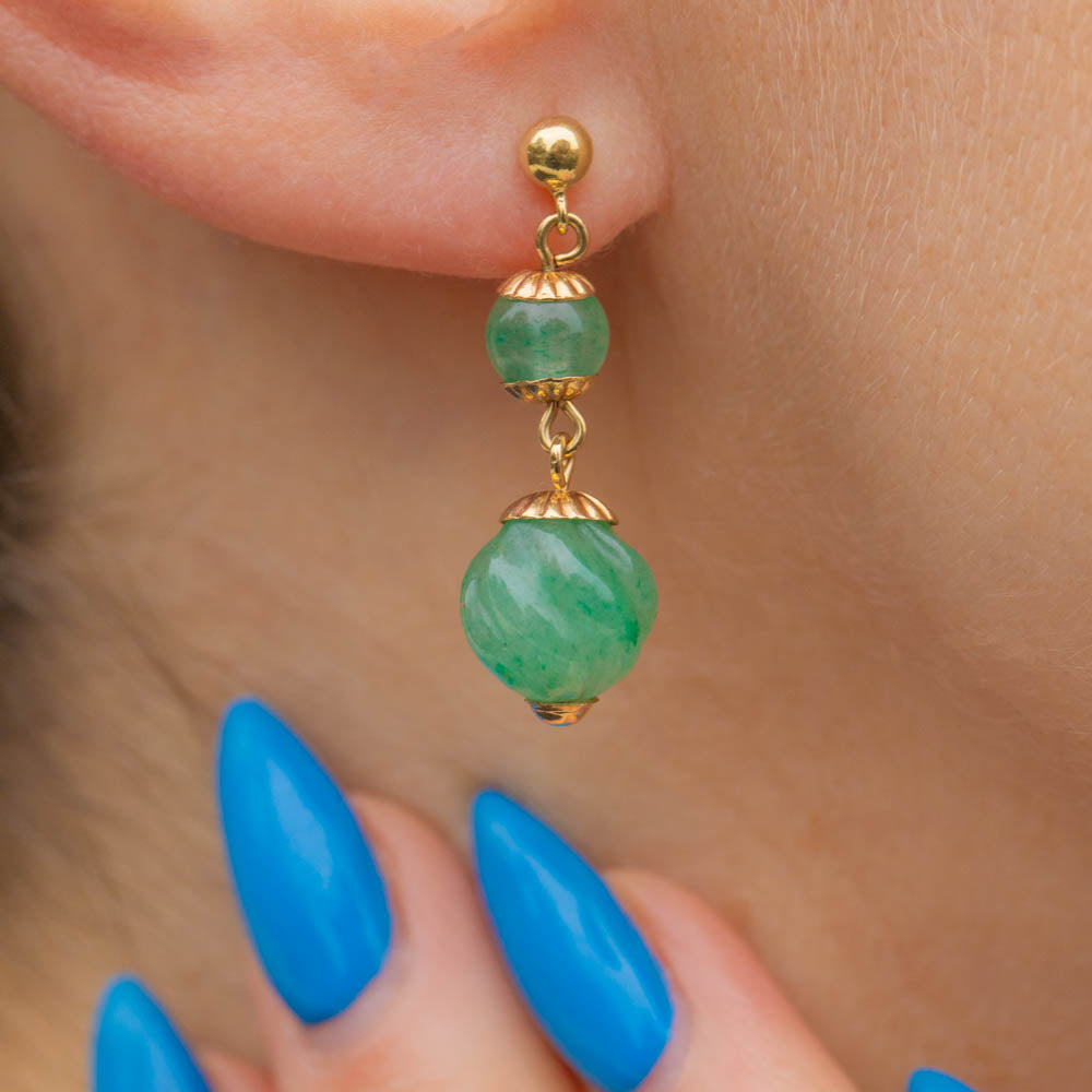Each Jade bead is framed by decorative 9ct Gold details, their buttery hue perfectly complementing the forest green gems to create an elegant colour palette. With bundles of vintage charm, these Jade earrings will be your go-to pair when you want to spruce up your outfit!