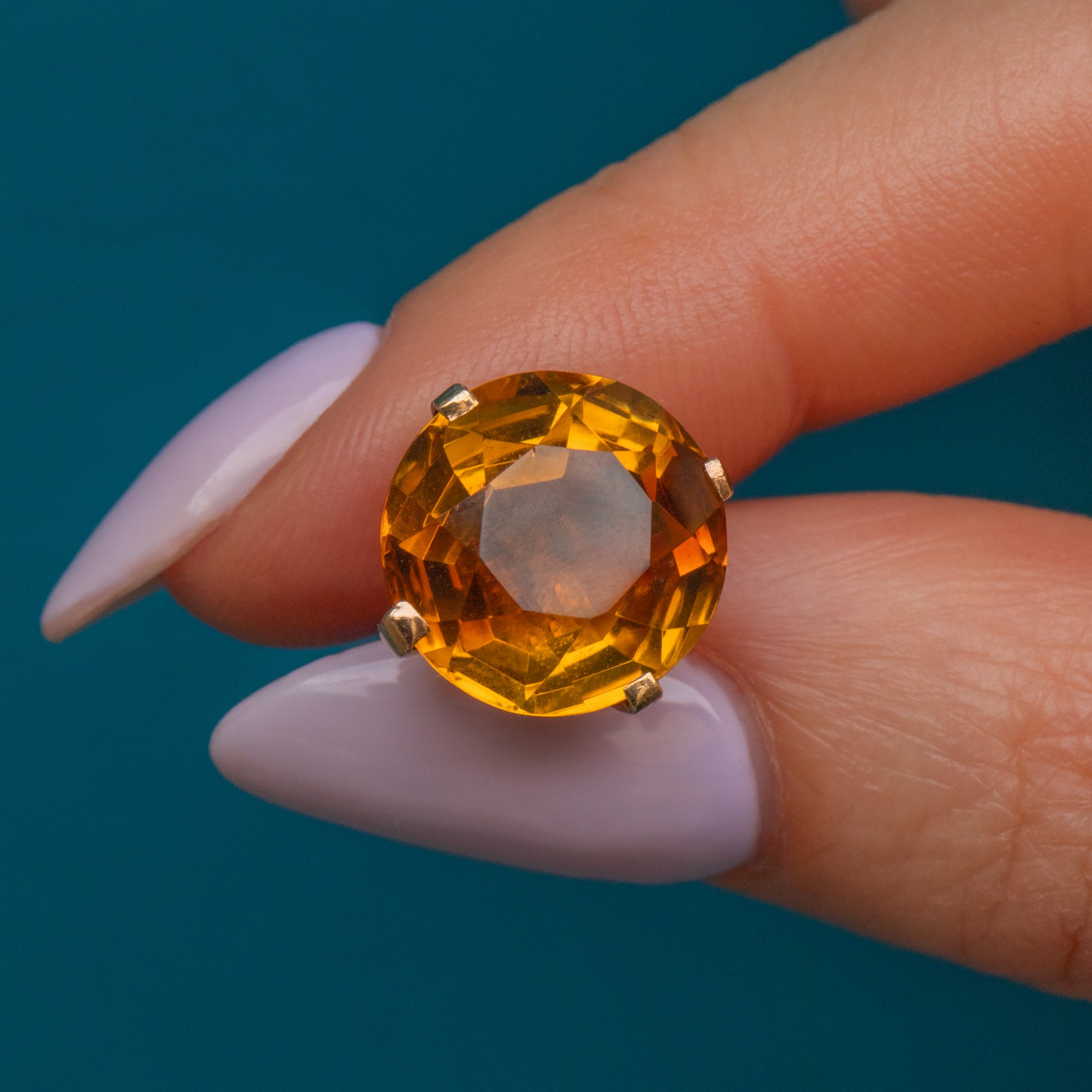 EXCELLENT. This 9ct Gold Citrine charm pendant is in excellent condition! This pendant is 6.00ct of pure bliss. The Citrine has a gorgeous hue, and is secure in its claw settings. The jump-ring allows you to wear this piece securely from a necklace or dog-clip. This piece used to be a button, but can be worn beautifully as a pendant!