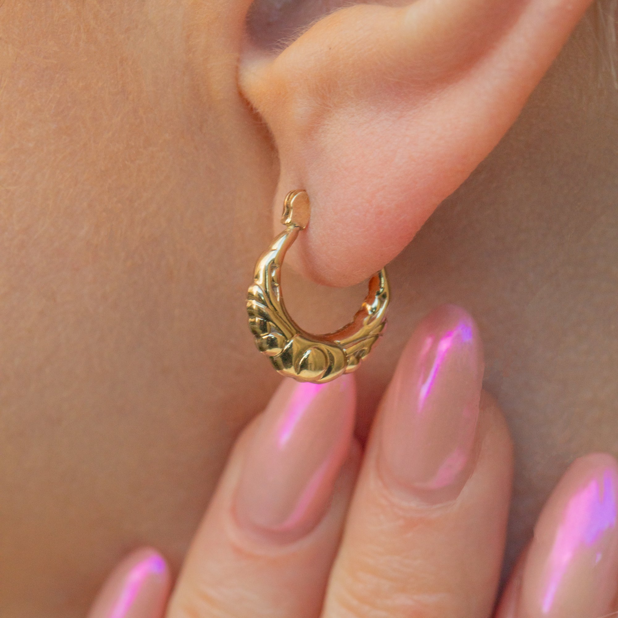 A classic design, these vintage Gold huggies have a sweet and symmetrical design that make these pretties a fabulous investment for your collection.