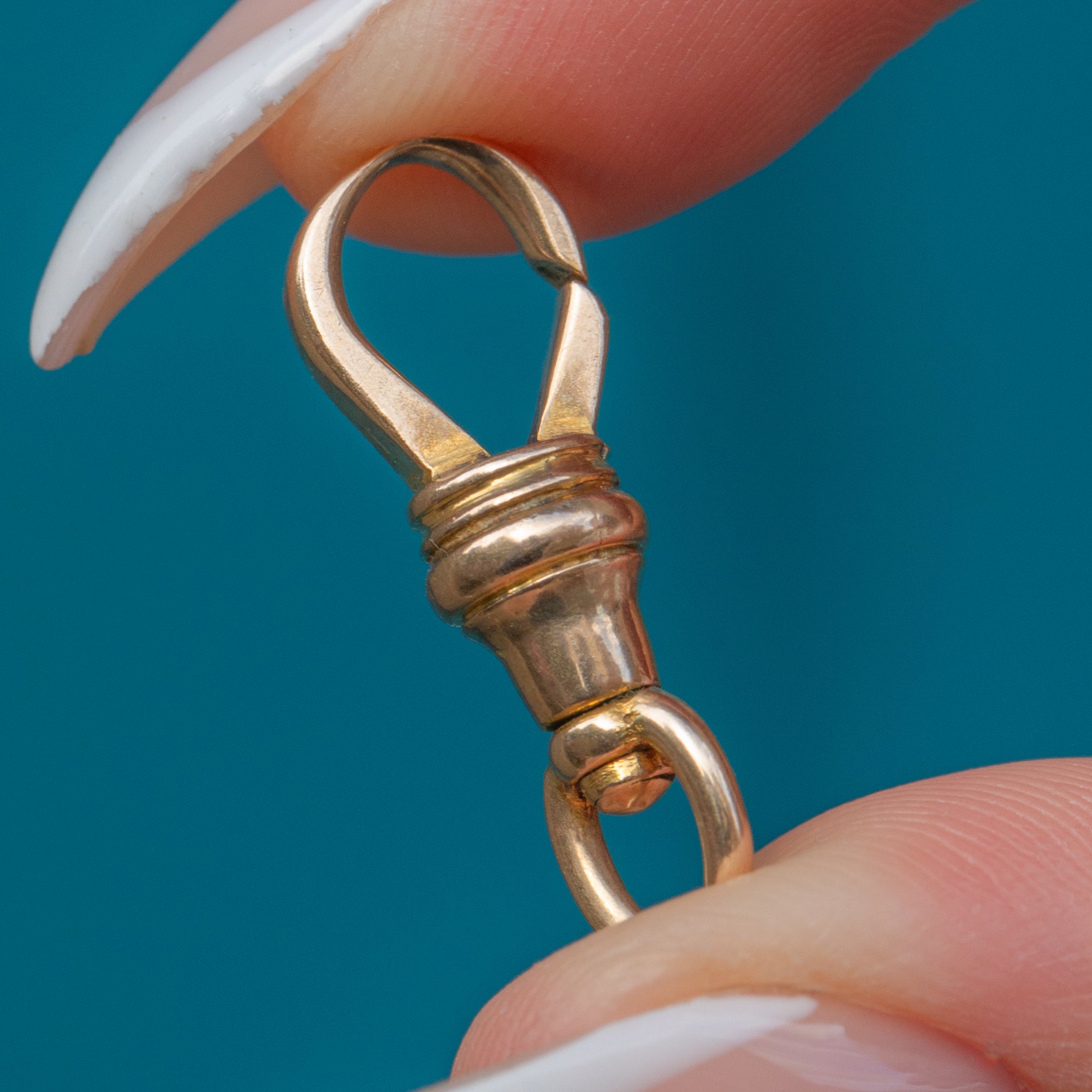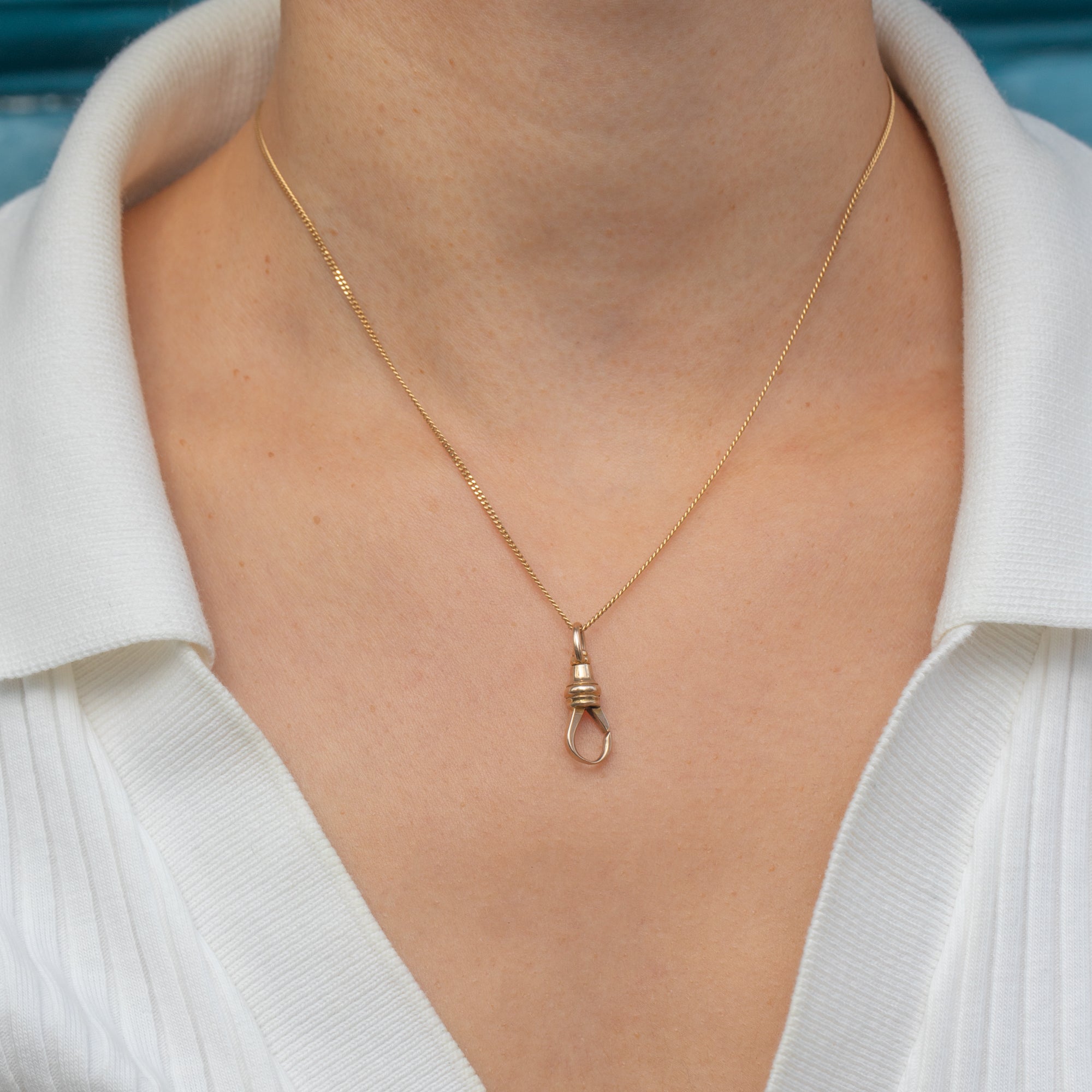 This Antique Victorian dog clip is crafted in solid 9ct Gold, a versatile and collectible jewellery fitting from the 19th century. Measuring 21.5mm long, it is ideal for attaching charms, fobs, pendants, or chains. With its warm Gold tone and classic design, this piece combines practicality with timeless antique style.
