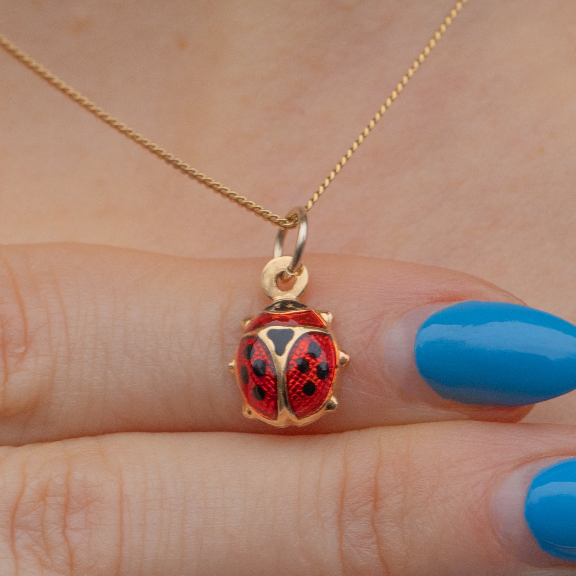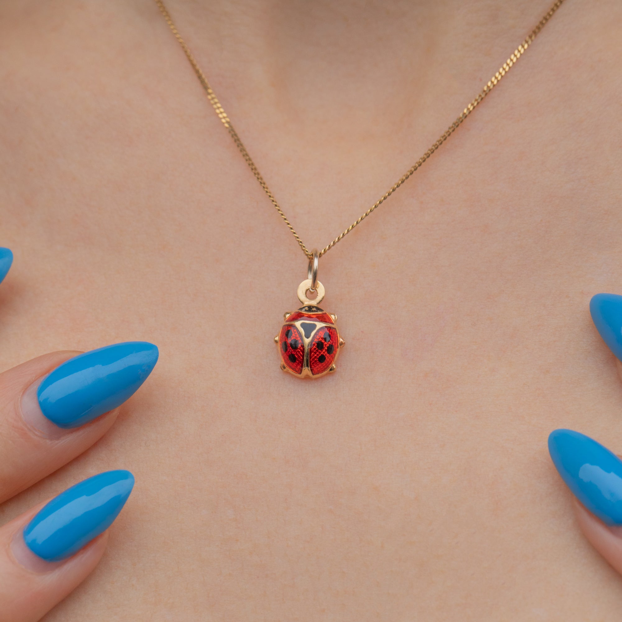 EXCELLENT: This 9ct Gold Enamel ladybird charm is in excellent condition. Her craftsmanship is excellent, and her Enamel intricately detailed. Free from any visible signs of wear, there is little else to report about this cutie!
