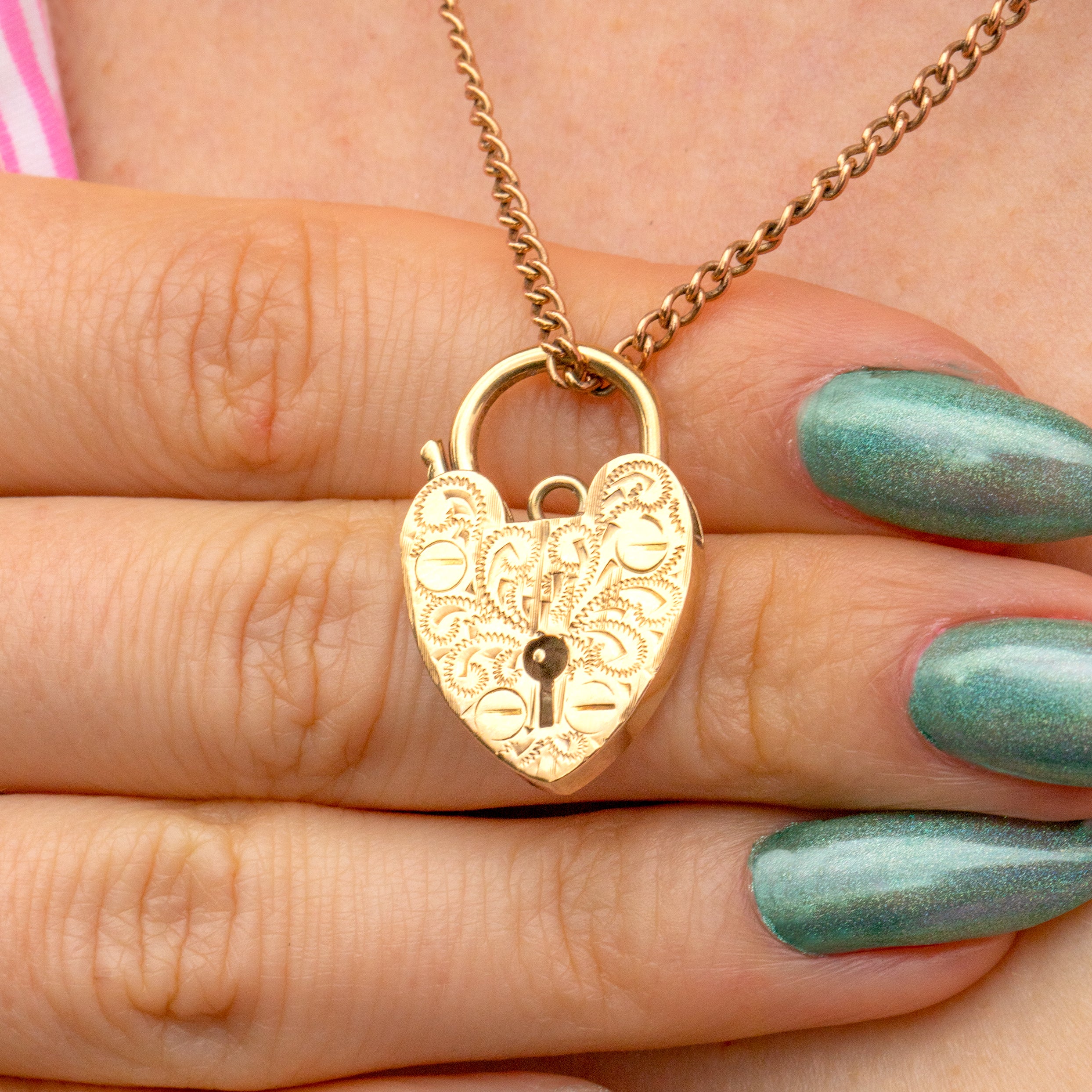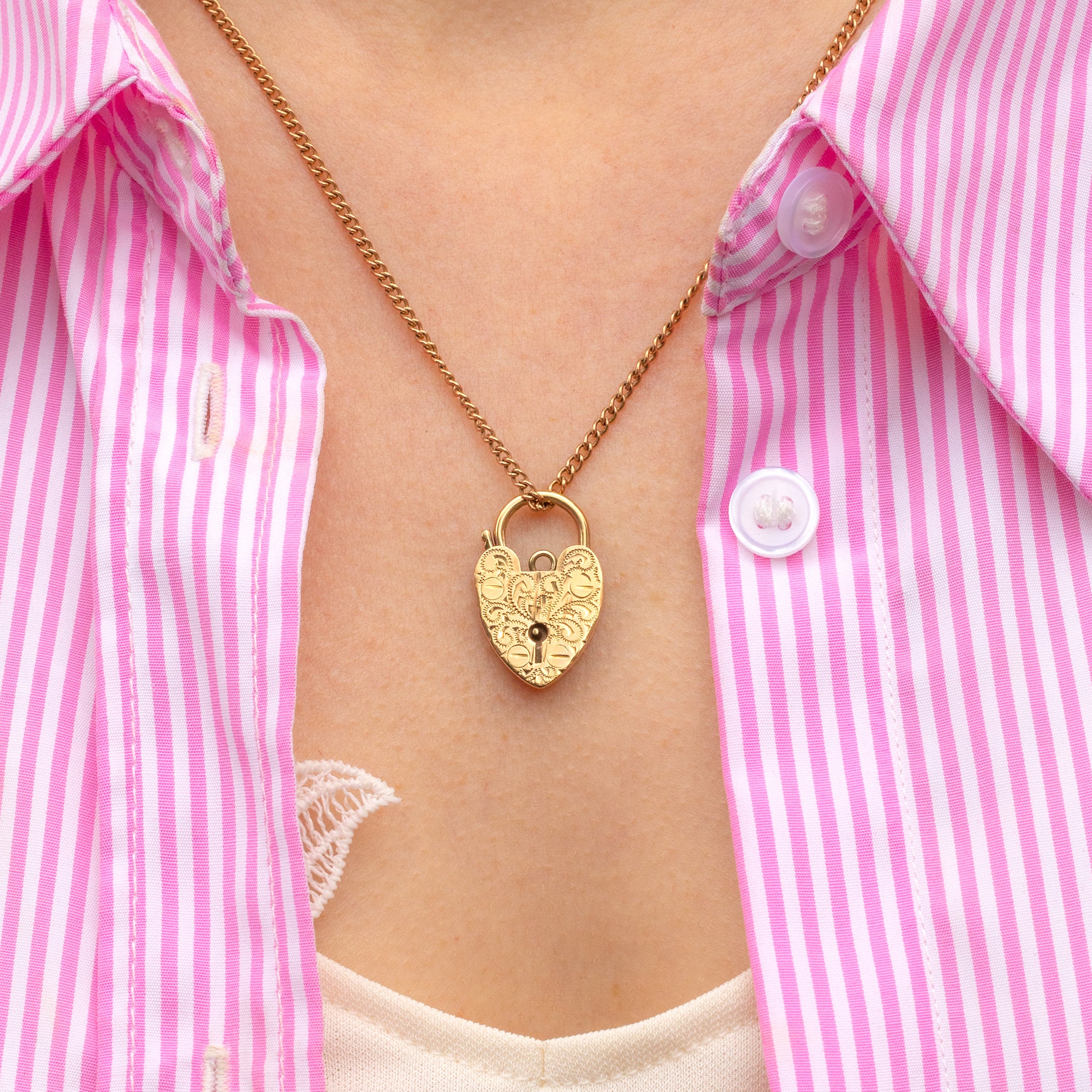 Bring a touch of vintage charm to your collection with this cute 9ct Gold engraved heart padlock pendant! Crafted from solid 9ct Gold, this dainty delight boasts gorgeous engraved details that catch the light beautifully.