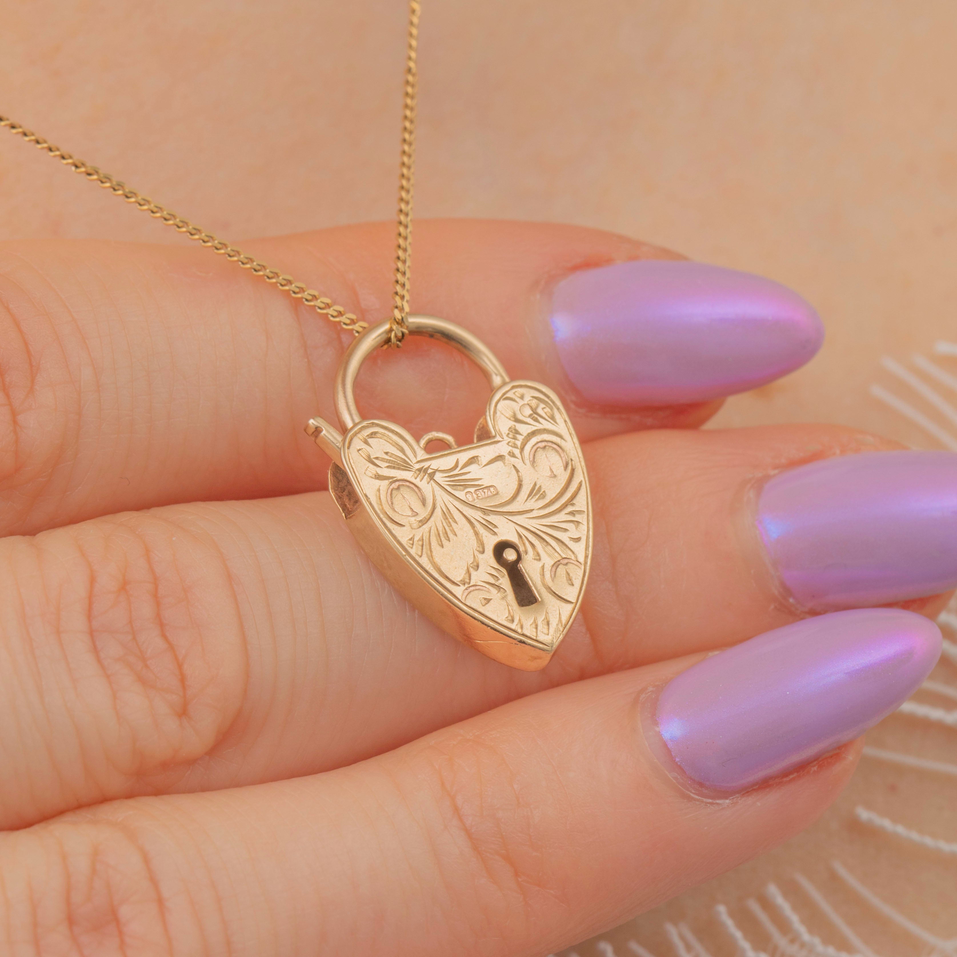 Steeped in romantic sentiment, heart padlocks were gifted as an indication of love and lifelong commitment. This Victorian pendant is adorned by ornate swirled engravings, giving her a quintessentially romantic allure.