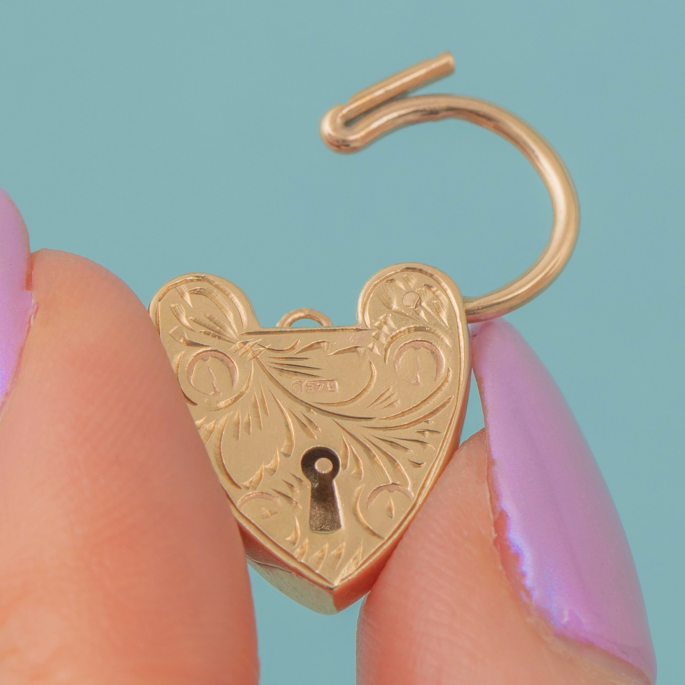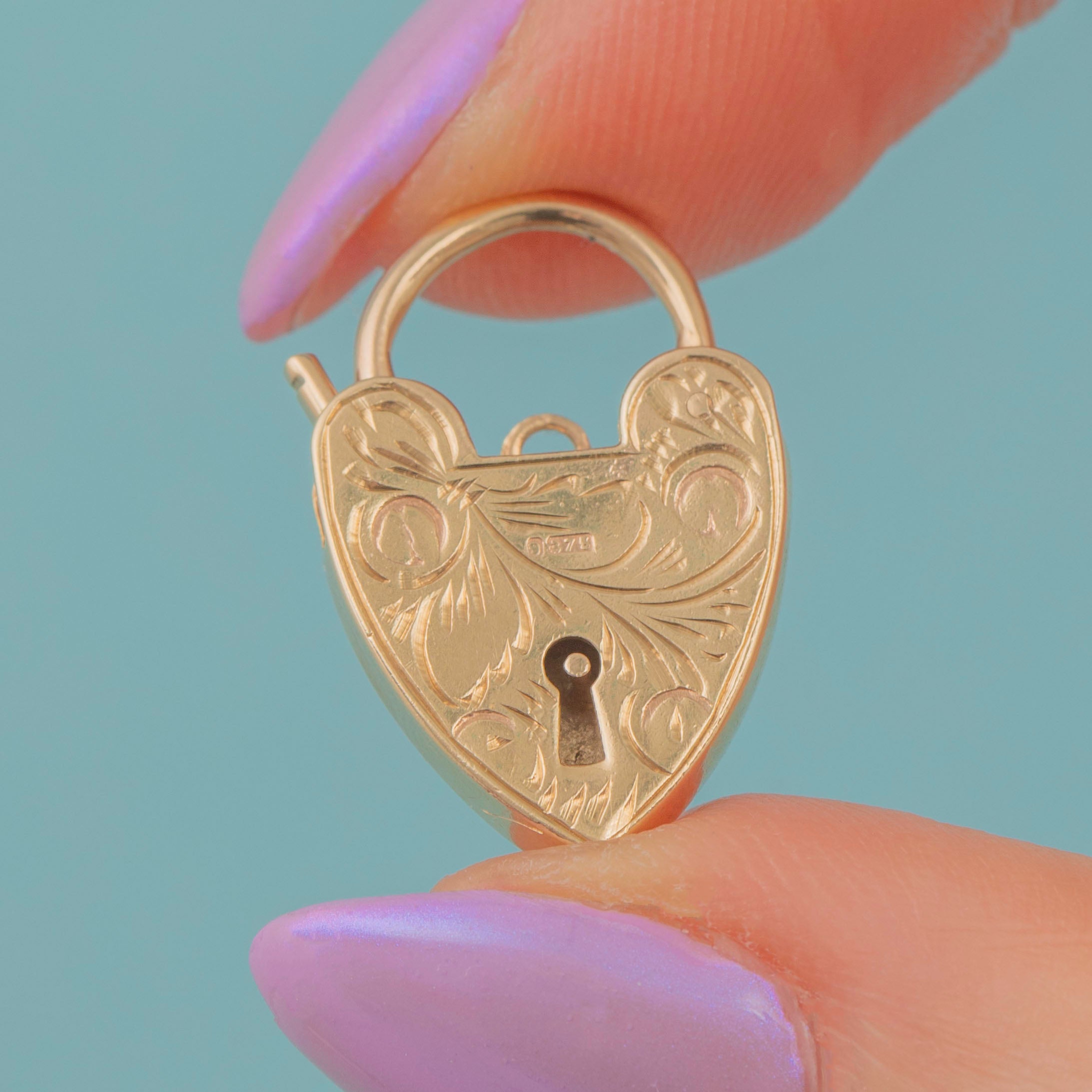 This Victorian 9ct Gold engraved heart padlock pendant is a petite treasure! Crafted entirely from buttery 9ct, she is a highly collectible piece!