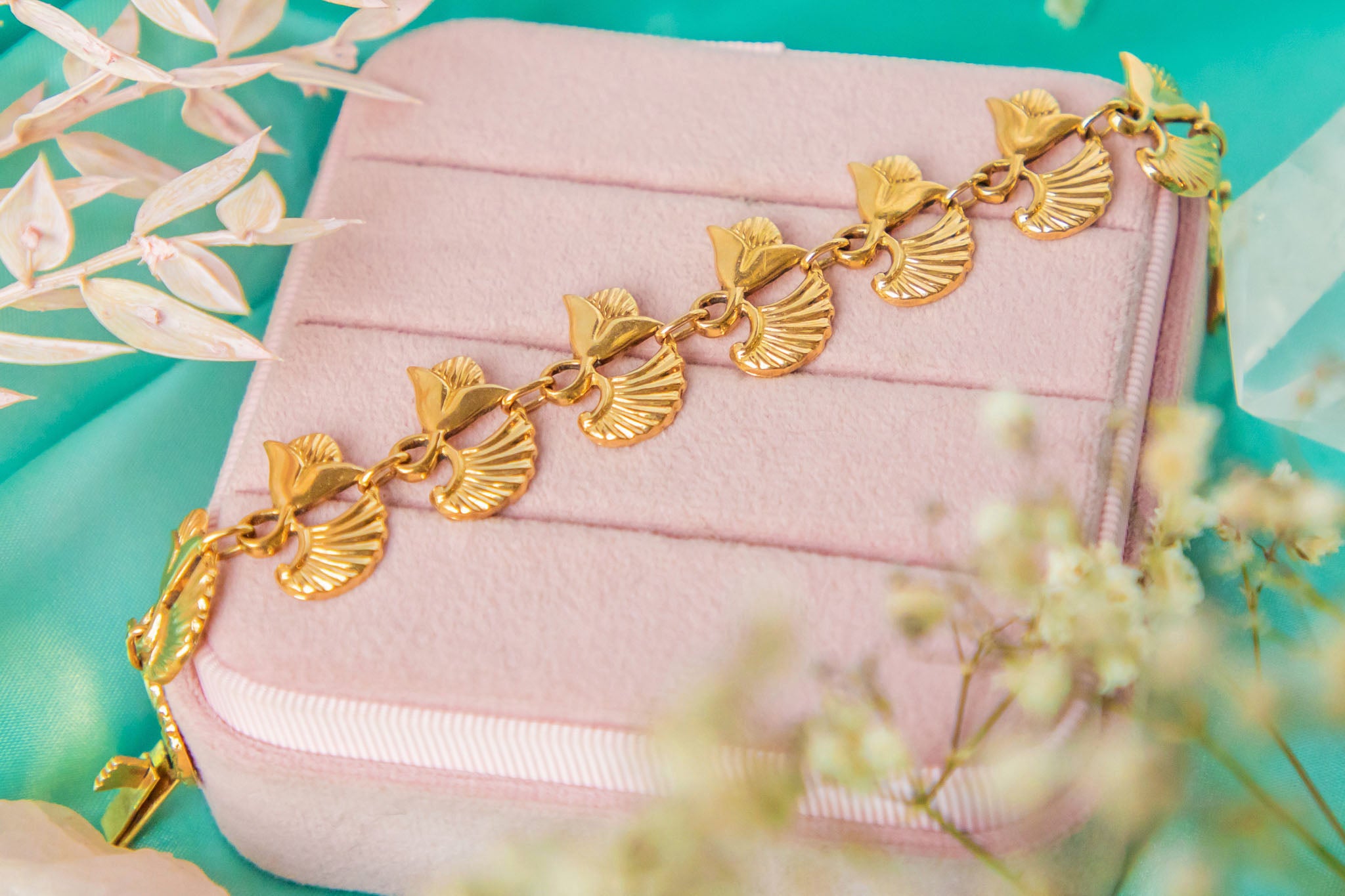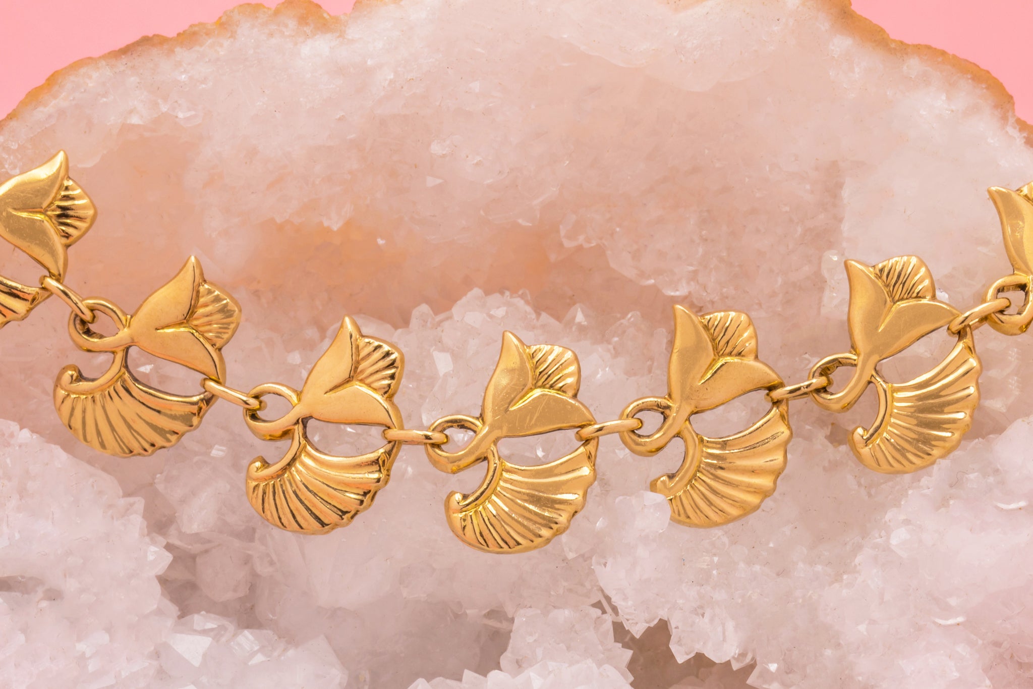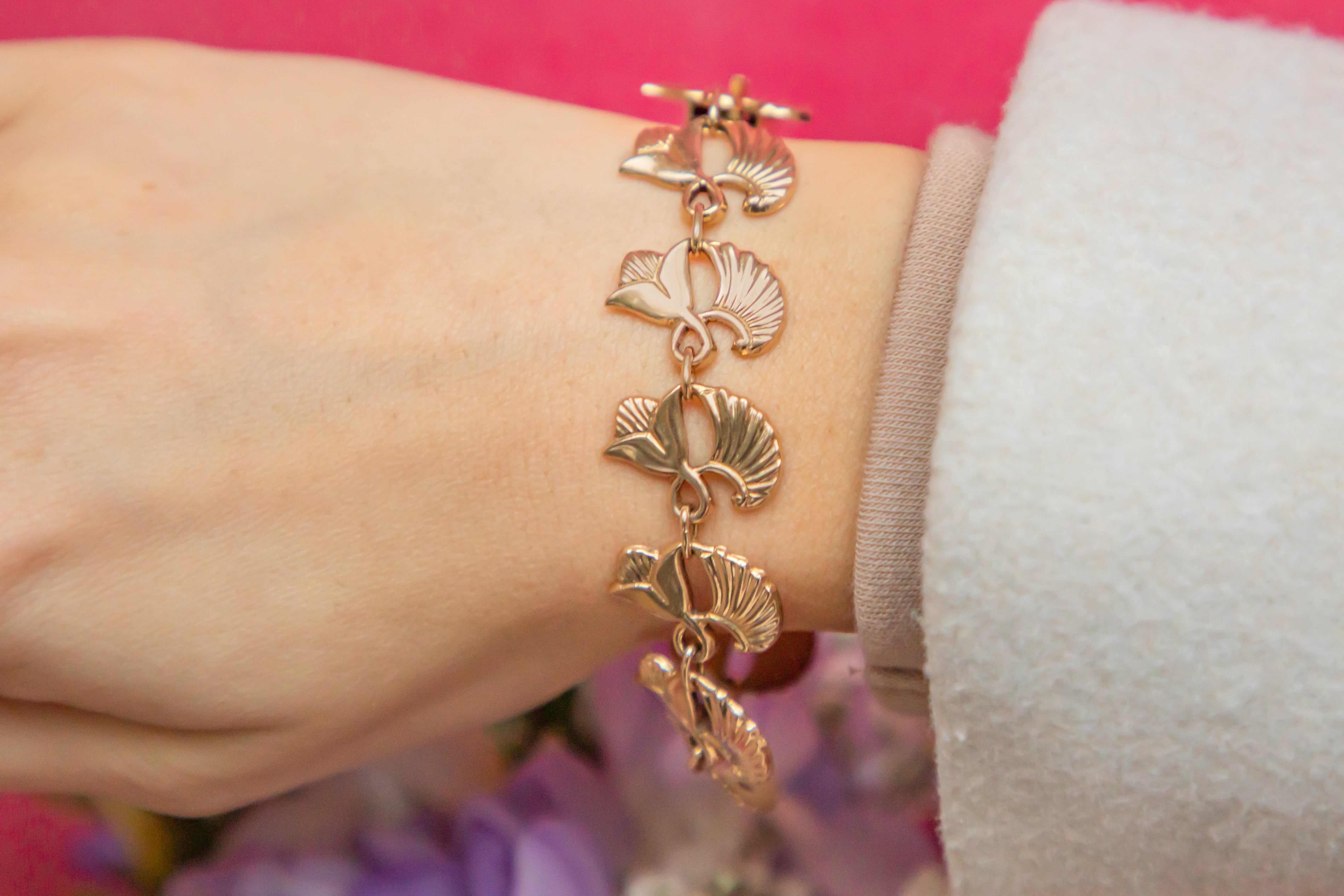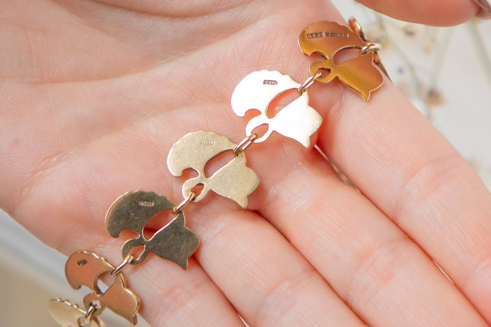 We love this 9ct Gold flower link bracelet! This splendid piece has been crafted entirely from 9ct Gold, and we just adore that pale buttermilk hue.