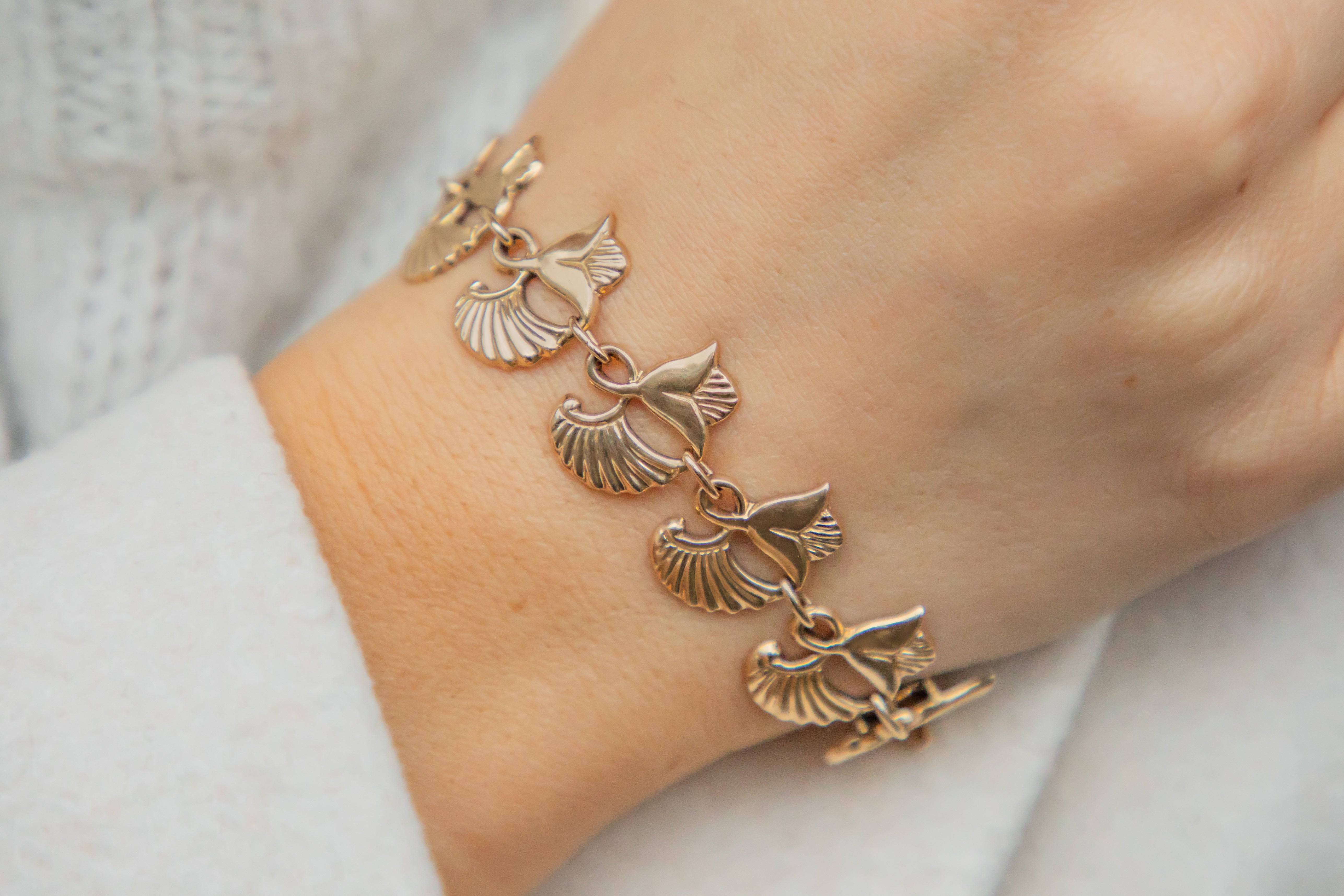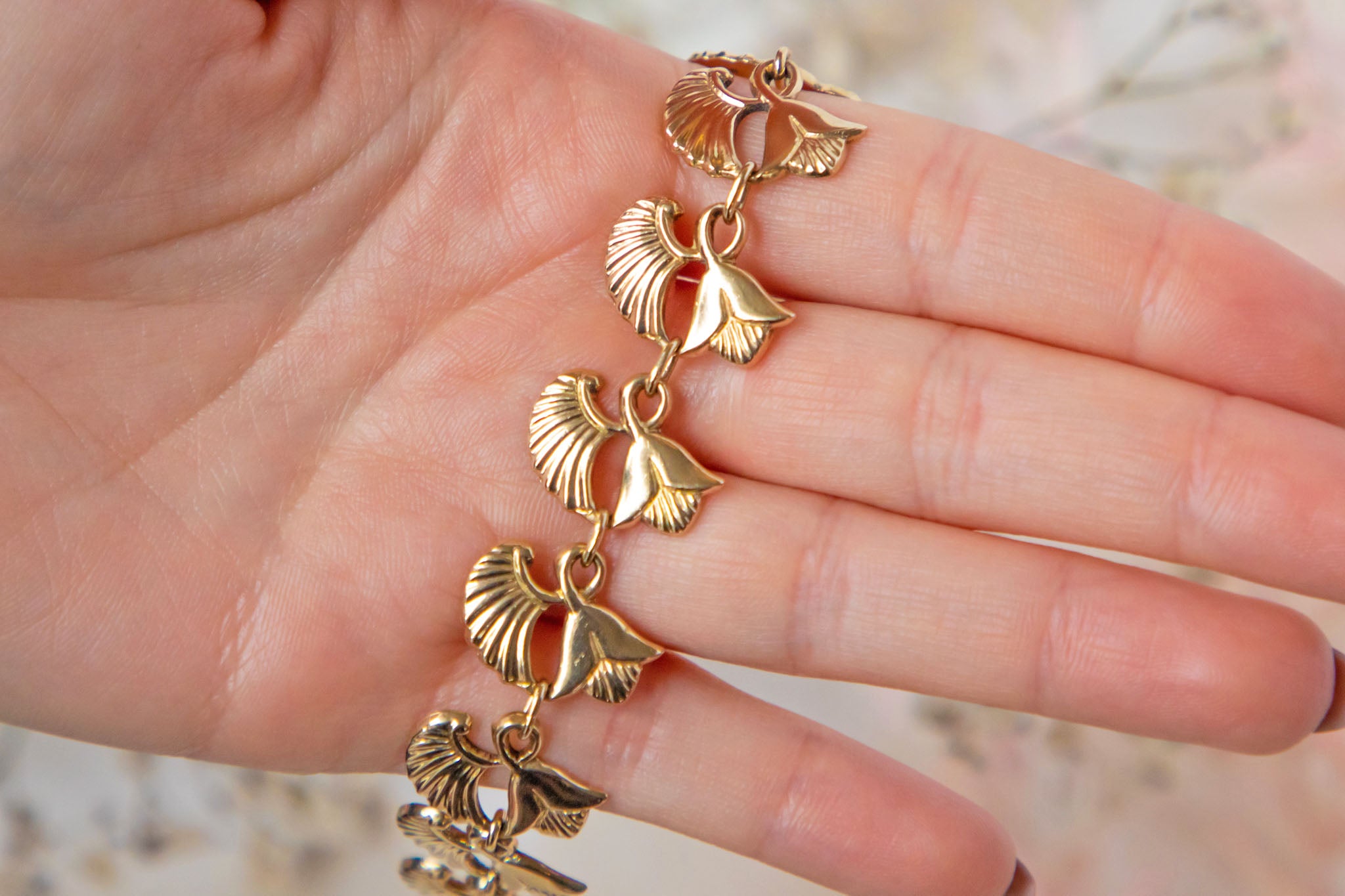This vintage Gold bracelet is like nothing we've seen before, and she looks ever so feminine adorning the wrist. The back of the piece has a full set of hallmarks, and the bracelet closes with a discreet clasp!