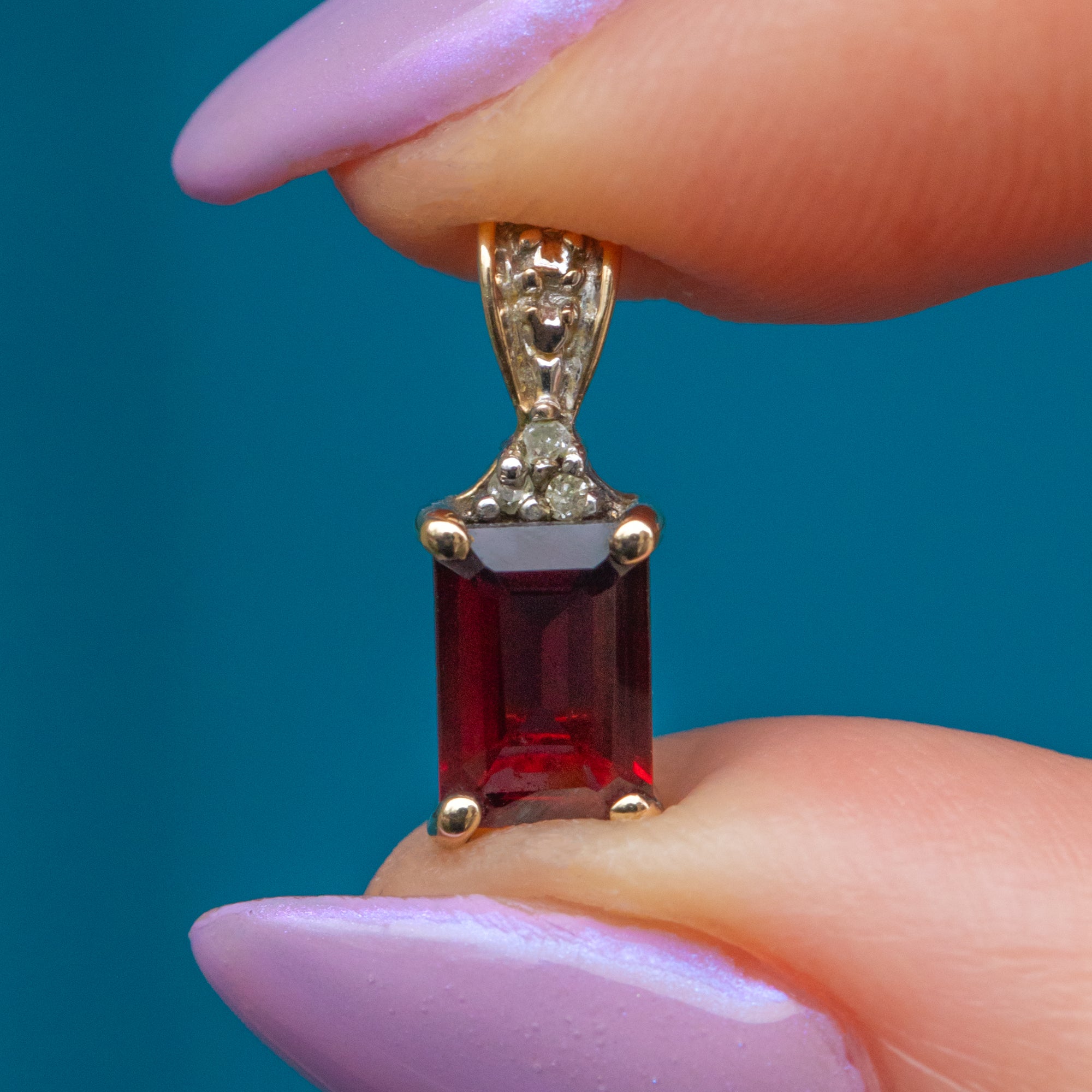 9ct Gold Garnet Diamond Charm, 1.60ct Garnet