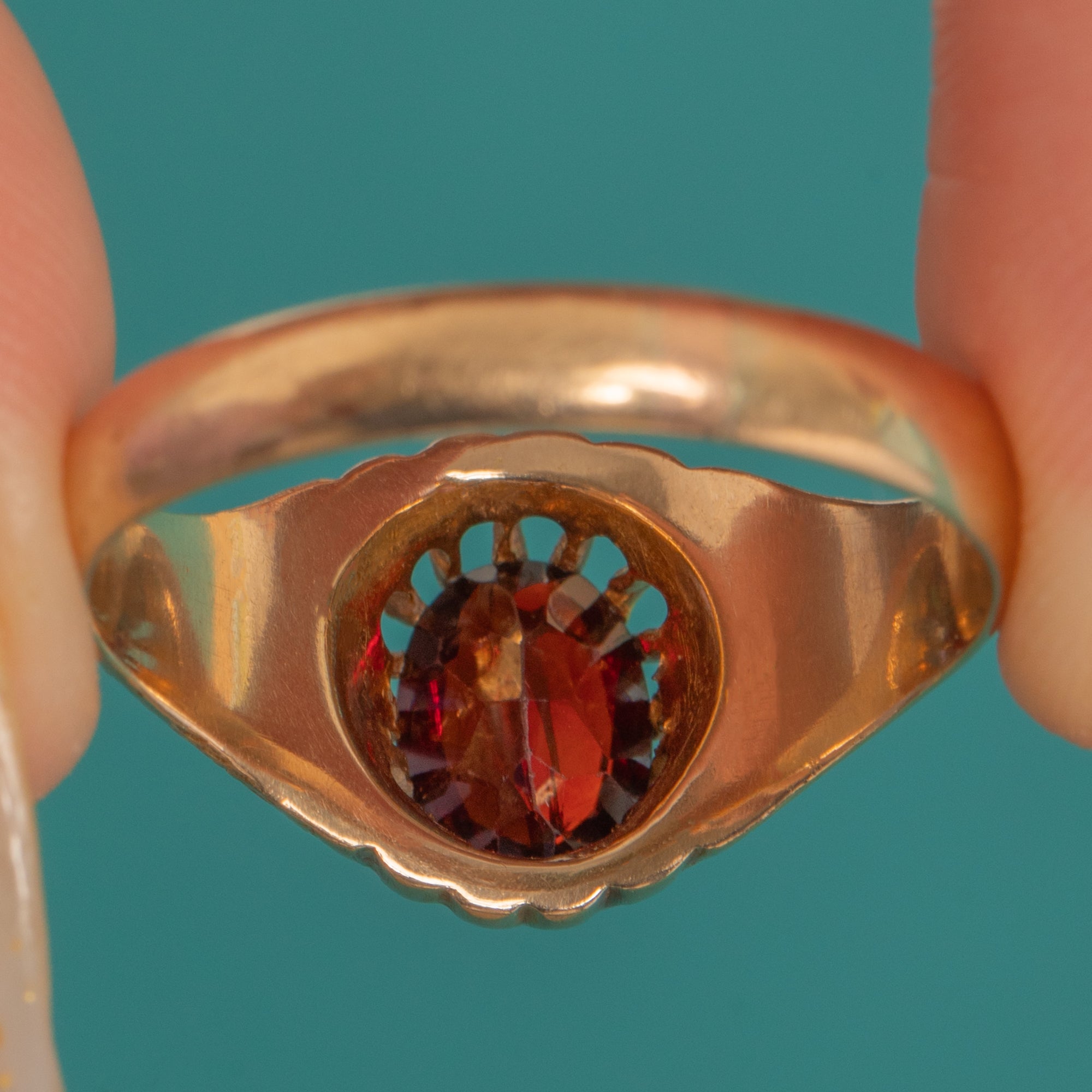 9ct Gold Garnet Oval Buttercup Ring, Engraved Shoulders c.1917 Item added