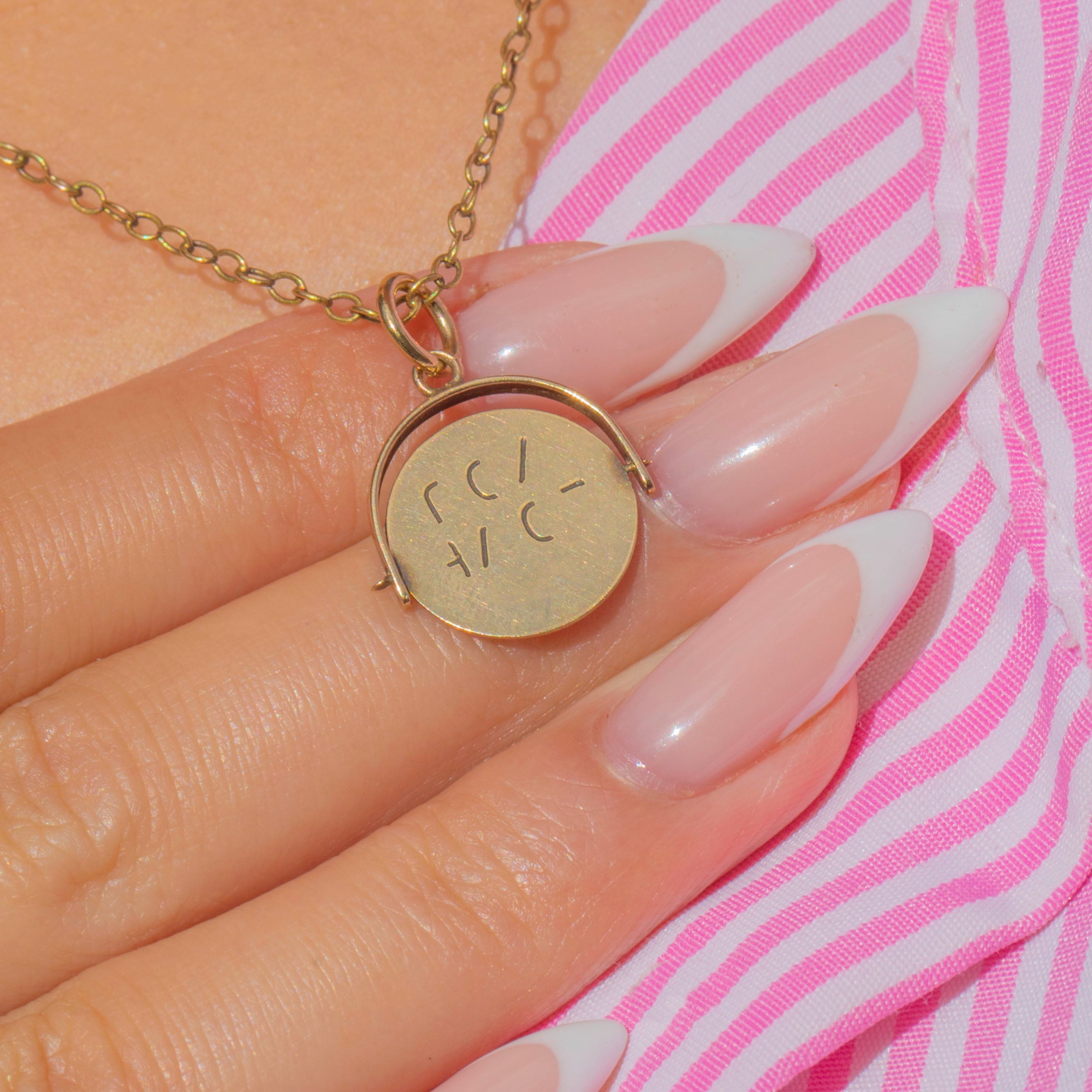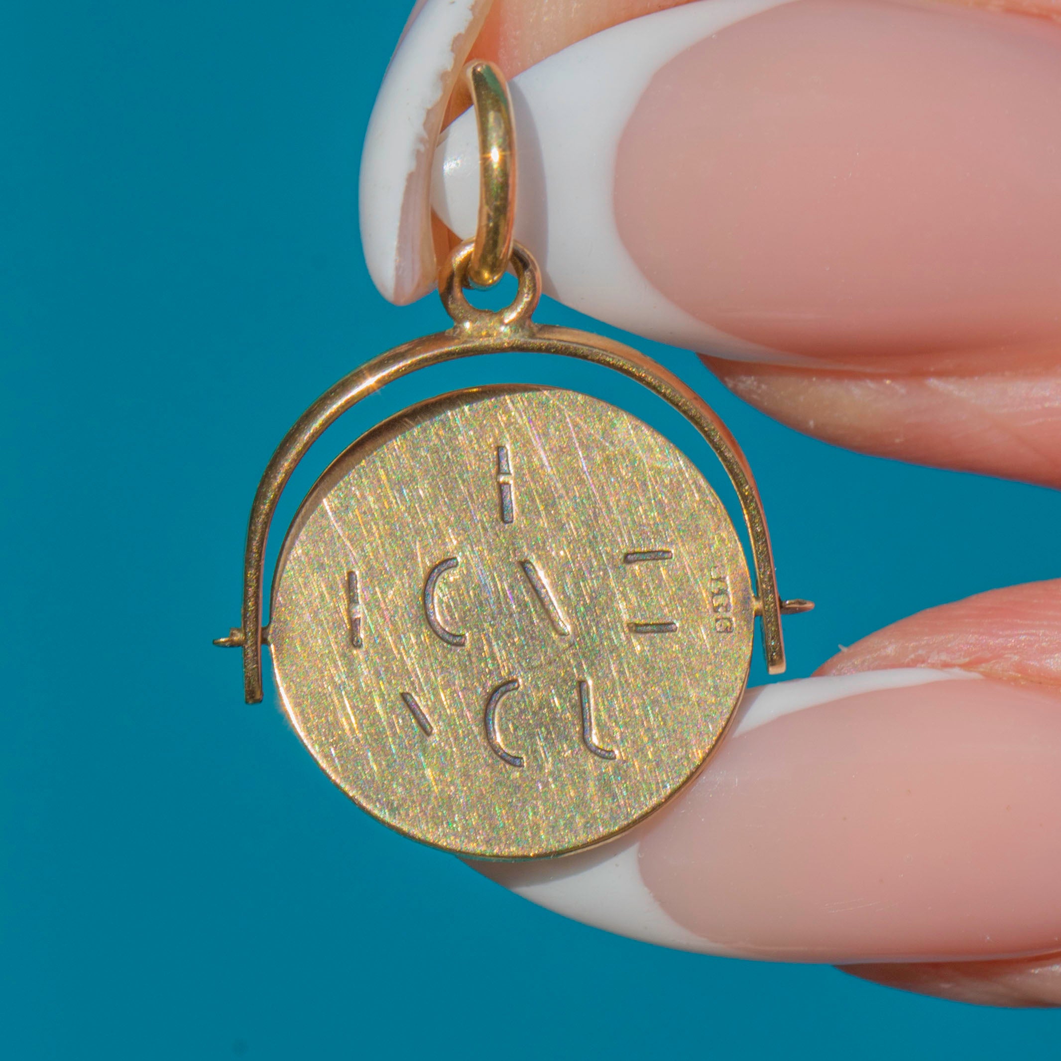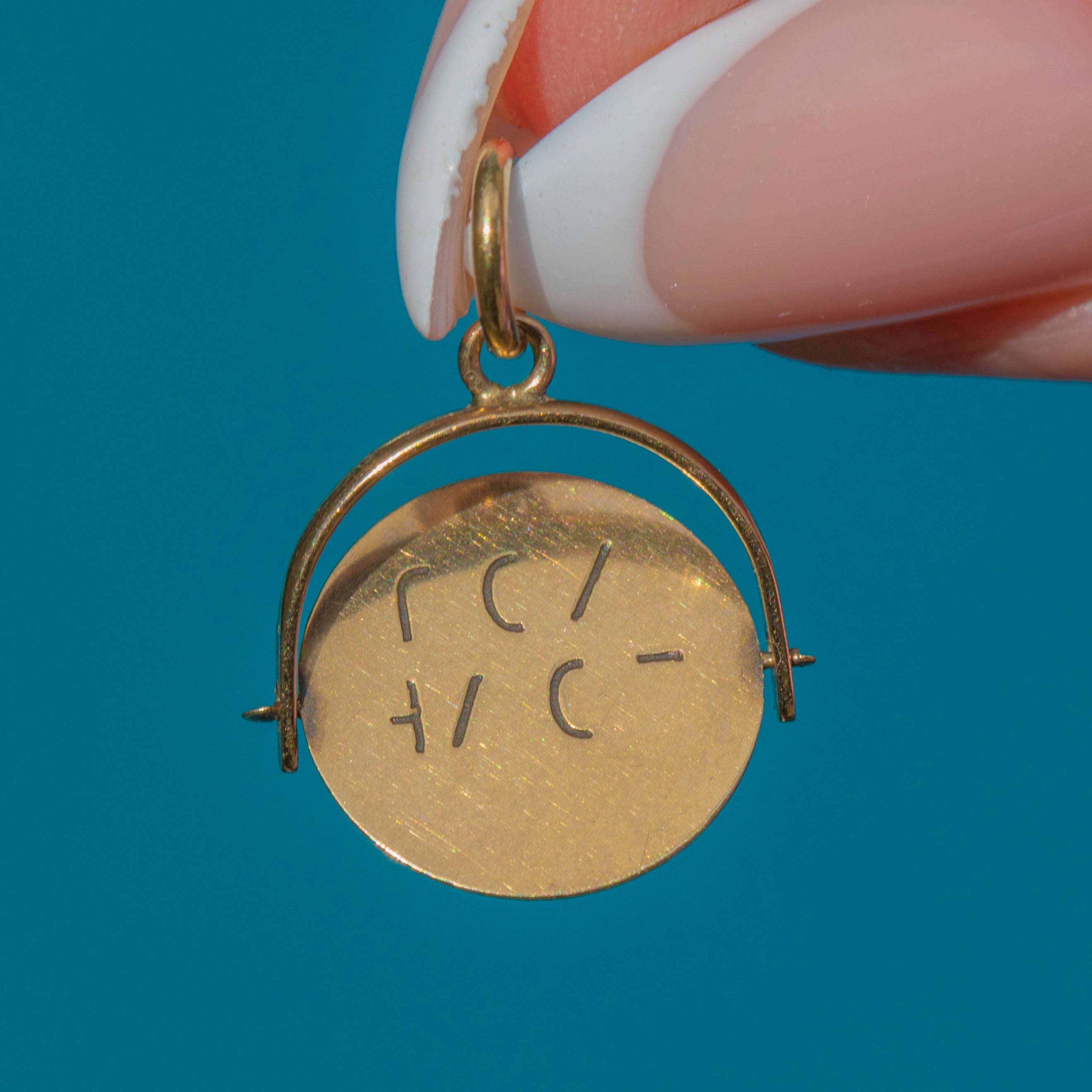 If you are looking for the perfect love token, look no further than this vintage spinner pendant! A lovely tactile piece, the pendant has a freely spinning disc that spells out the word "I love you" when in motion.