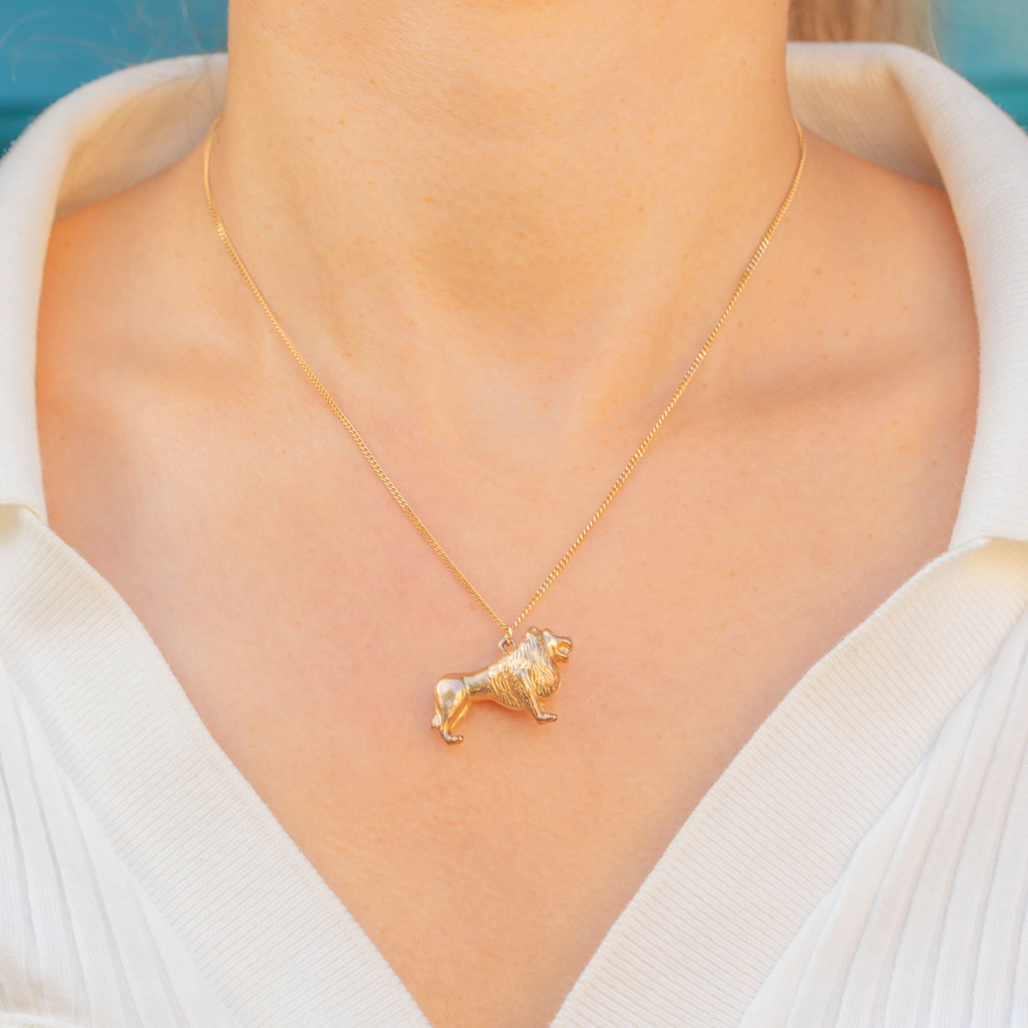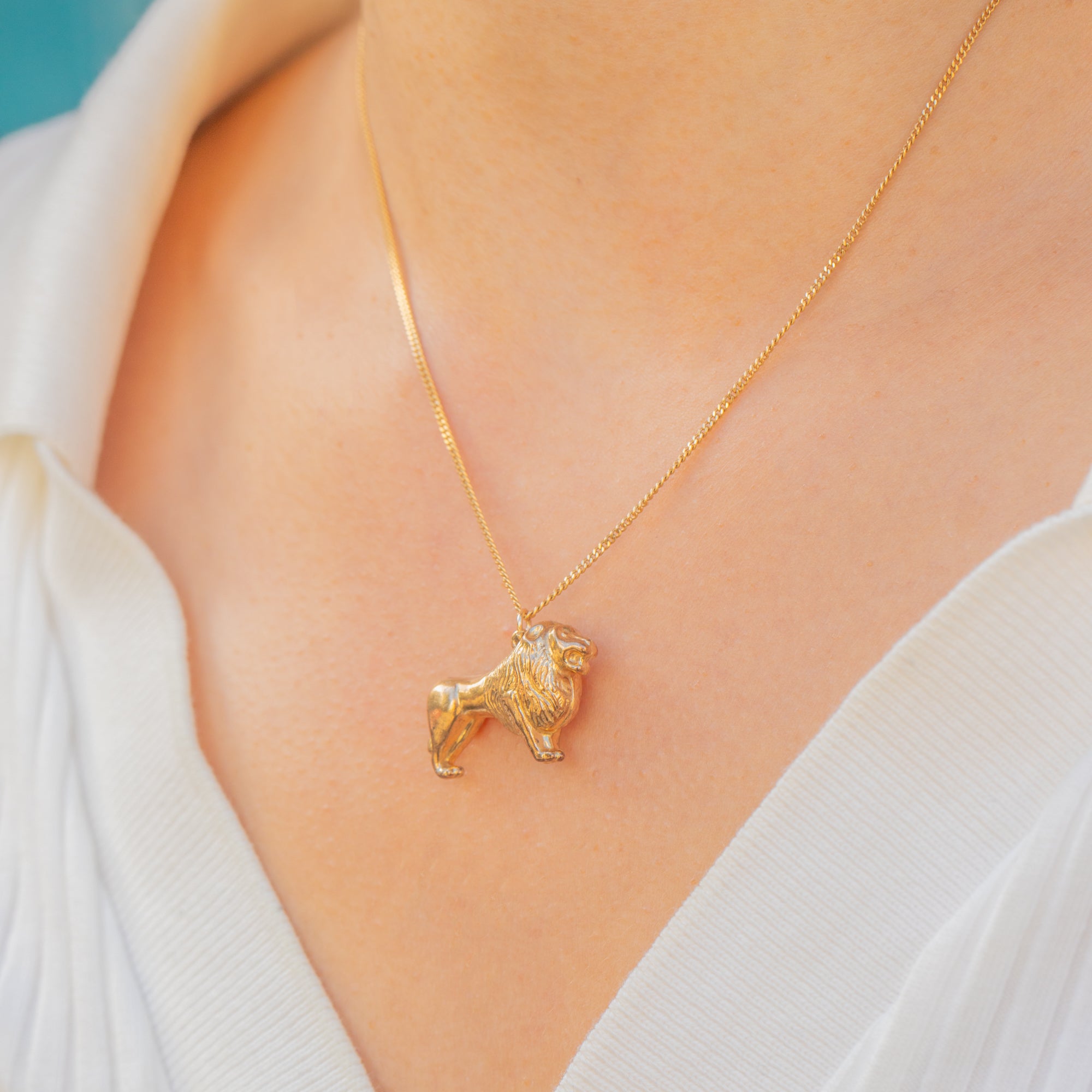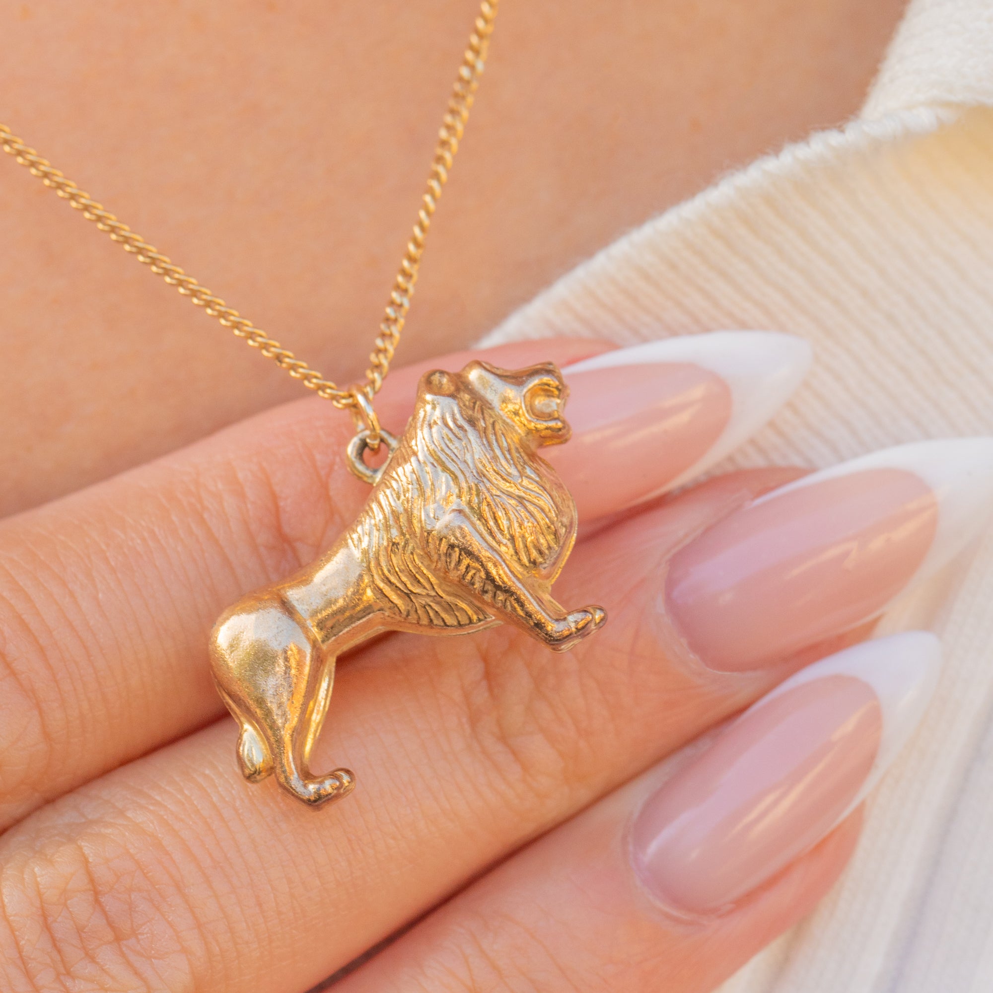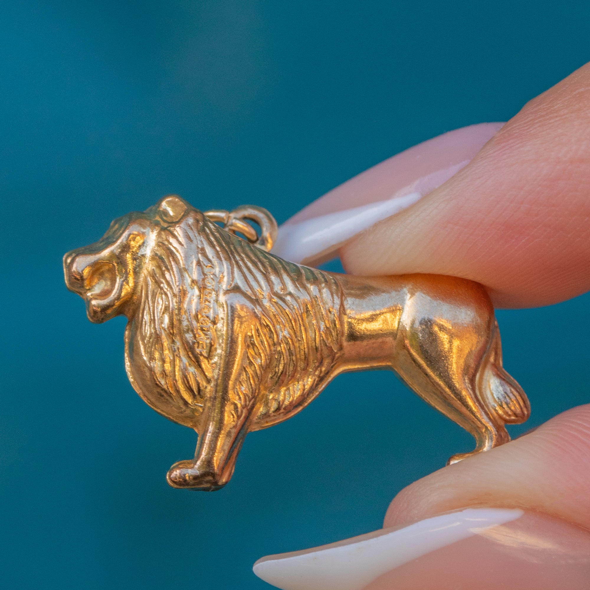 This fabulous mid-century lion pendant is crafted in 9ct Gold with confident, sculptural detail. The flowing mane and proud stance give the piece a wonderful presence, making it a striking talisman or a chic nod to the Leo zodiac.