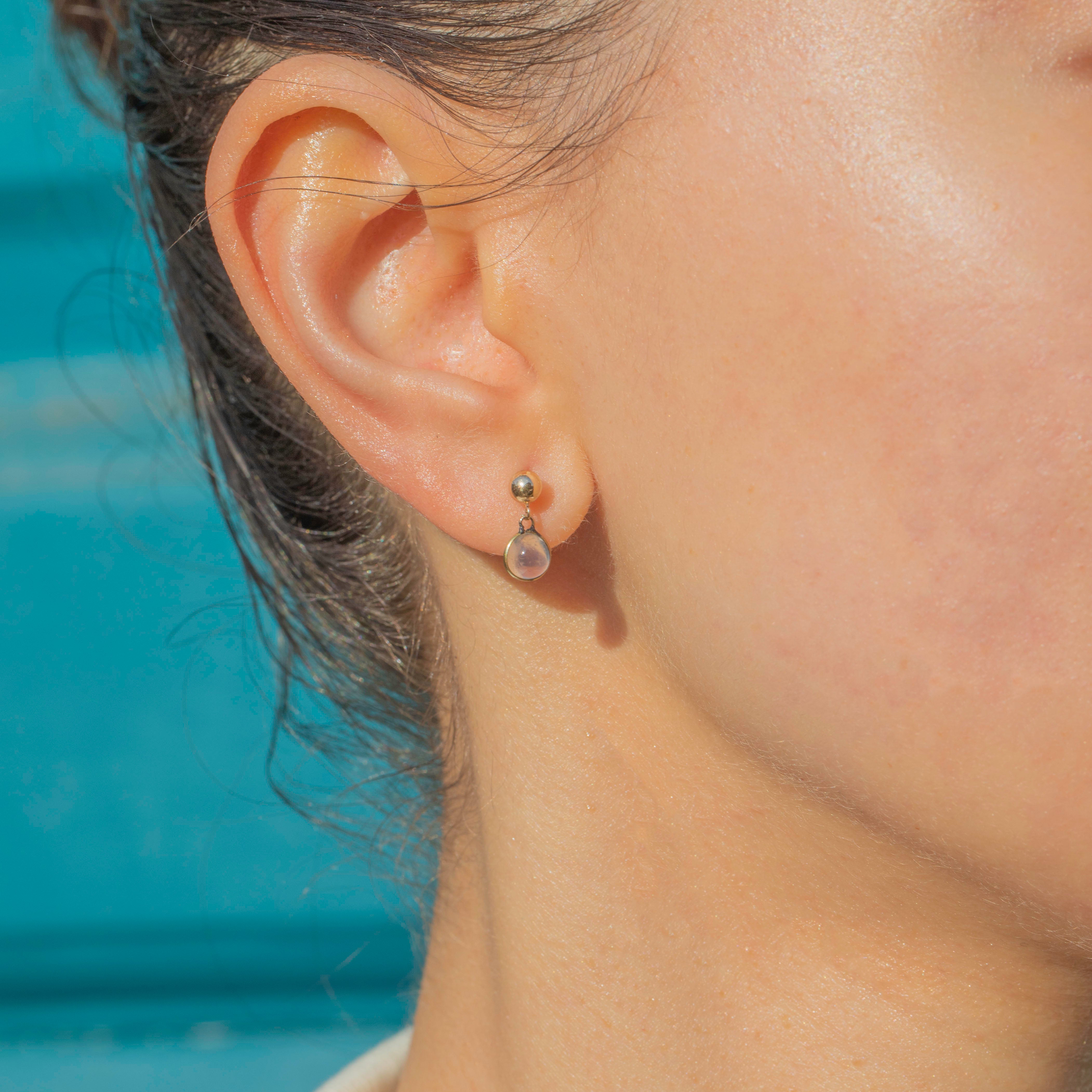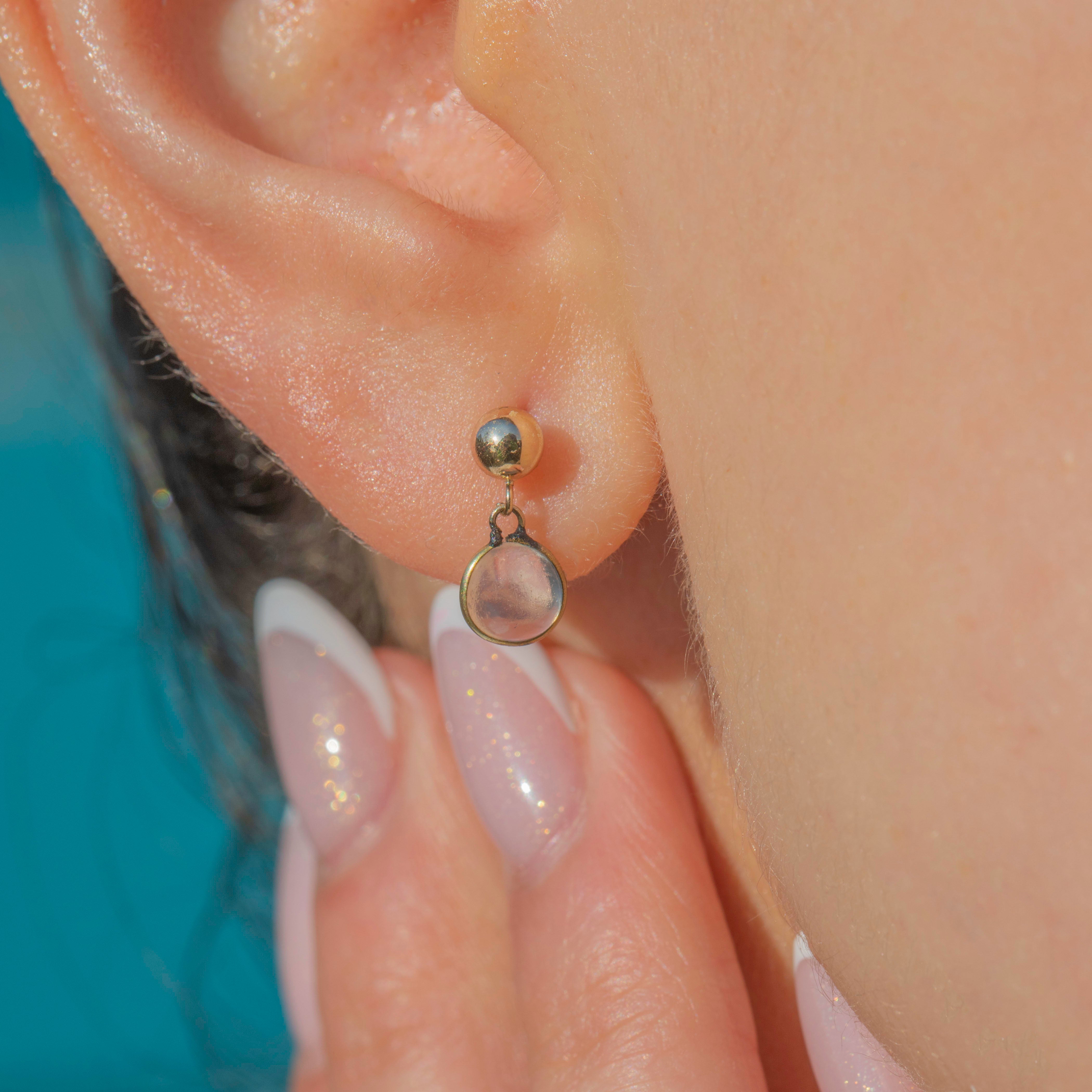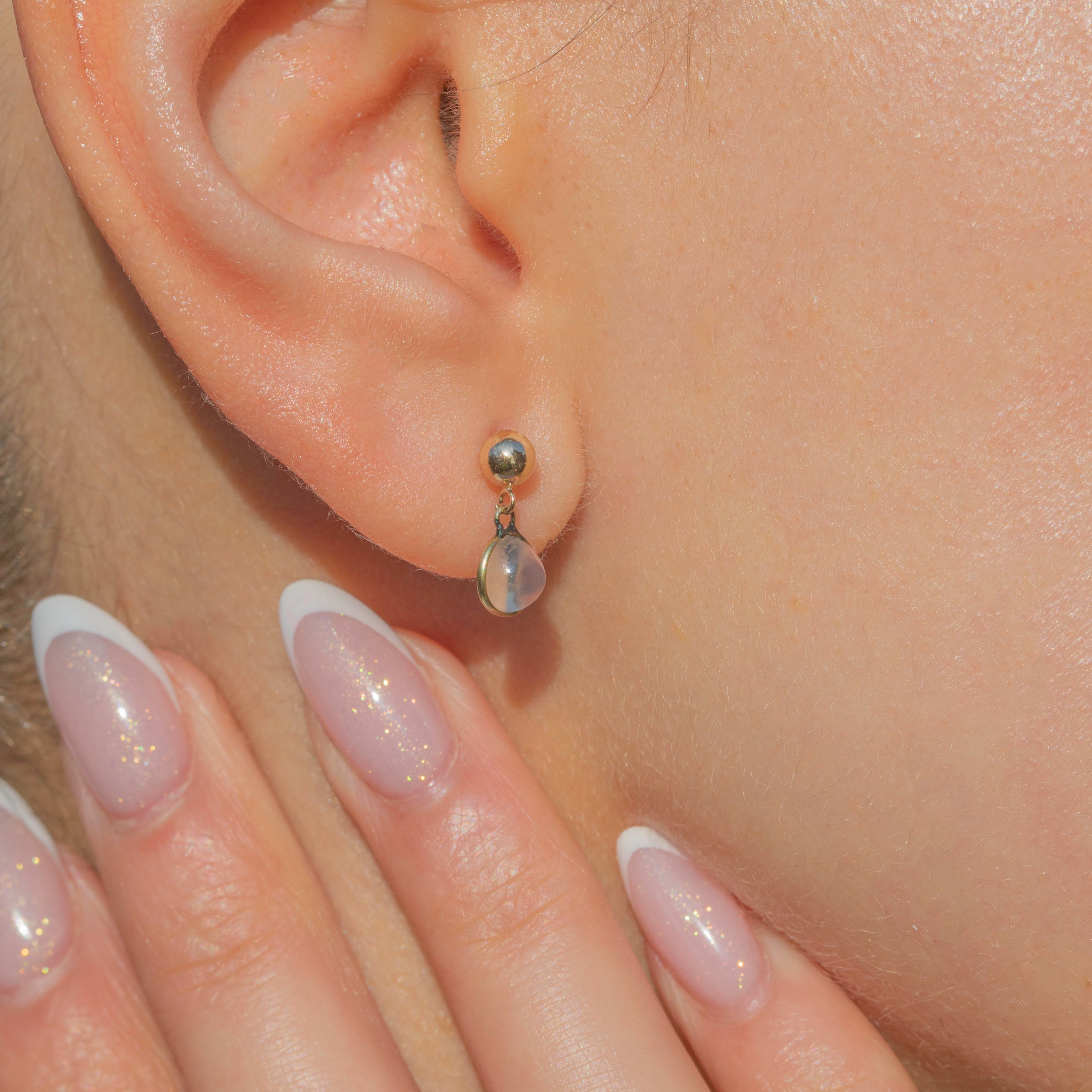 These 9ct Gold Moonstone drop stud earrings are a delightful pair! Perfectly lightweight, these Edwardian Moonstone studs are ideal for everyday wear and will effortlessly add a touch of antique allure to your lobes.