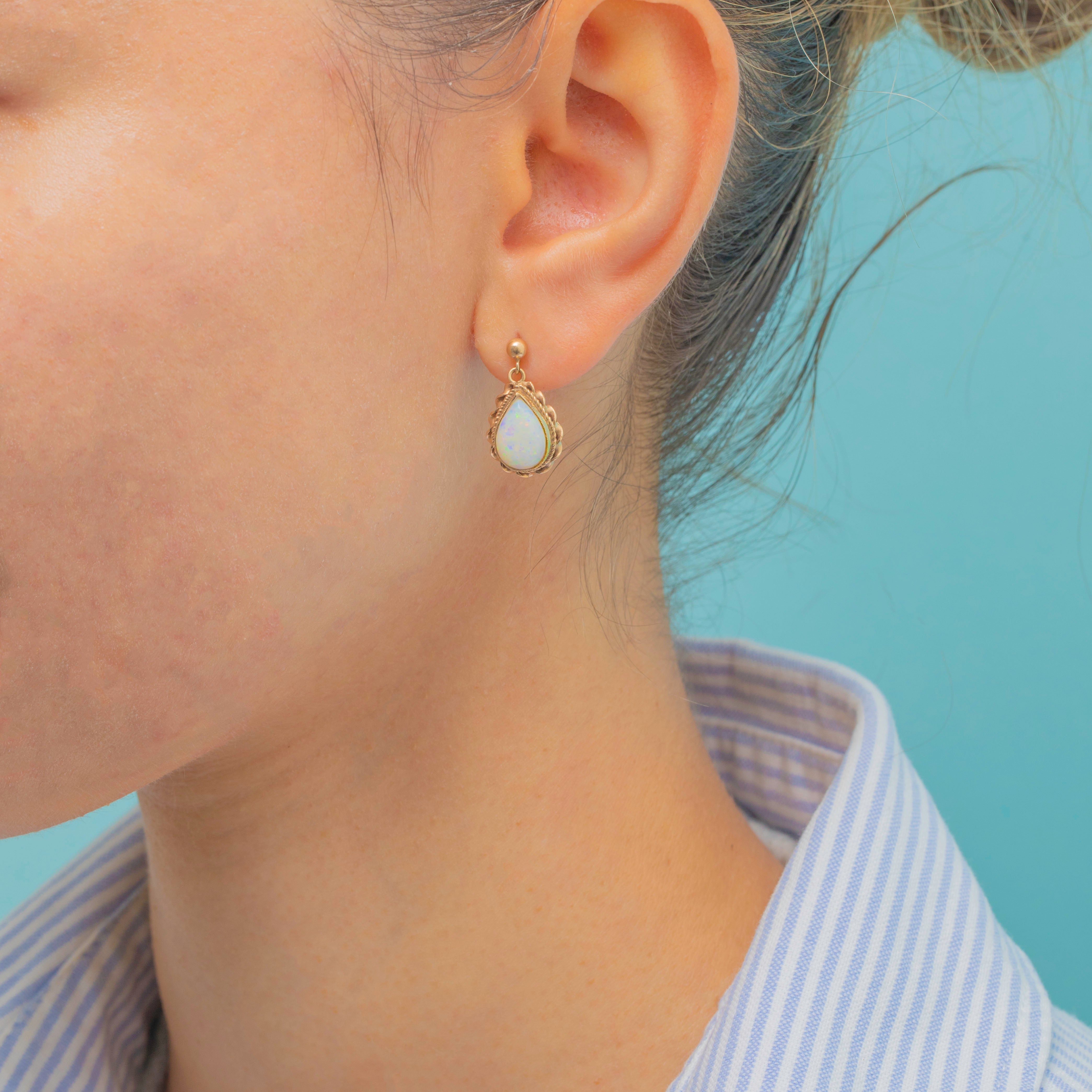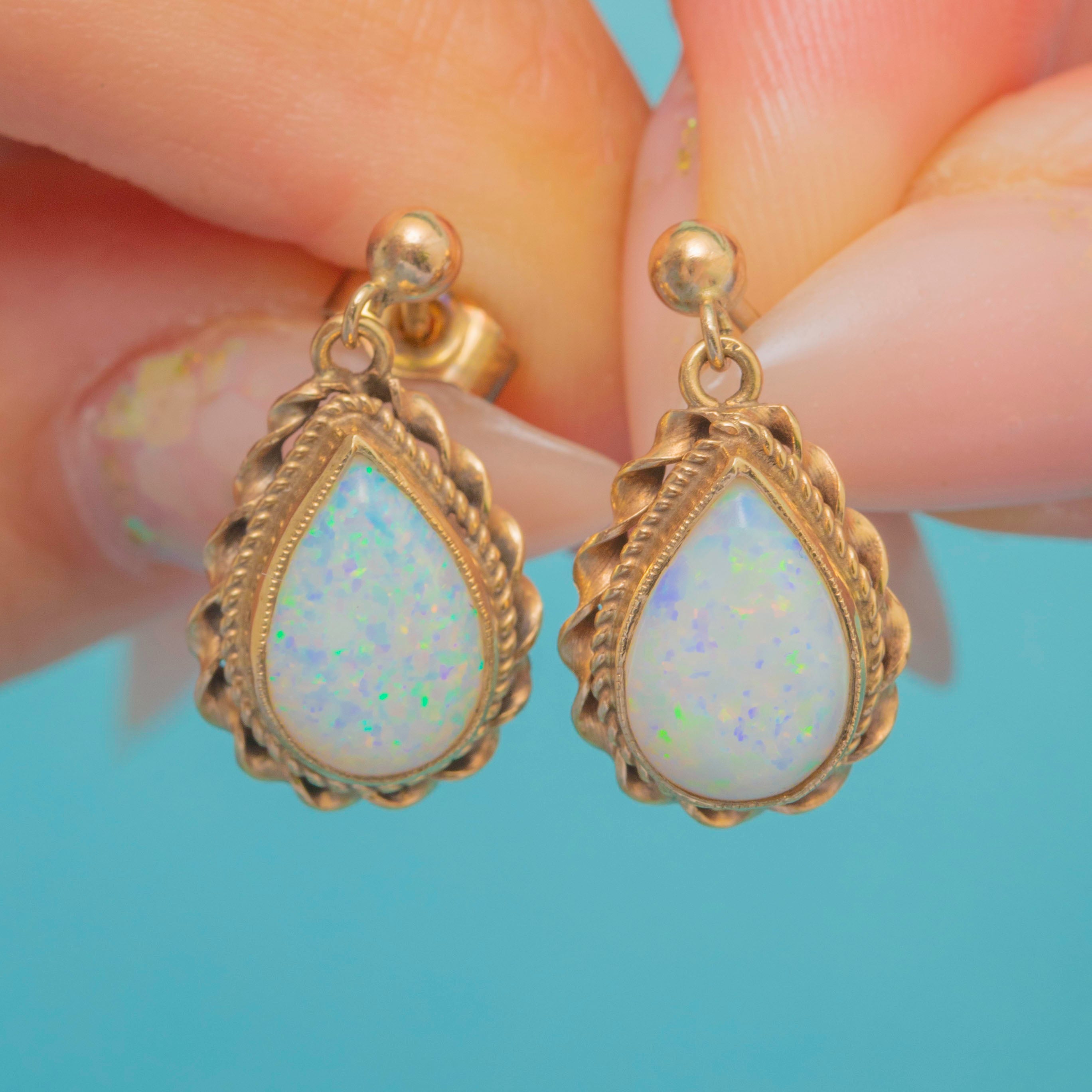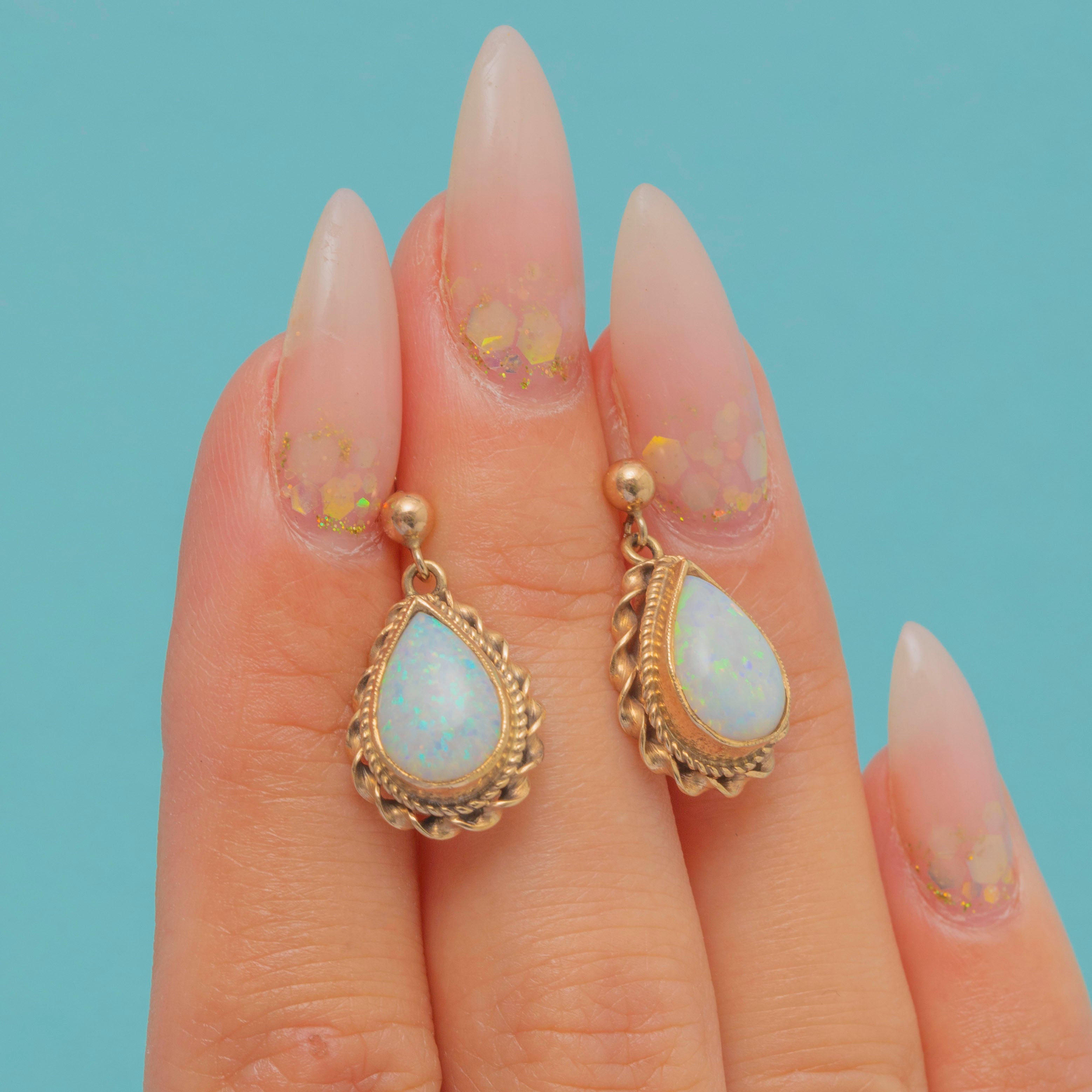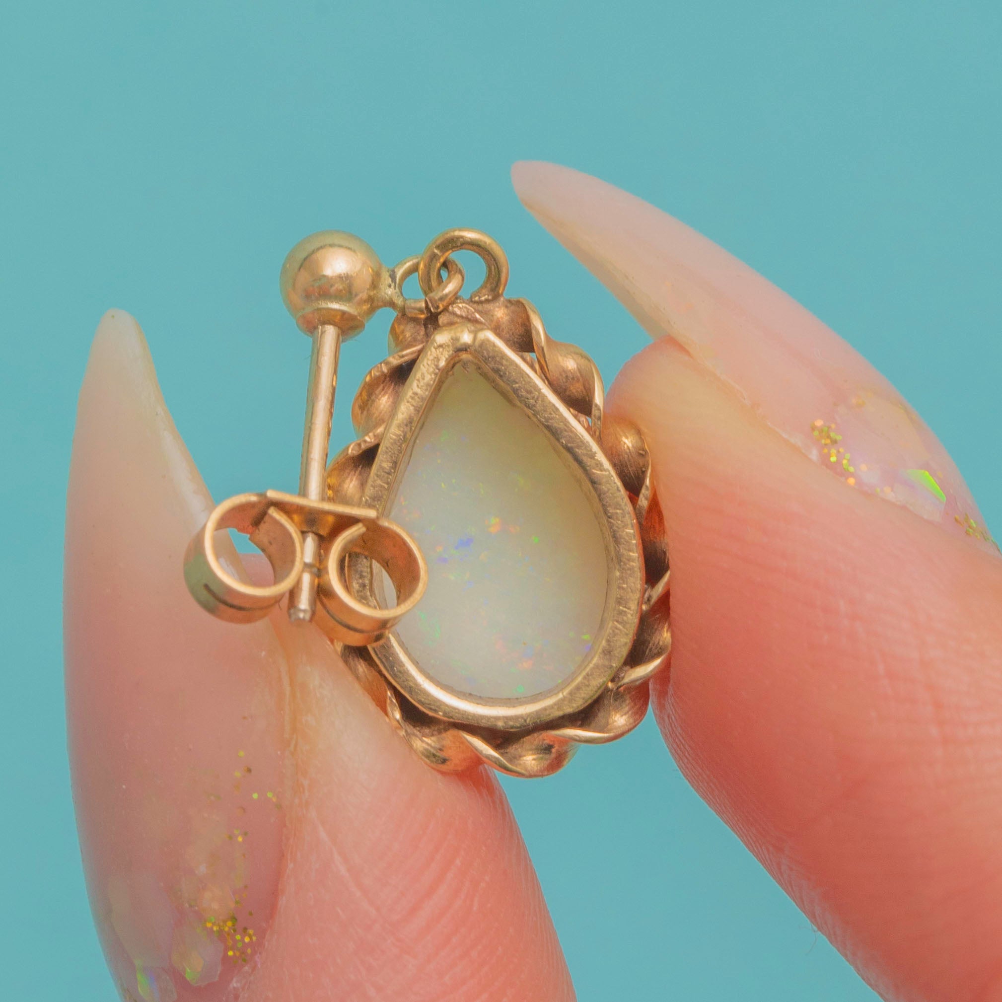 EXCELLENT: The earrings are in superb condition. The Opals are smooth and securely set, showing attractive play-of-colour. The Gold mounts and fittings are strong, polished, and well-maintained.