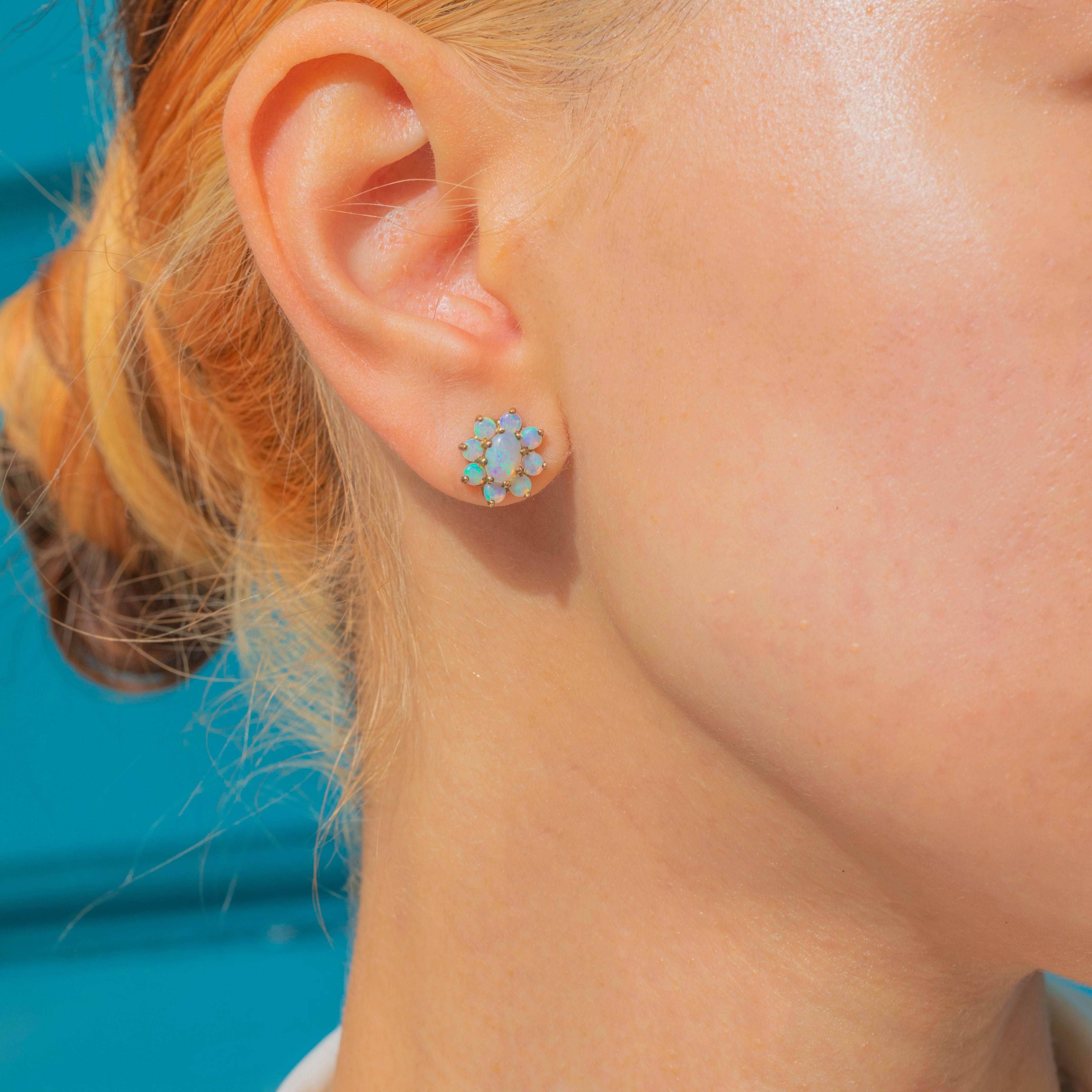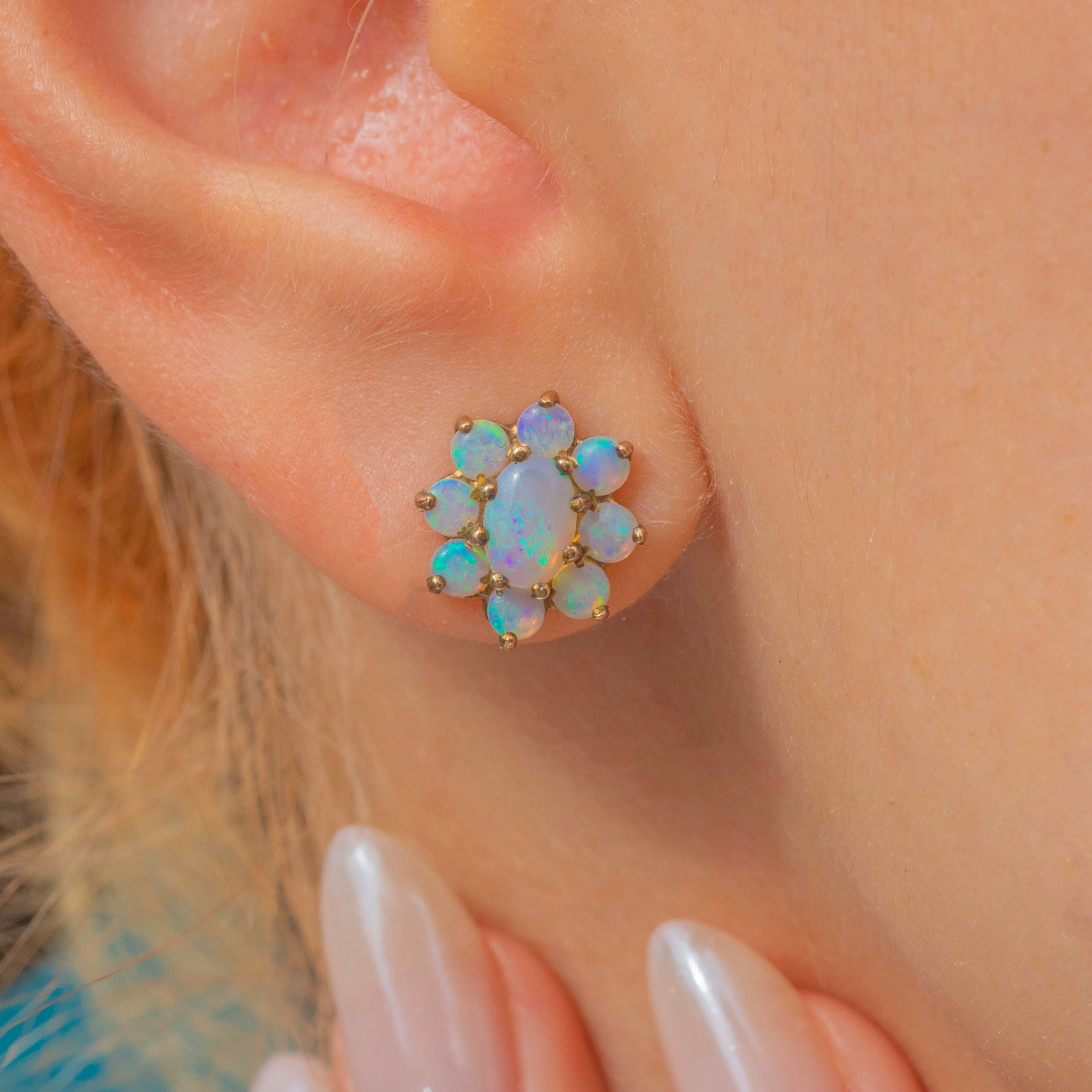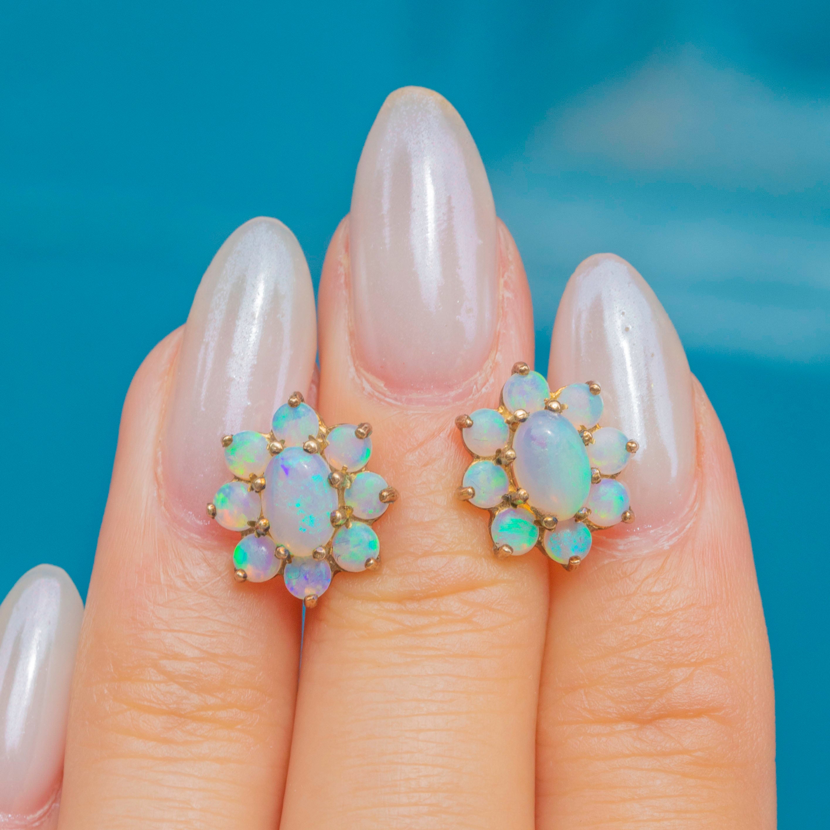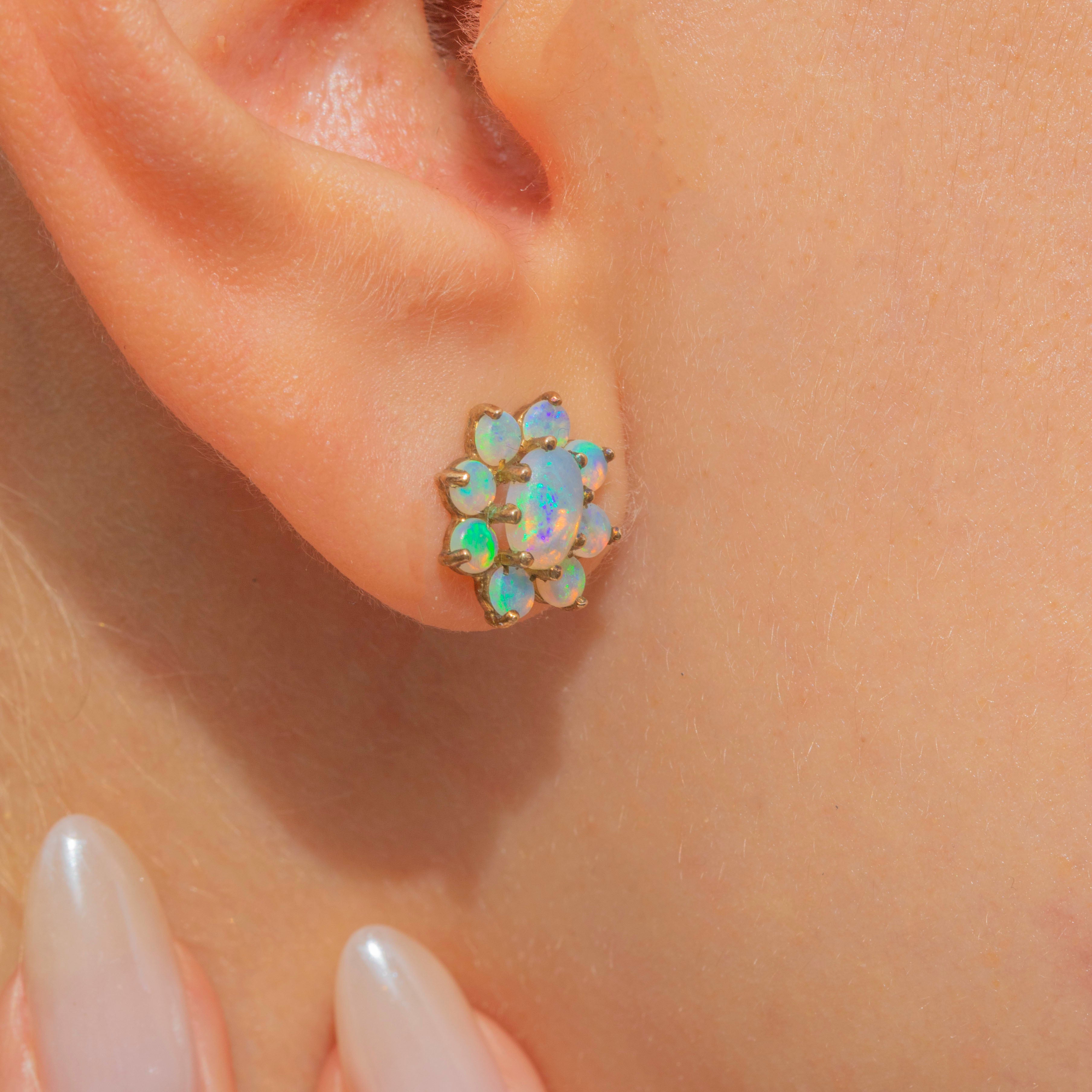 The Opals are set within buttery 9ct Gold and arranged into a dainty floral cluster design, providing an adorable, whimsical allure.