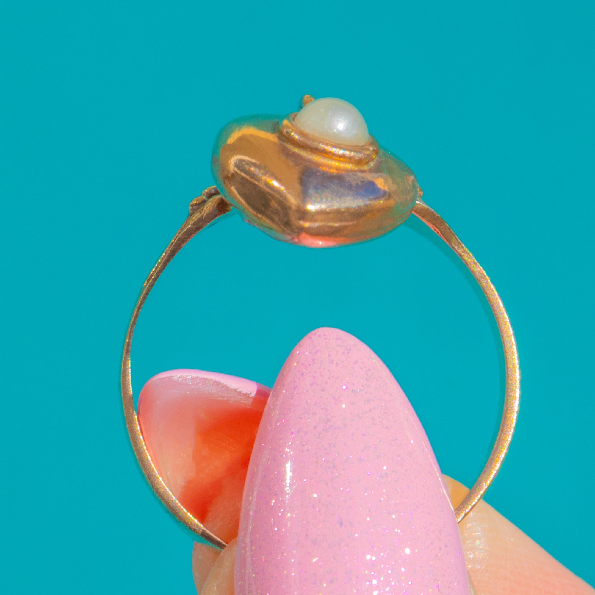 Beautifully tactile and full of sentiment, the warm 9ct Gold glows with a gentle patina and the lustrous Pearl sits securely in its neat bezel. Elegant worn solo or stacked, it’s a sweet whisper of love you can wear every day.