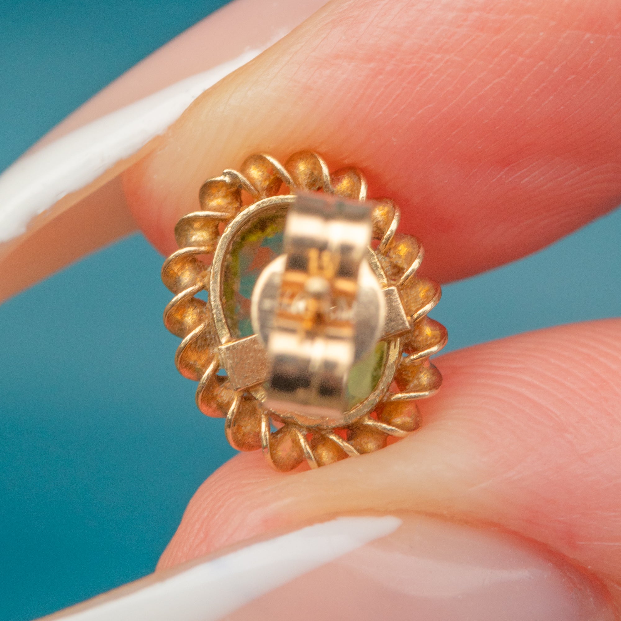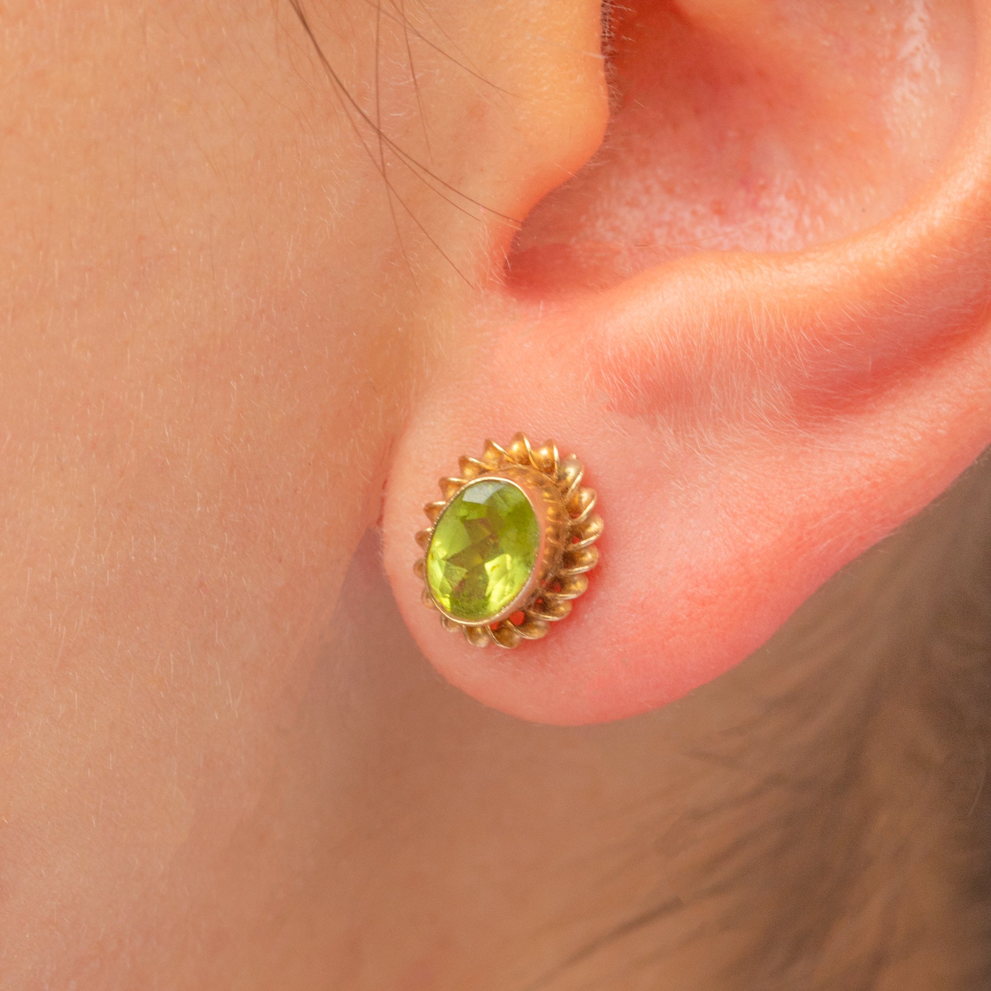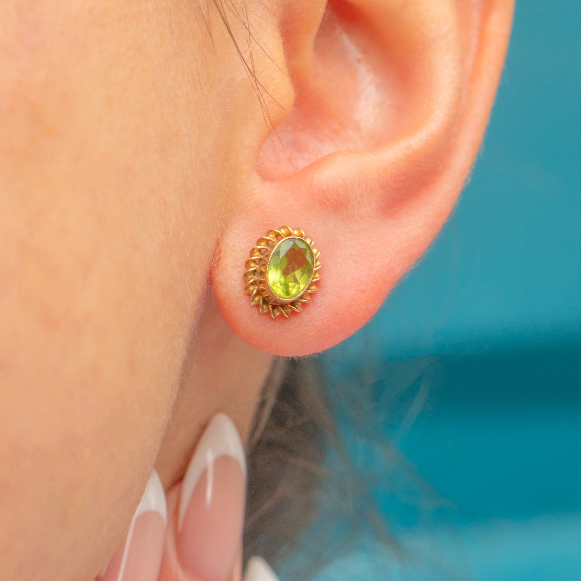 Classic Mid-Century Vintage Peridot studs crafted from warm 9ct Gold.