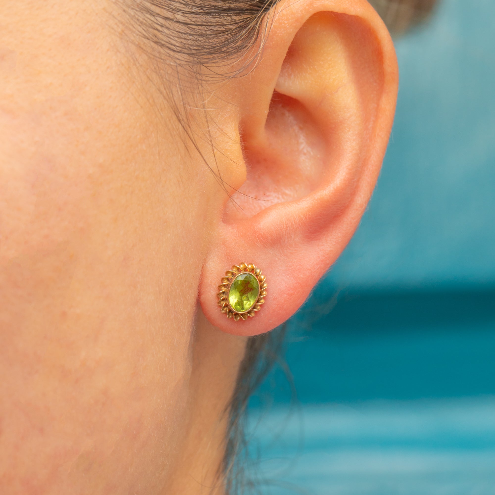 Each oval Peridot is framed by a twisted-rope border that adds texture and sparkle, making these an effortless everyday pop of fresh green.