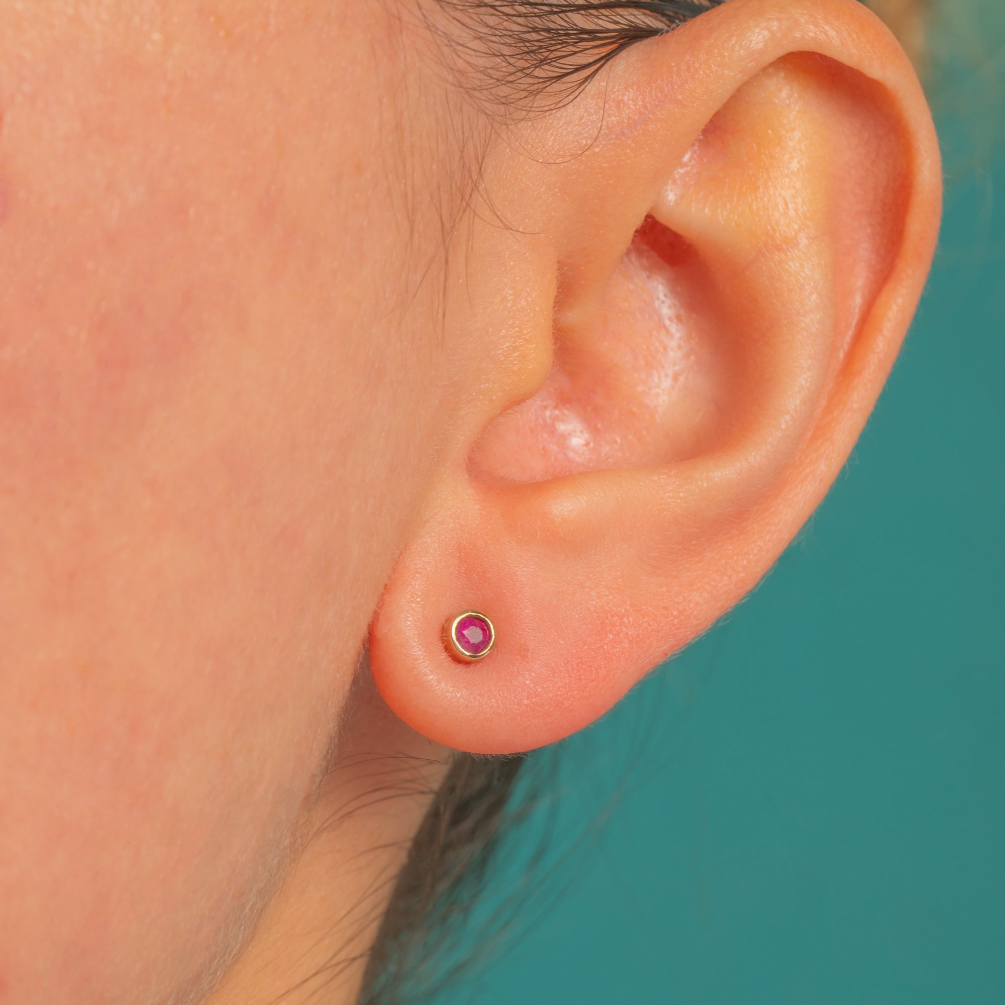 Petite and beautifully refined, these Victorian 9ct Gold Ruby studs deliver a vivid kiss of colour in a smooth, minimalist bezel. Each round Ruby glows a lively pink-red, its facets catching the light against the warm Gold rim for an effortlessly elegant look.