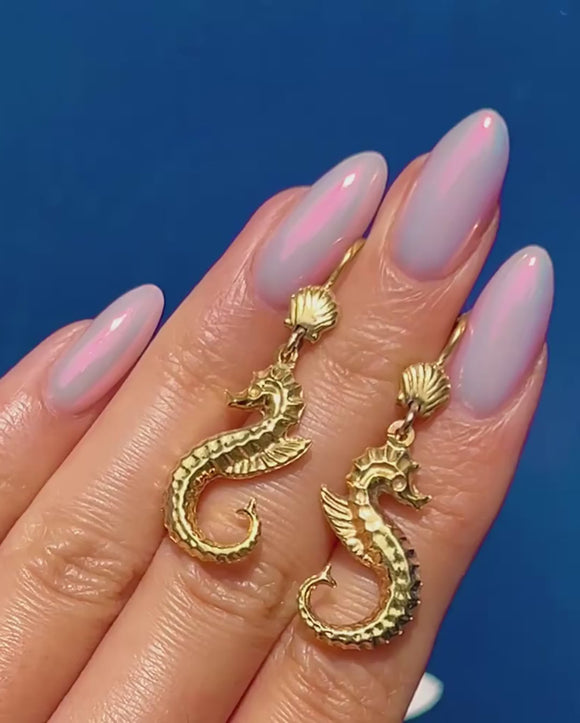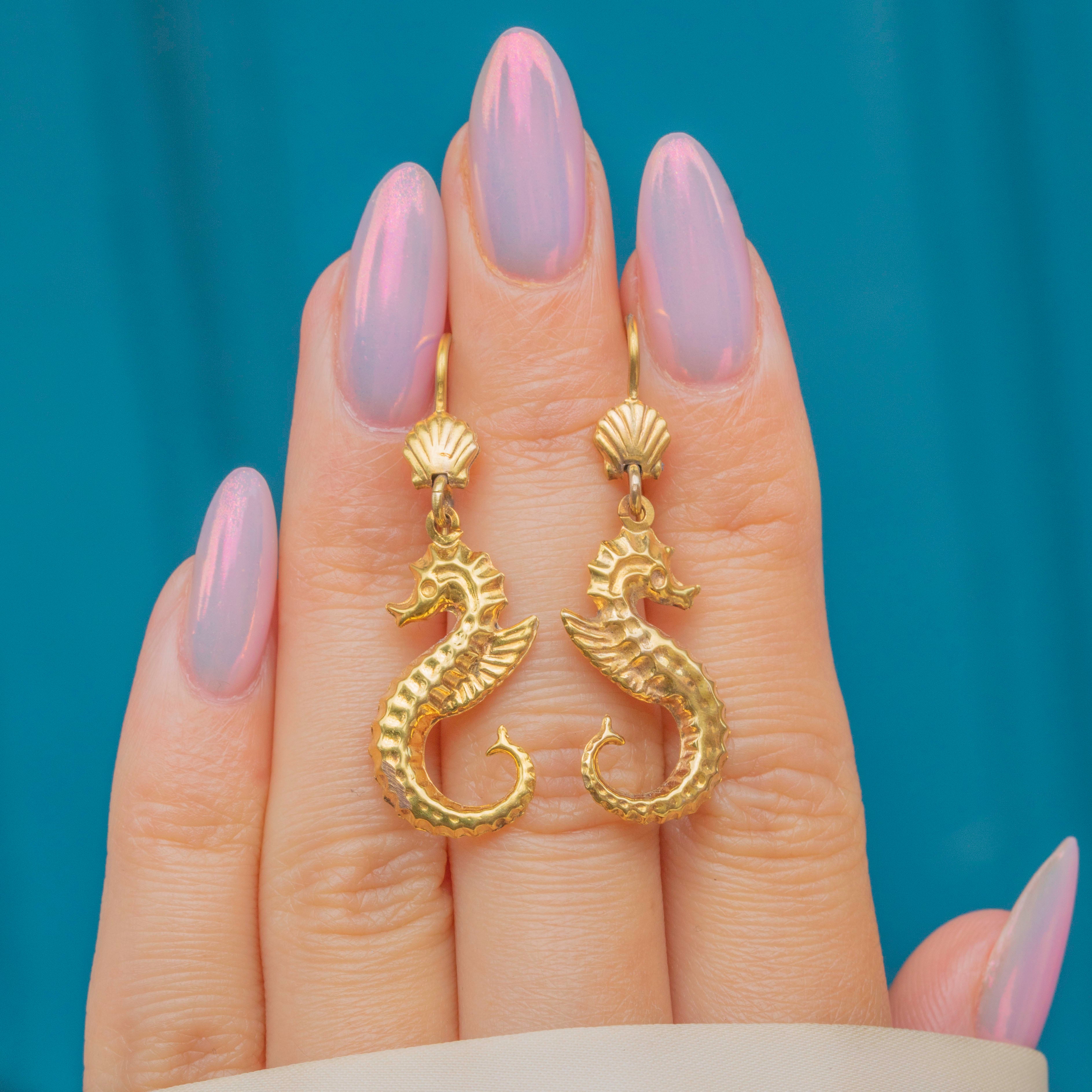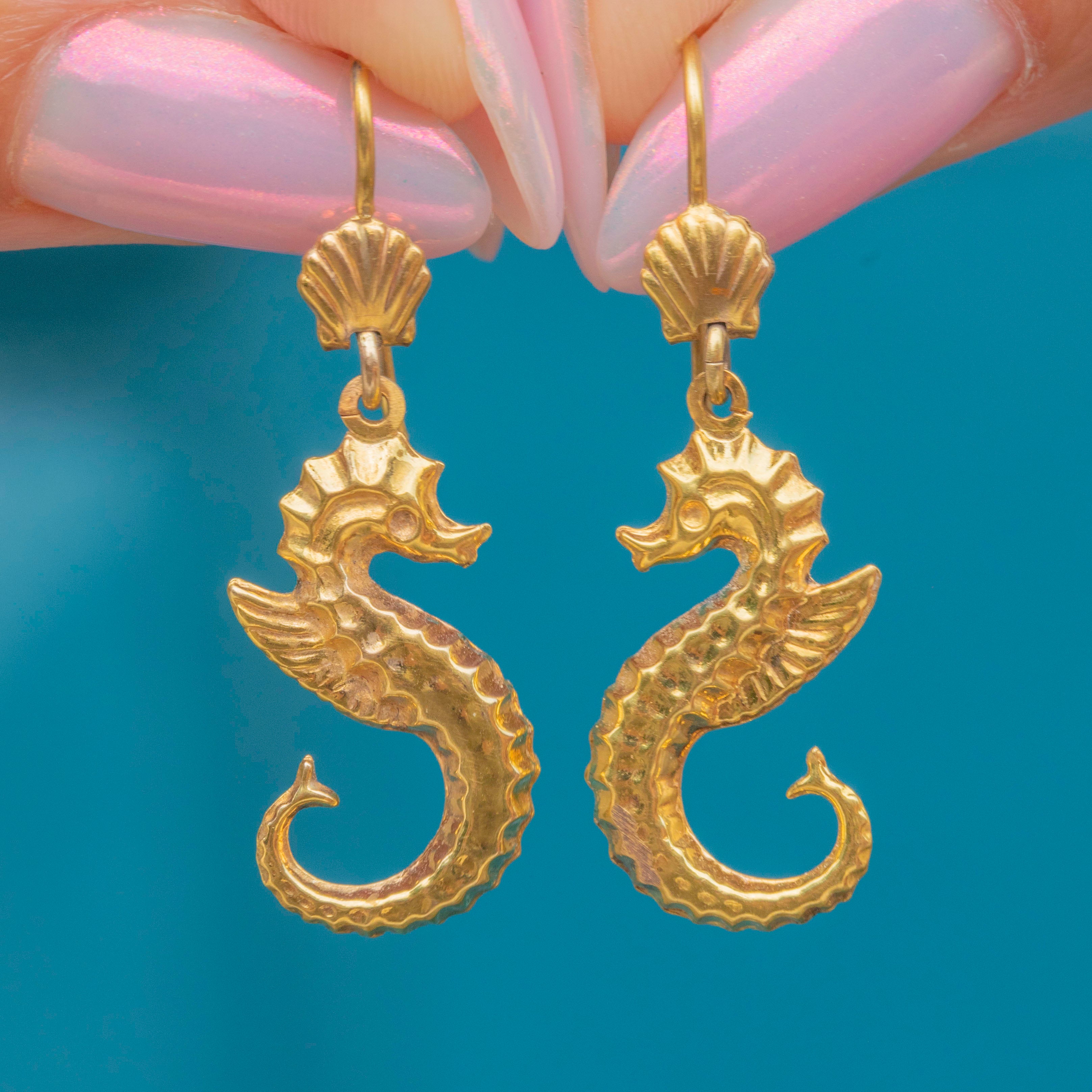 These charming vintage 9ct Gold seahorse earrings will complement your attire swimmingly!