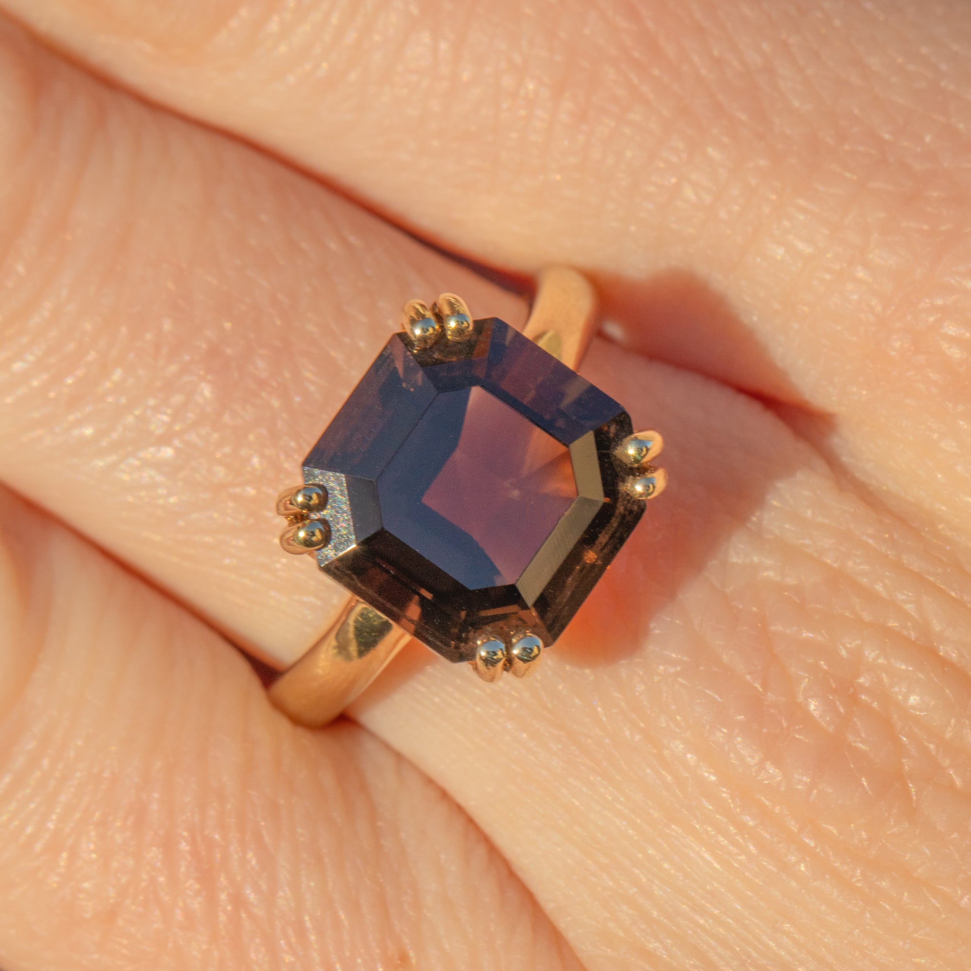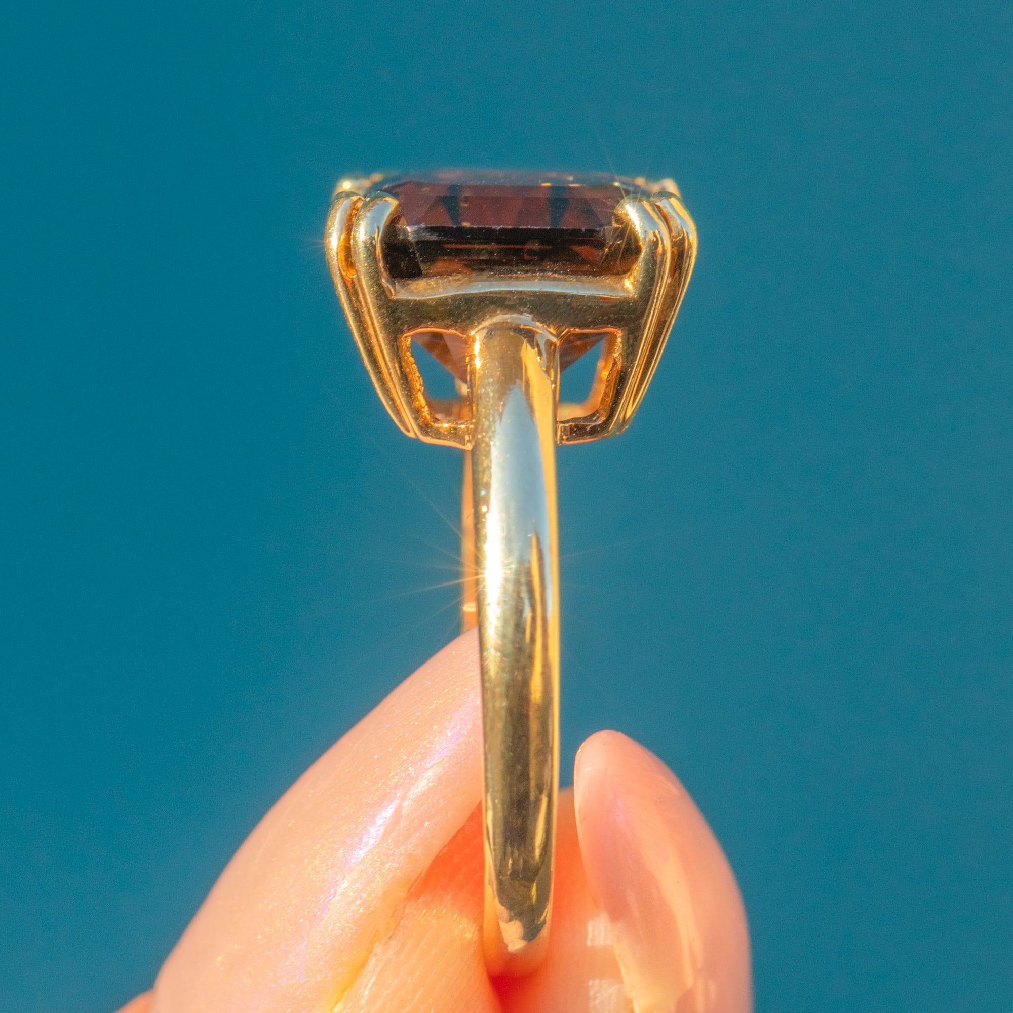 The Smokey Quartz  provides wonderful finger coverage and will bestow a beautiful accent of dusky colour to any outfit. Crafted from solid 9ct Gold, the Quartz is flanked by striking tapered shoulders giving this ring an elegant finish.