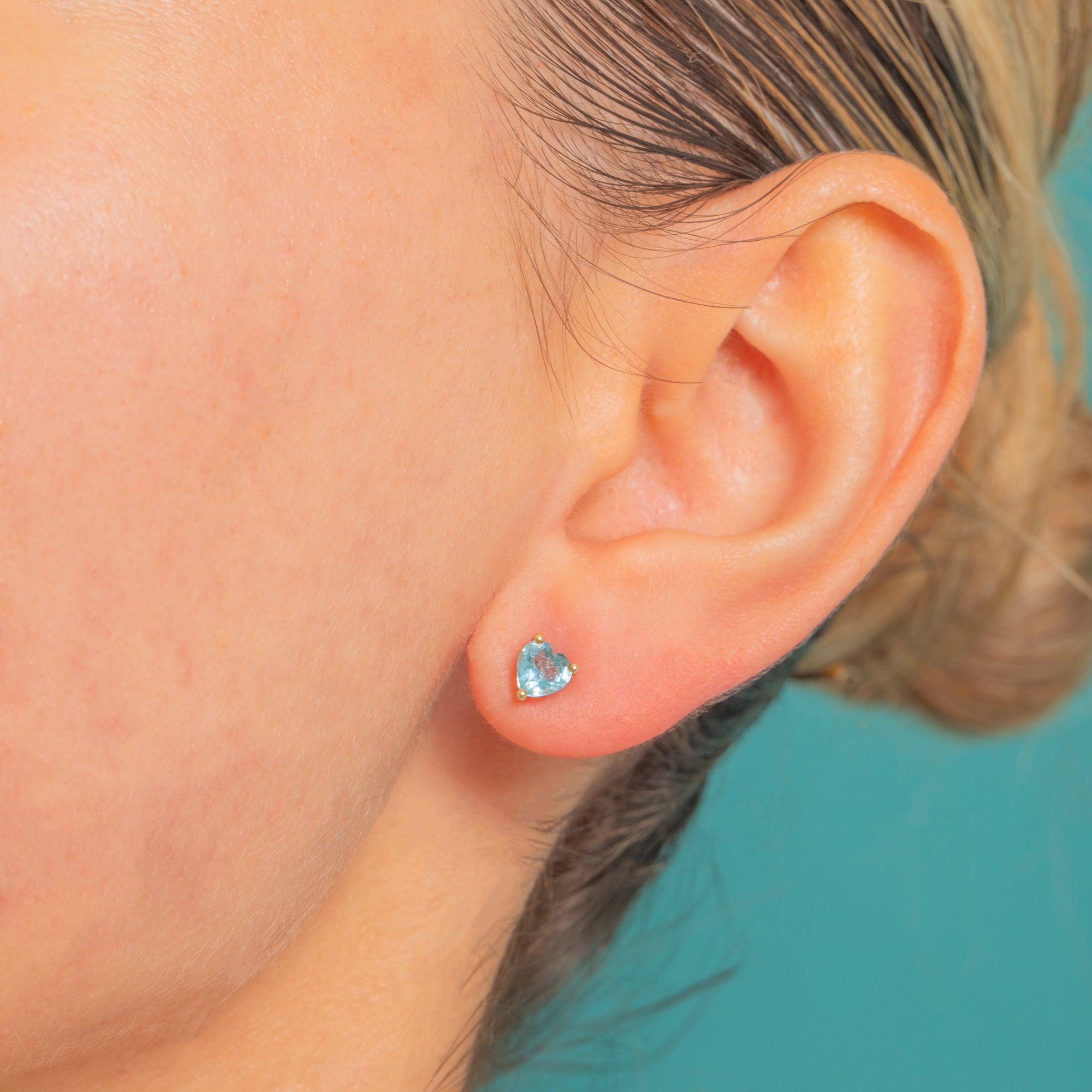 Sweet, simple and sparkling, these 9ct Gold heart stud earrings showcase luminous sky-blue Blue Topaz in a clean three-claw setting. The heart cuts catch the light beautifully, delivering that fresh, watery glow Blue Topaz is loved for while keeping the silhouette refined and romantic.