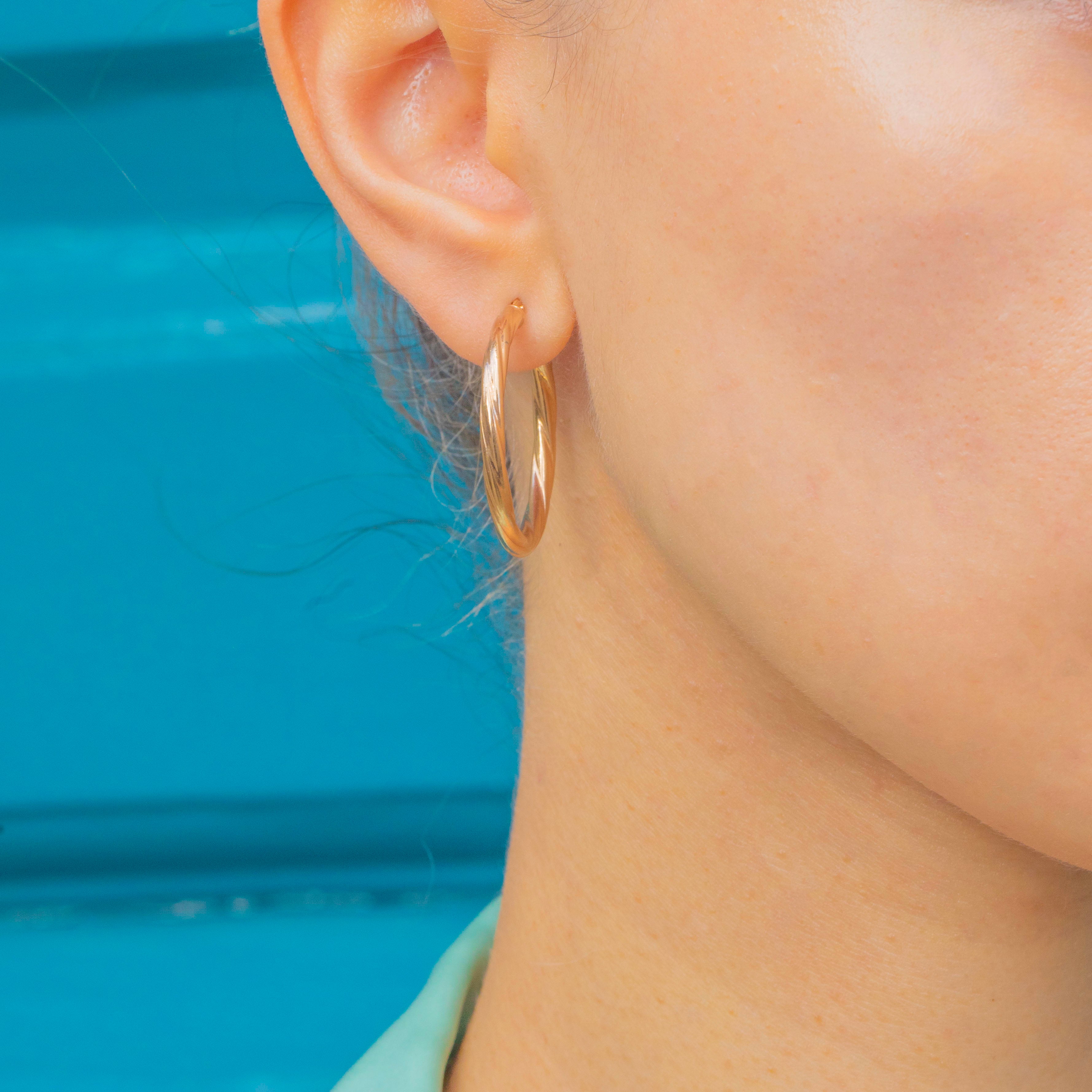 A timeless pair of Vintage hoop earrings, crafted in 9ct Gold with an elegant twisted design. Measuring 30mm across, these hoops have just the right amount of presence—sleek enough for everyday wear, yet refined for more polished looks.