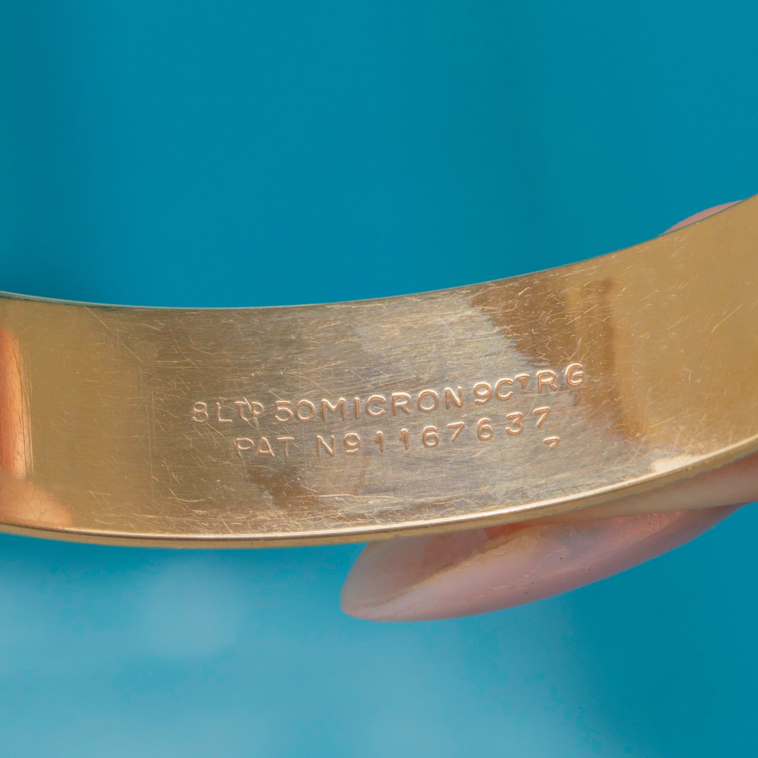 STAMPS: BLTD Maker's mark, 50 microns 9ct RG, patent number inside bangle
