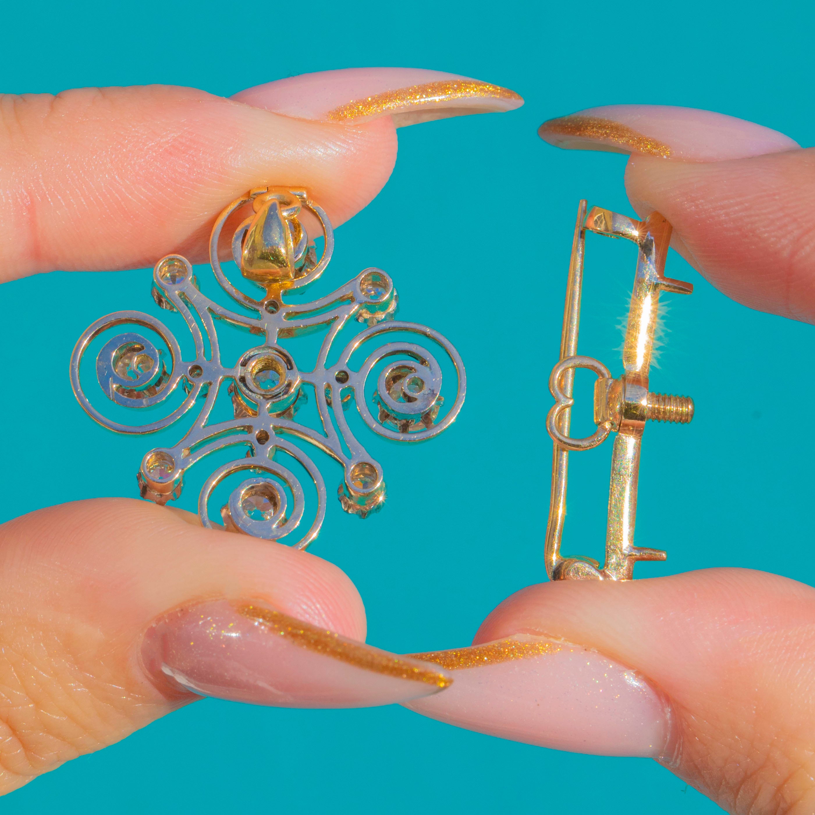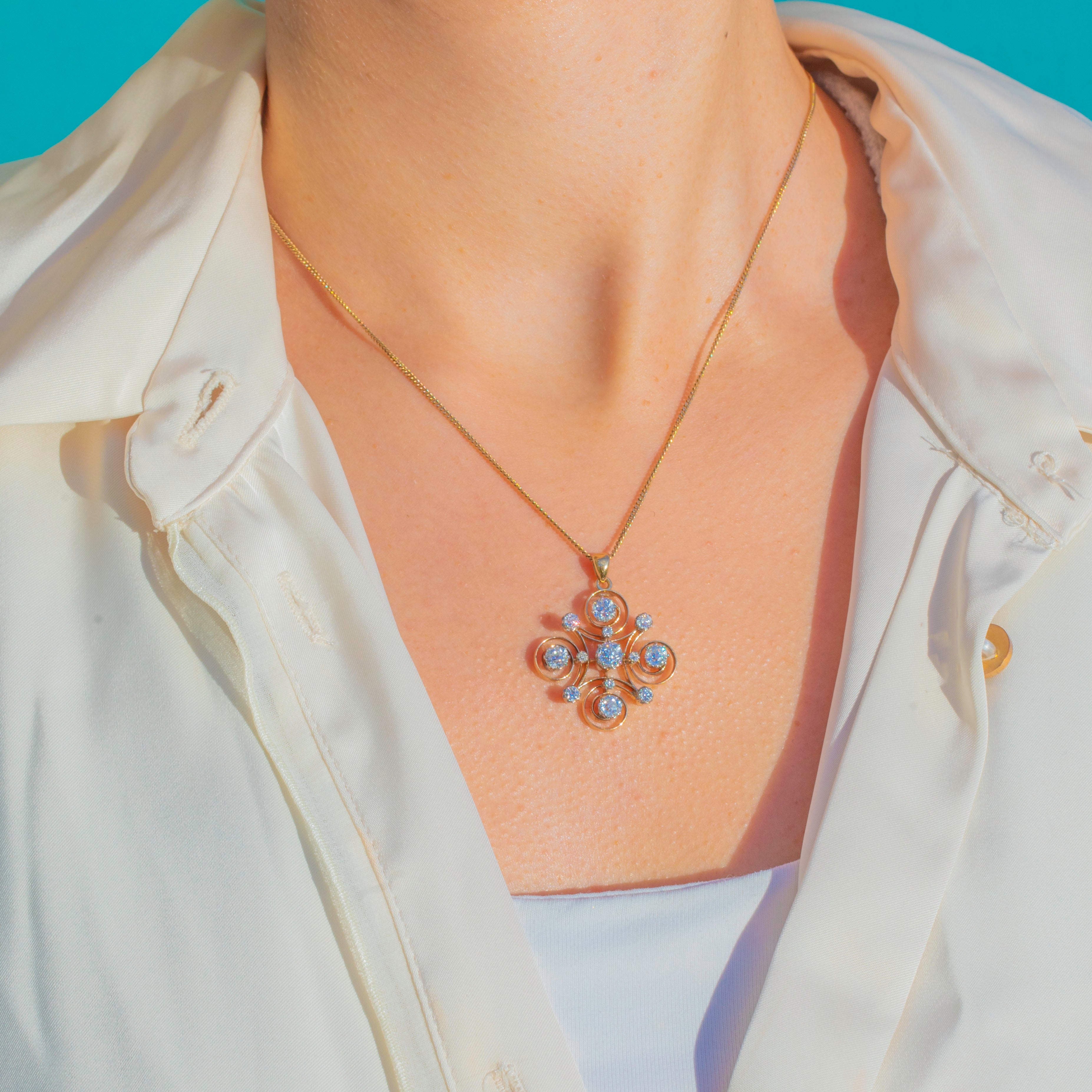 Wonderfully versatile, it can be worn as either a pendant or a brooch thanks to its removable brooch fitting. A glamorous, architectural statement jewel typical of 1890's.