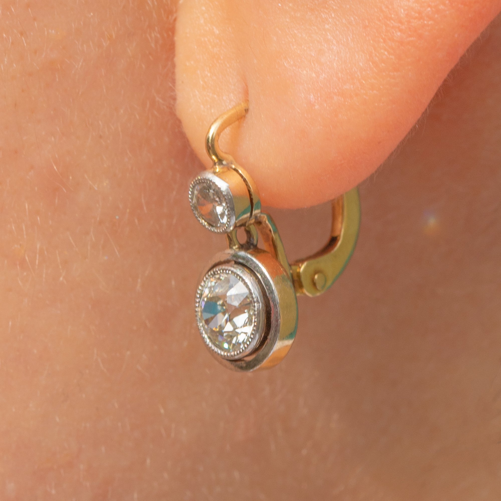 Antique 14ct Gold Old European Cut Diamond Dormeuse Earrings 1.10ct
