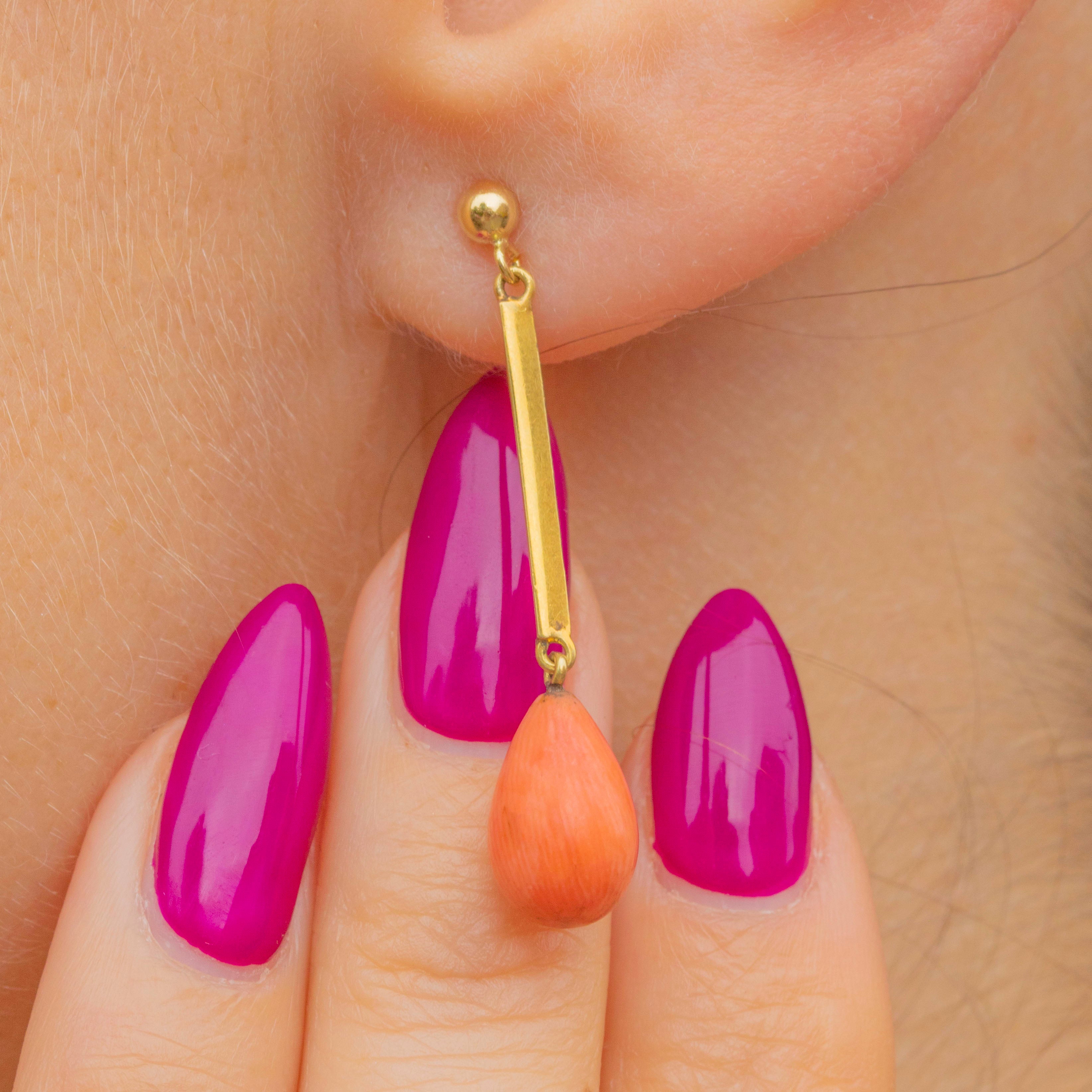 Antique 15ct Gold Coral Knife Edge Drop Earrings
