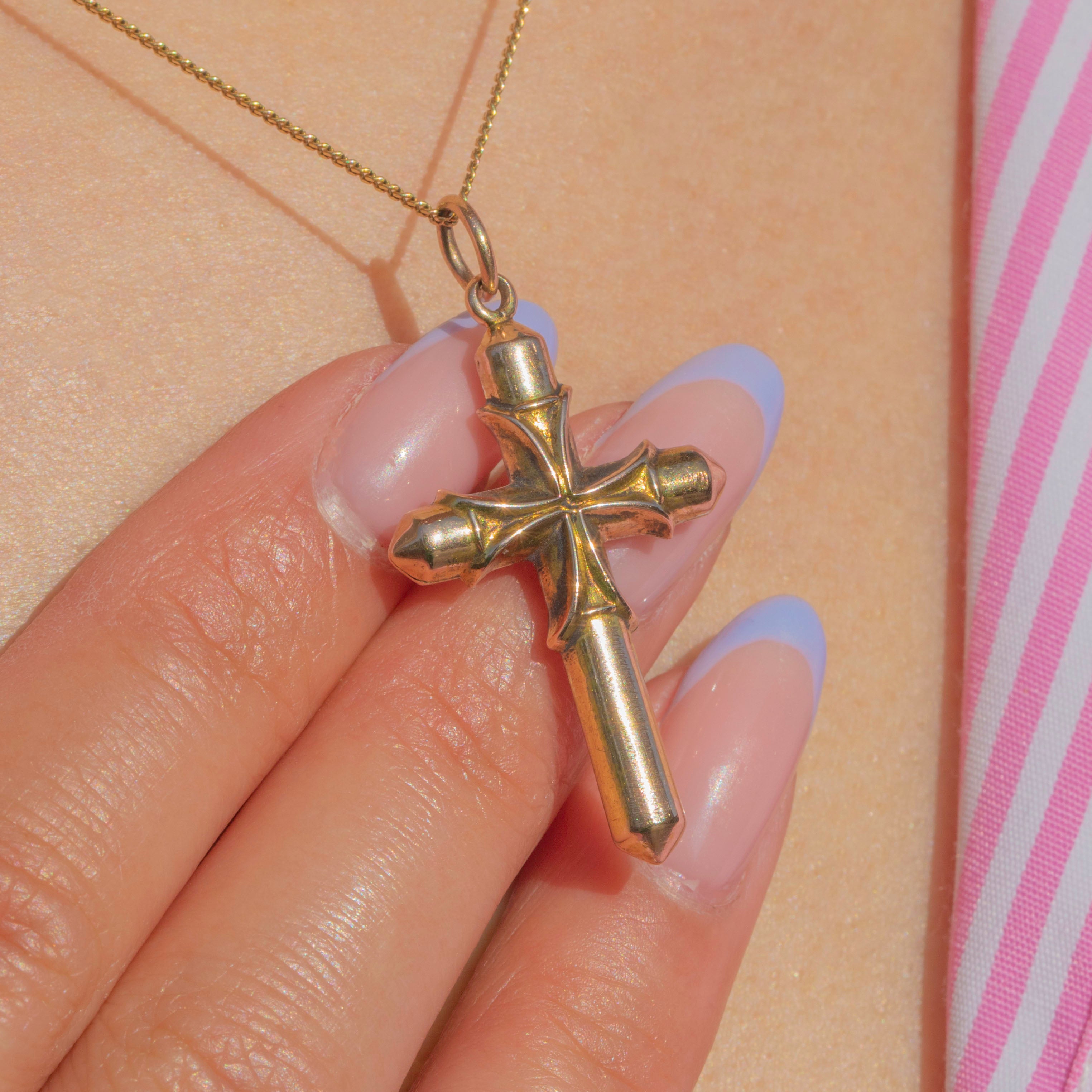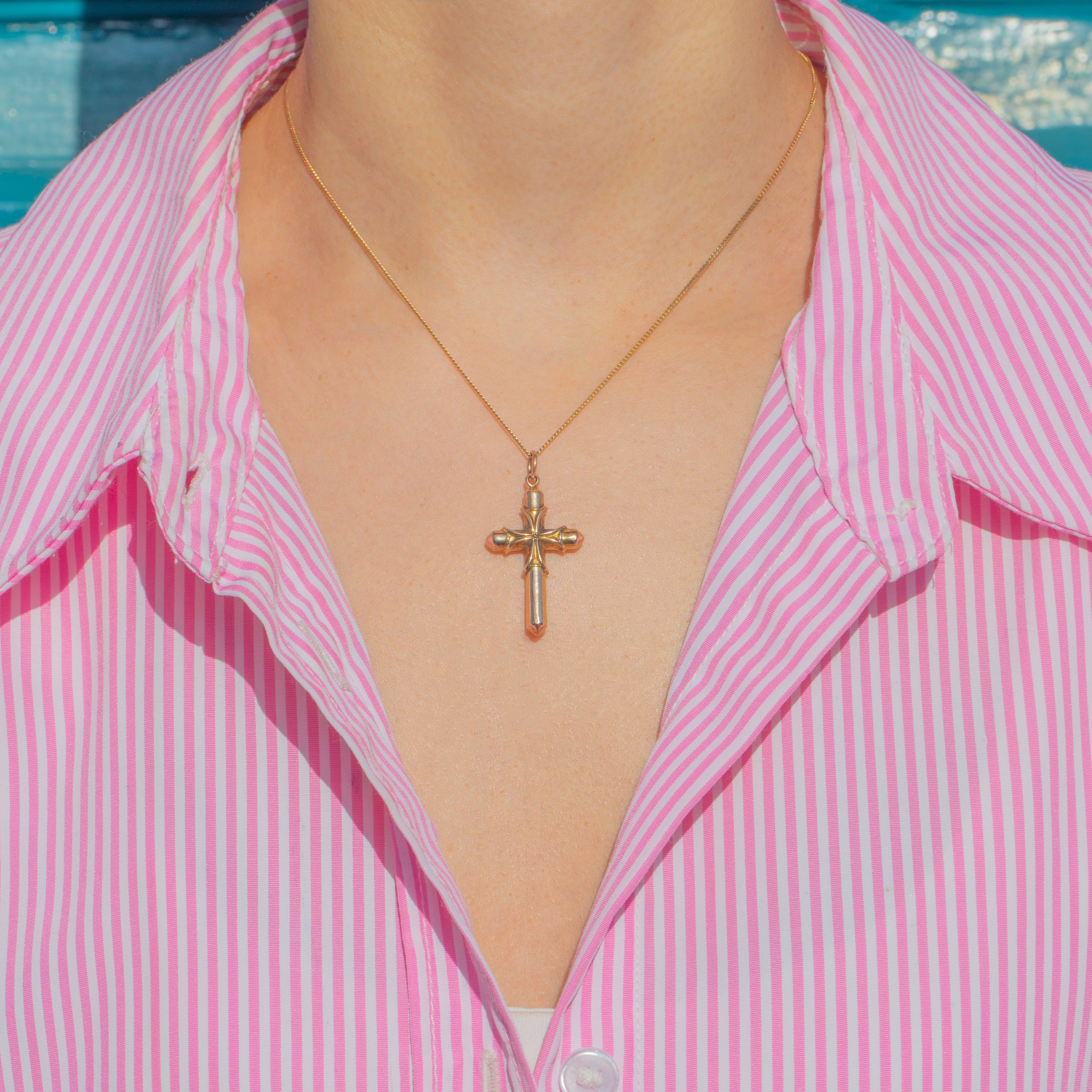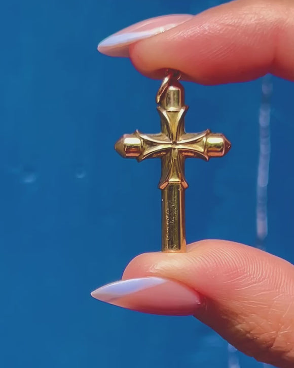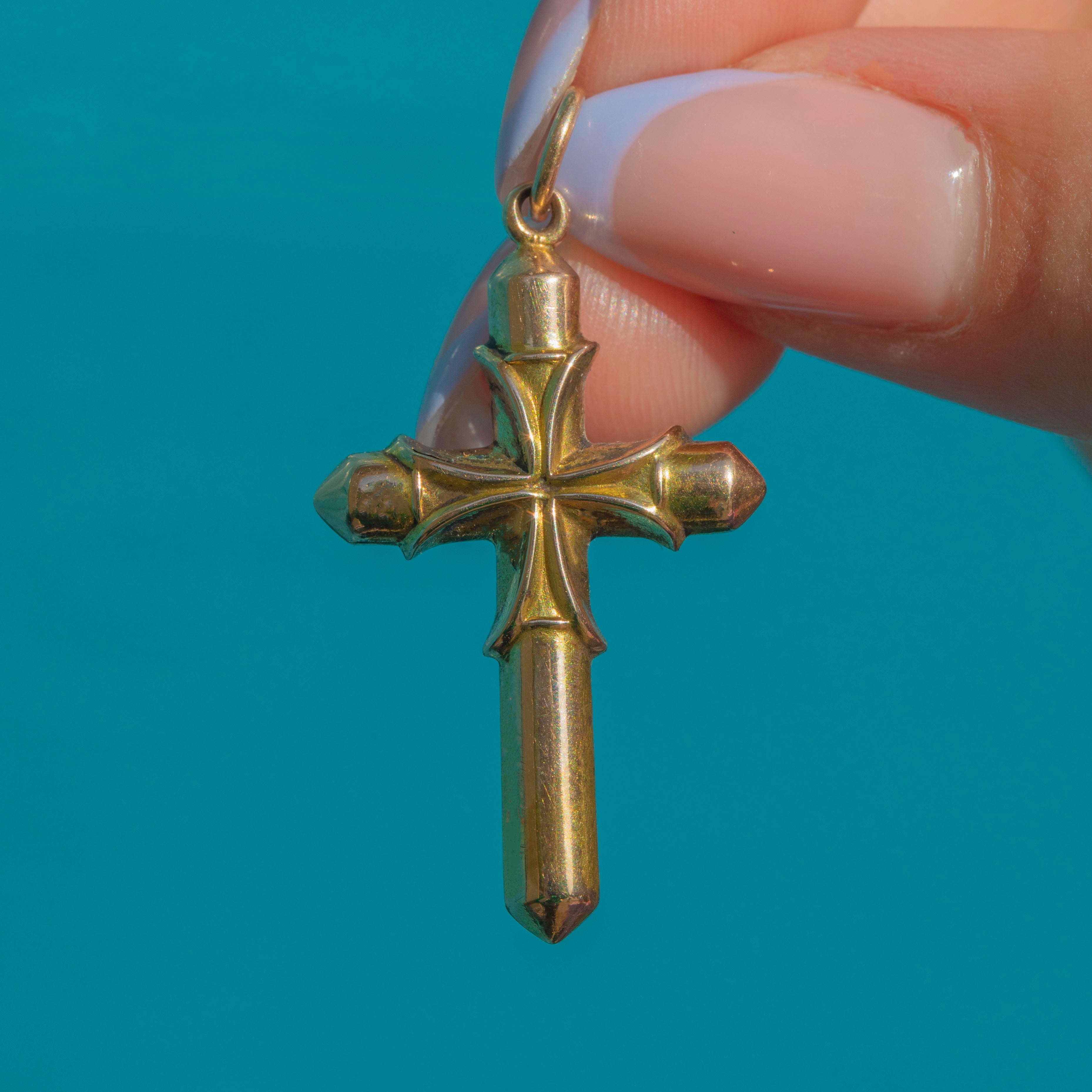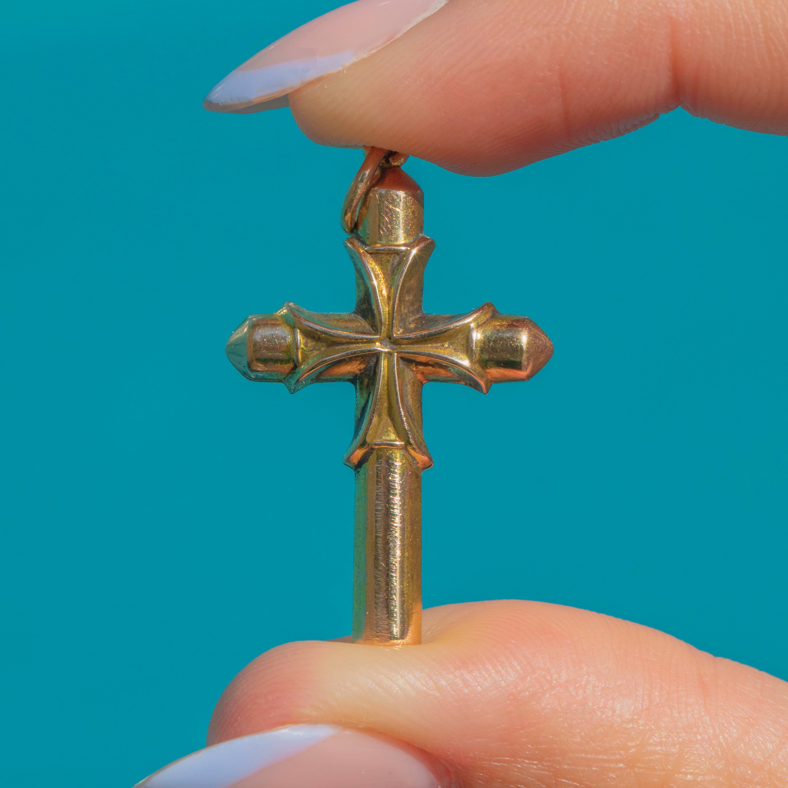 EXCELLENT: This antique 15ct Gold cross pendant is in fabulous condition. The charming details are bold with minimal wear and the Gold is radiant. This lightweight treasure is ready to become a staple piece within your collection!
