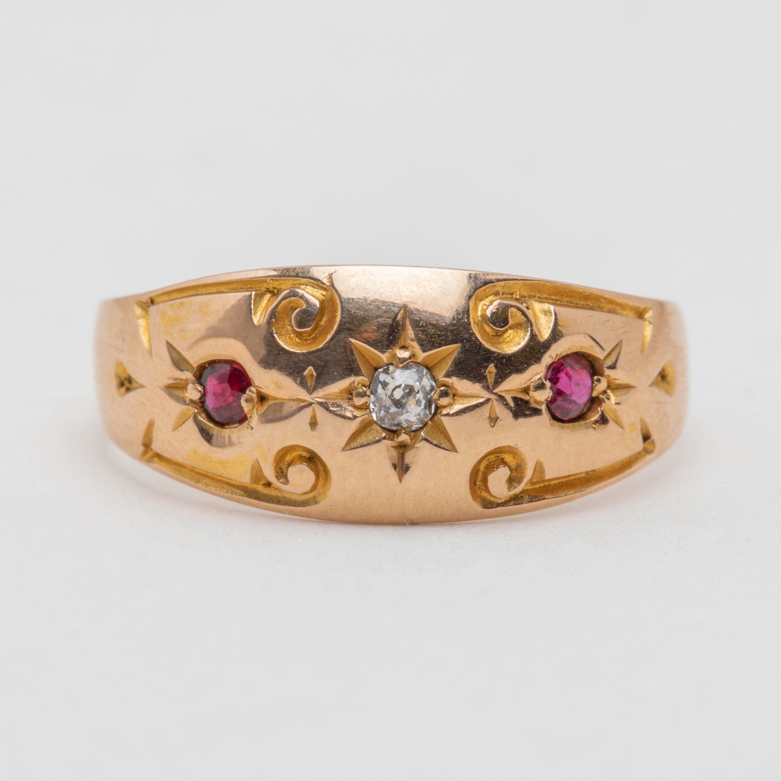 Antique 15ct Gold Garnet Diamond Gypsy Ring, c.1892