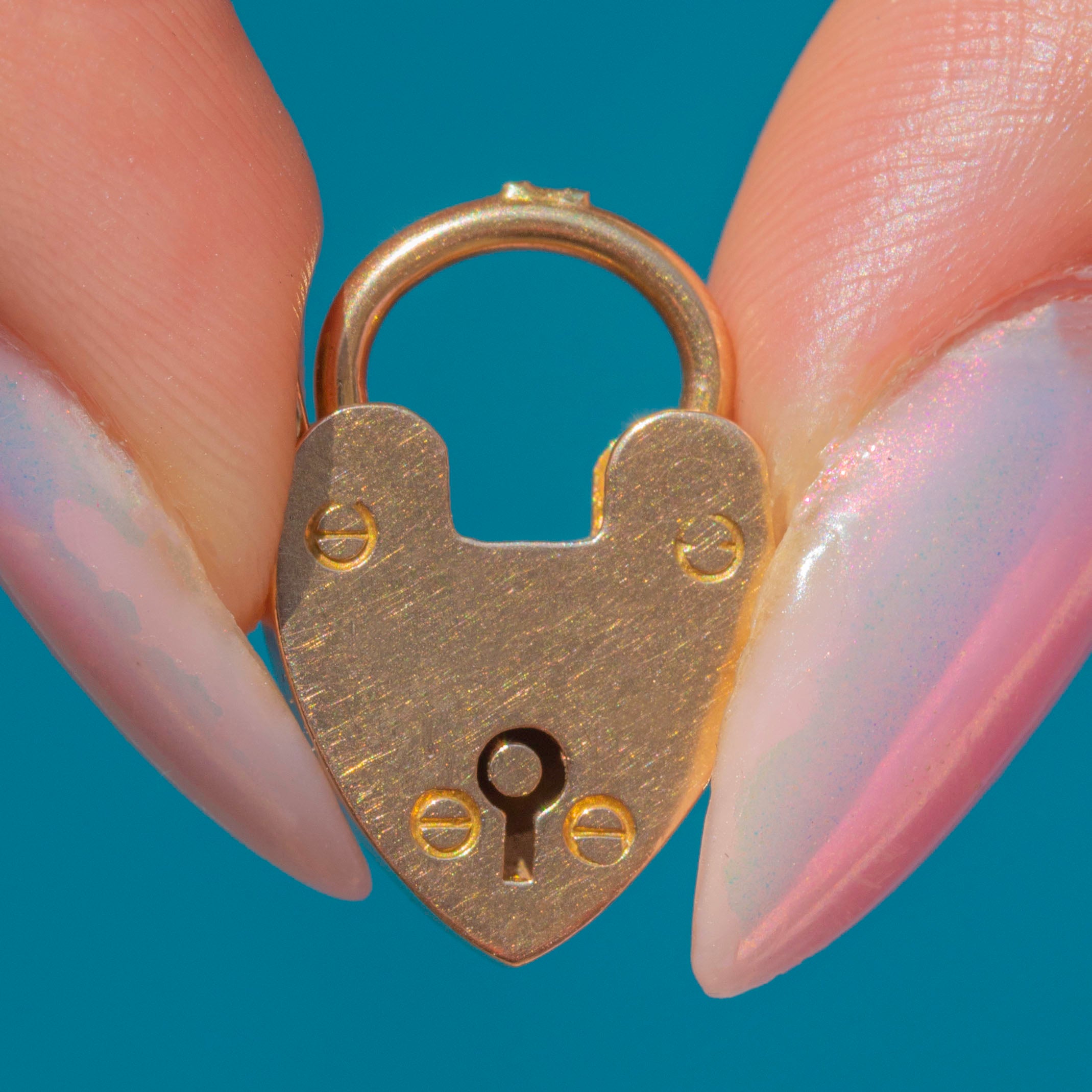 You can easily thread your favourite chain through the padlock mechanism, or attach this piece to Gold charm bracelet!