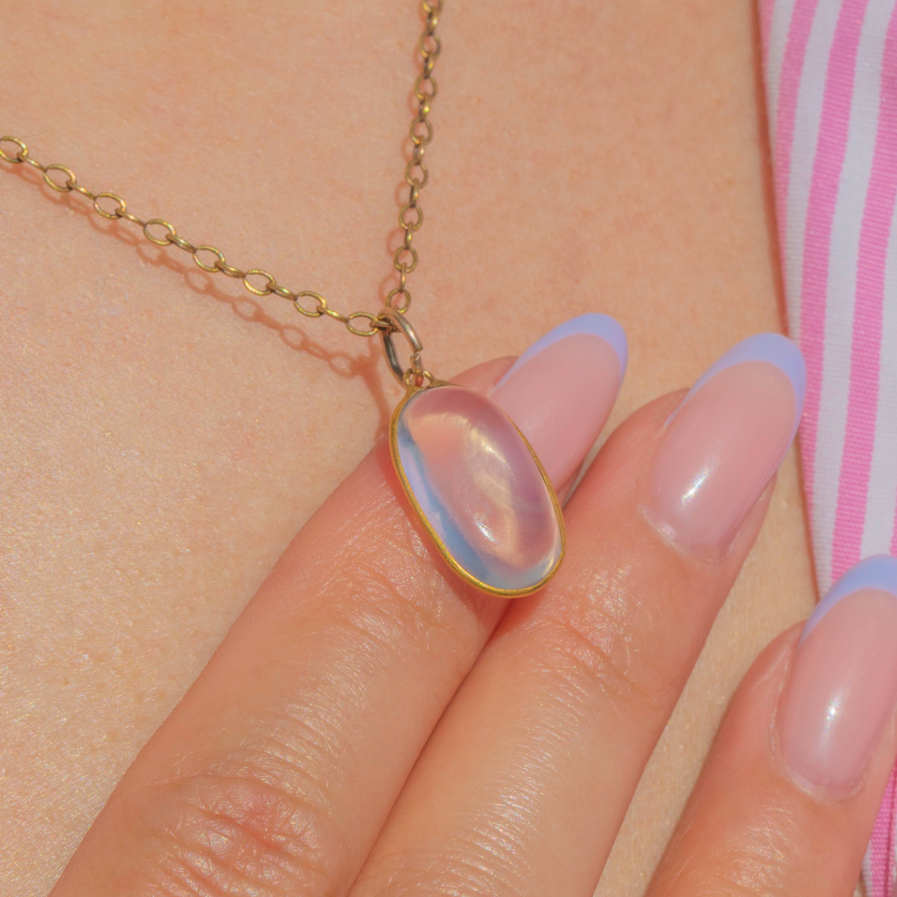 EXCELLENT: This antique 15ct Gold Moonstone cabochon pendant is in excellent condition. The Moonstone is perfectly smooth, with no chips or scuffs, and securely held within its radiant Gold bezel setting!