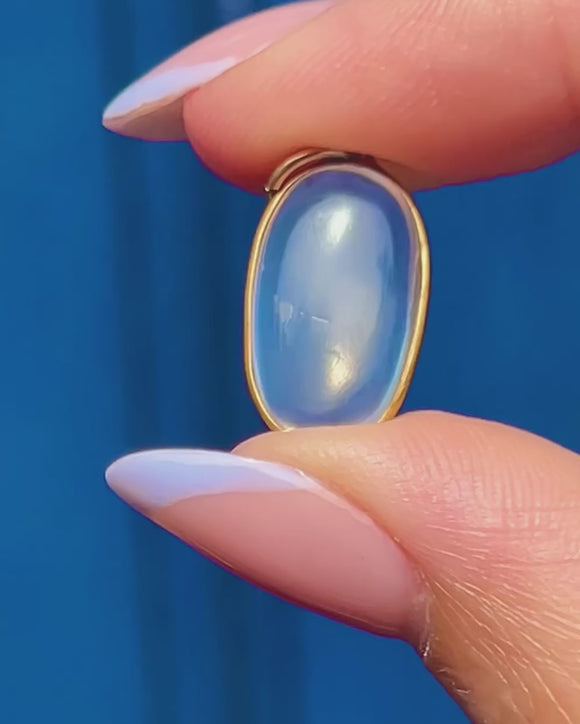 This antique 15ct Gold Moonstone cabochon charm is a magnificent little treasure! The 3.04ct Moonstone comes to life beneath the light, radiating that brilliant silvery adularescence for which antique Moonstones are so desired.