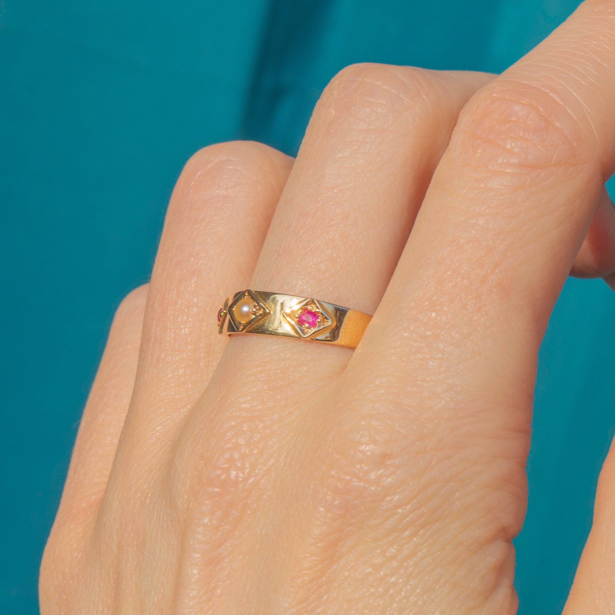 Antique 15ct Gold Ruby Pearl Gypsy Ring Item added