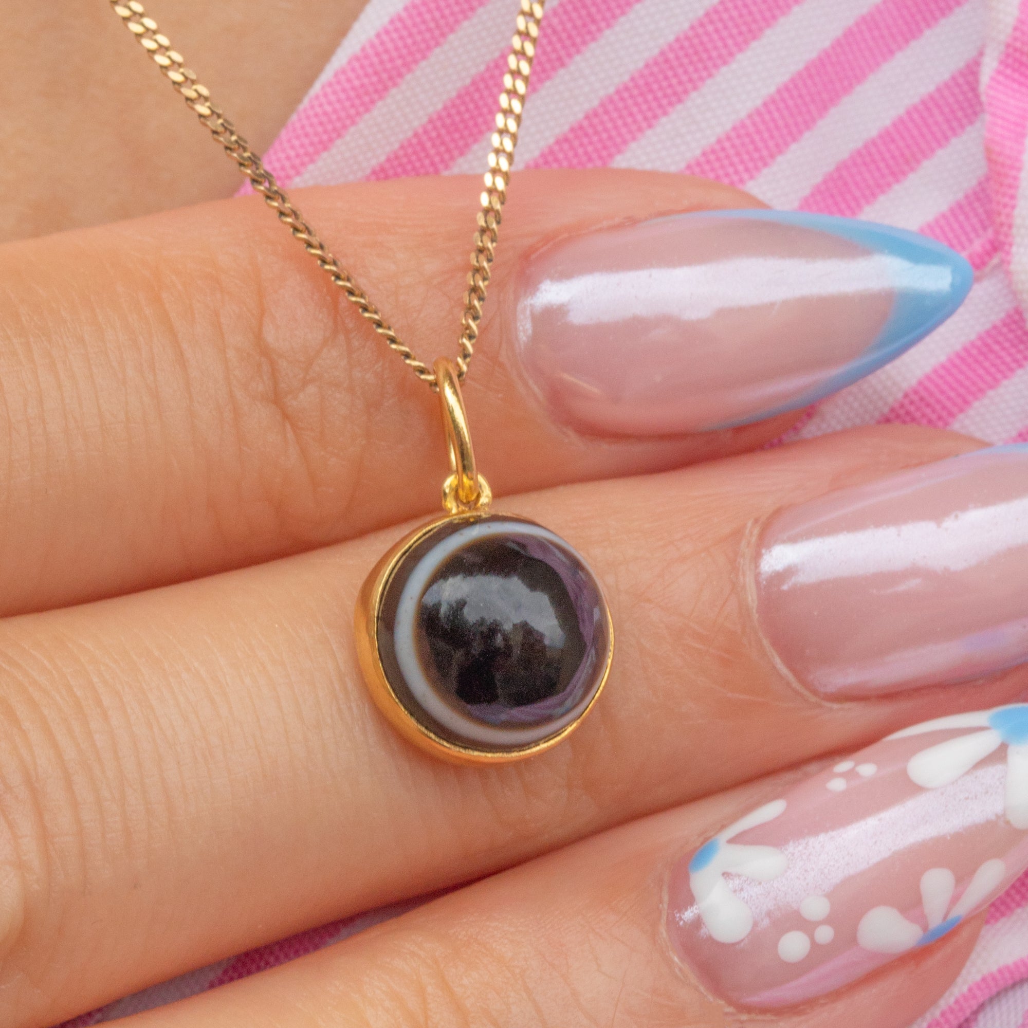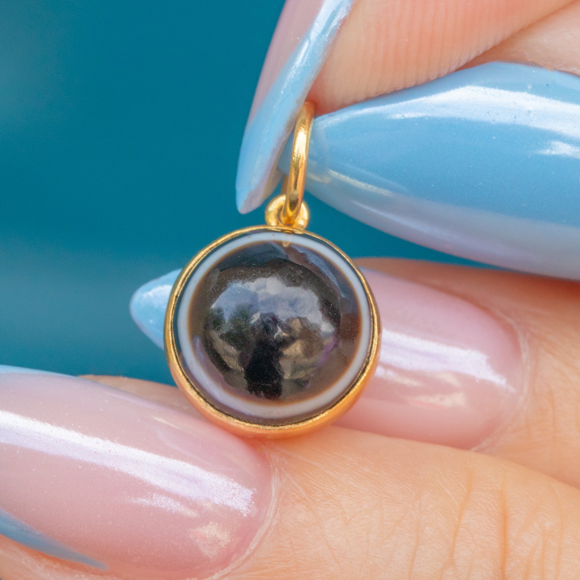 Akin to a bullseye, this earthy toned Victorian Agate charm features a white band spanning the circumference of the stone - a unique quality for which the gemstone is so revered.