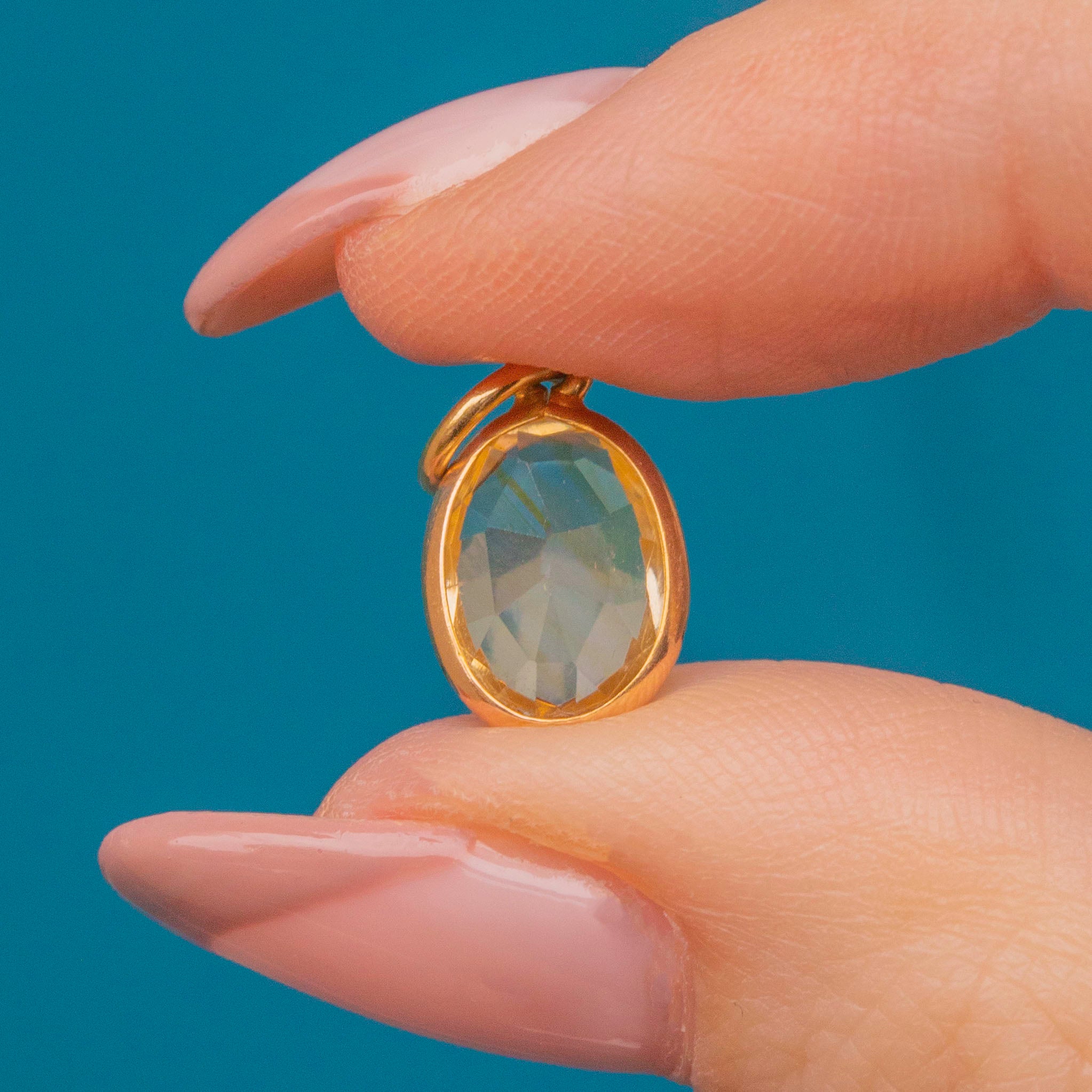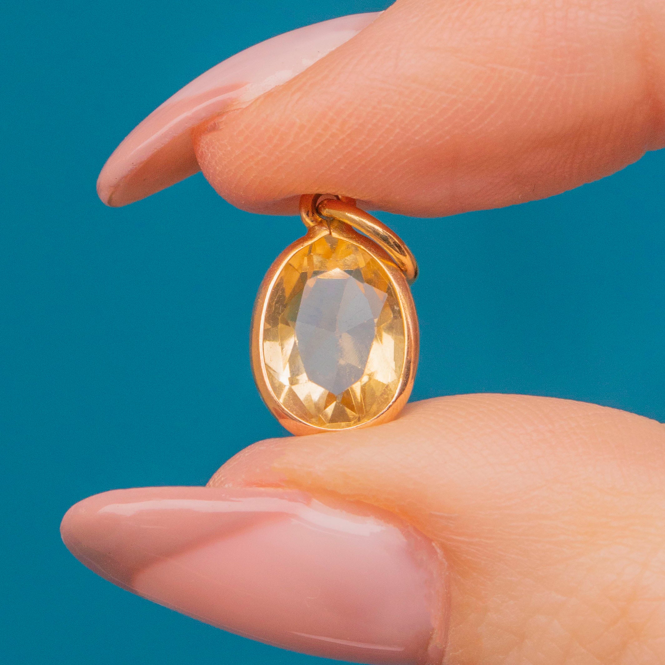 Add a slice of sunshine to your décolletage with this sweet antique 18ct Gold Citrine bezel-set charm! The wonderfully faceted 1.59ct Citrine radiates pale lemony hues and is perfectly complimented by the brightly saturated 18ct Gold bezel.