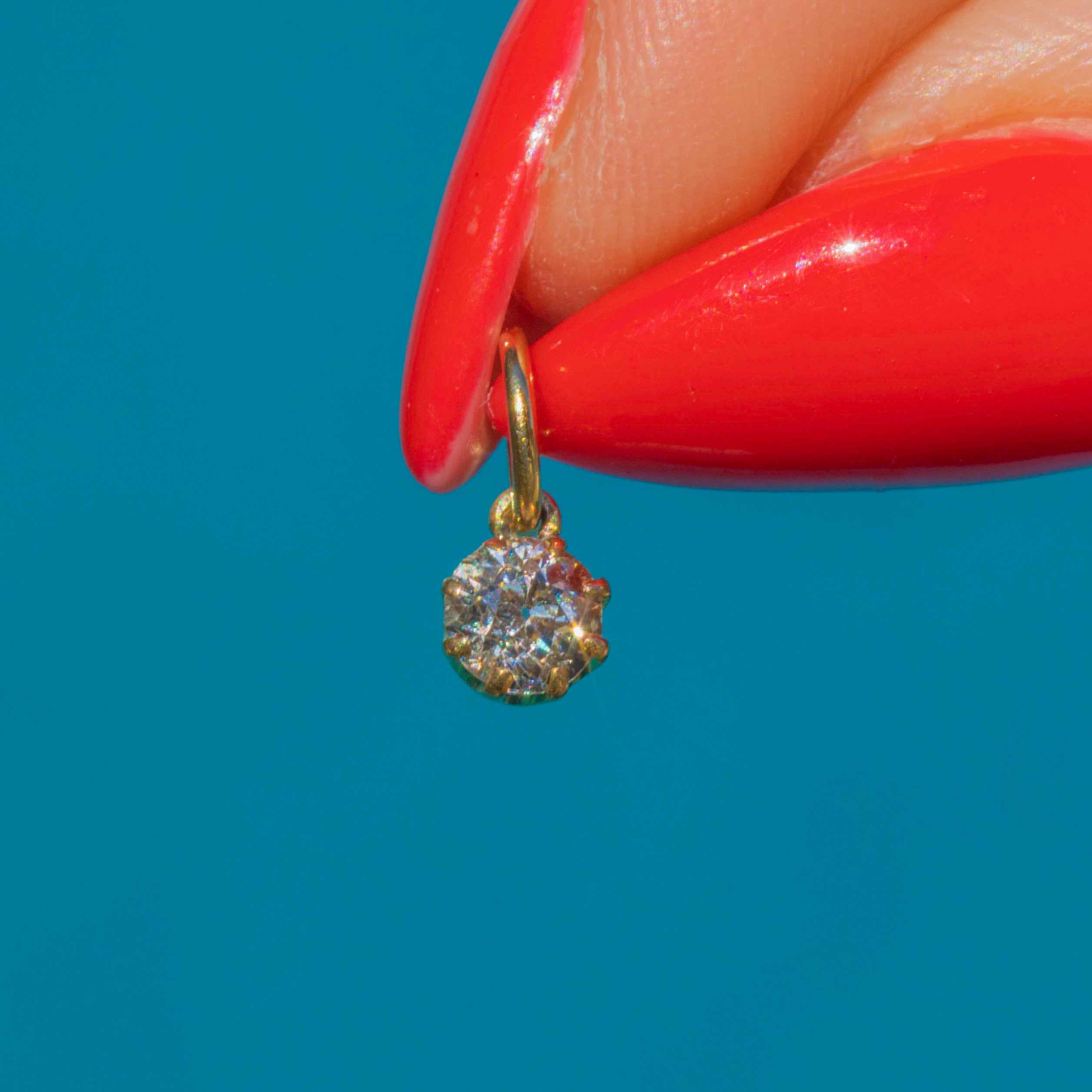 This antique Victorian charm features a sparkling Old Cut Diamond set in rich 18ct Gold. Though petite in size, the Diamond is impressive at approximately 0.35ct, offering bright flashes of light from its old-world faceting.