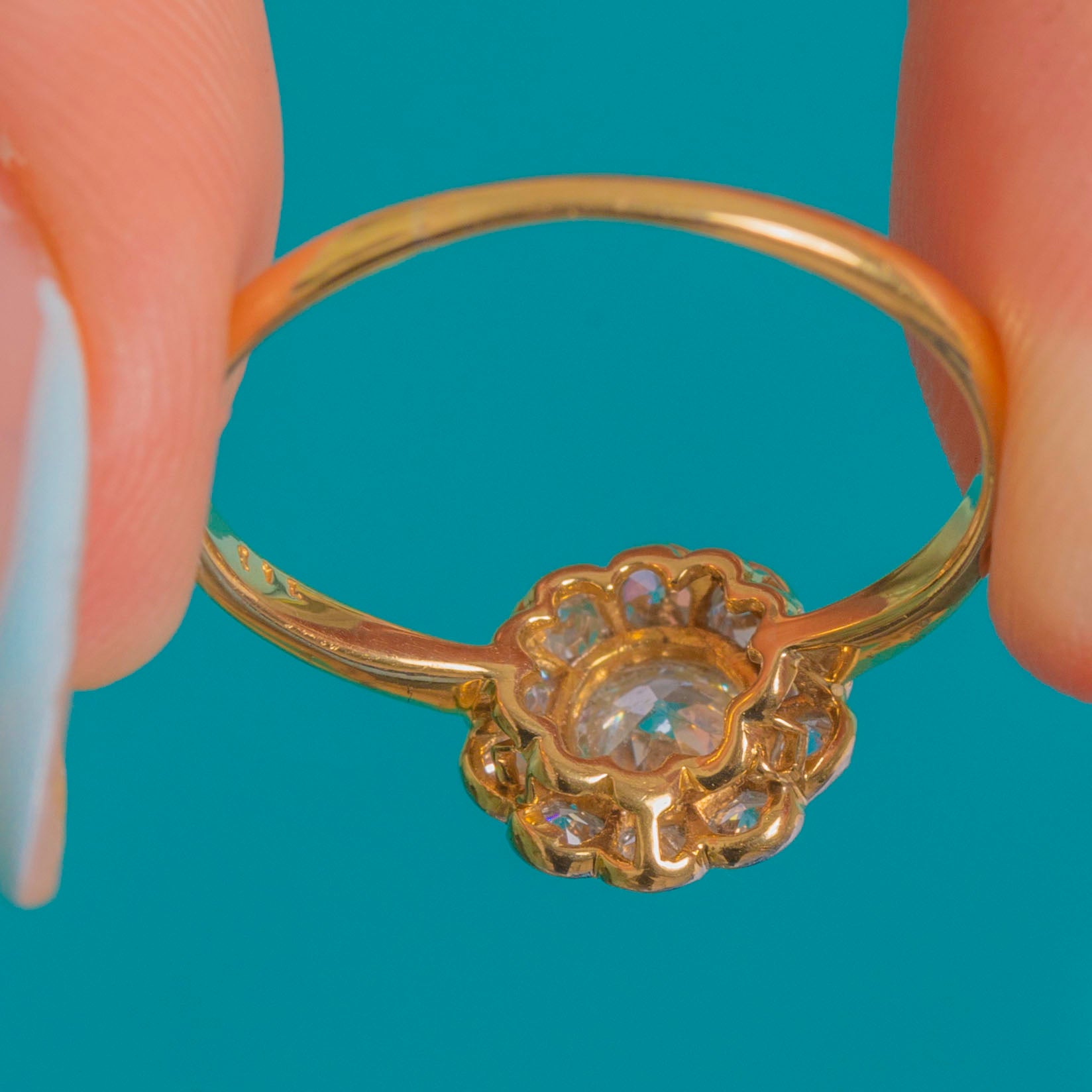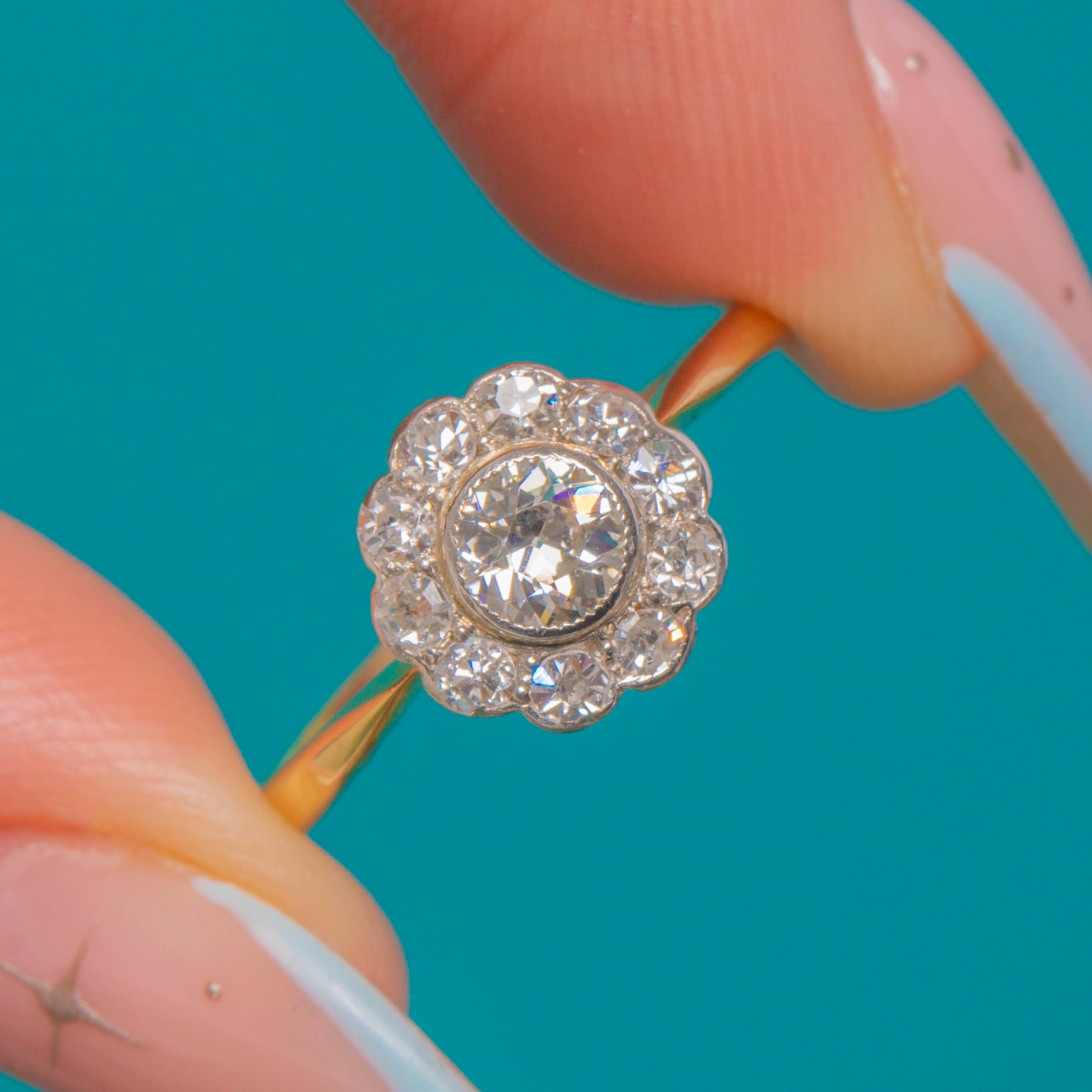 Antique 18ct Gold Diamond Daisy Cluster Engagement Ring - 0.25ct Central Diamond