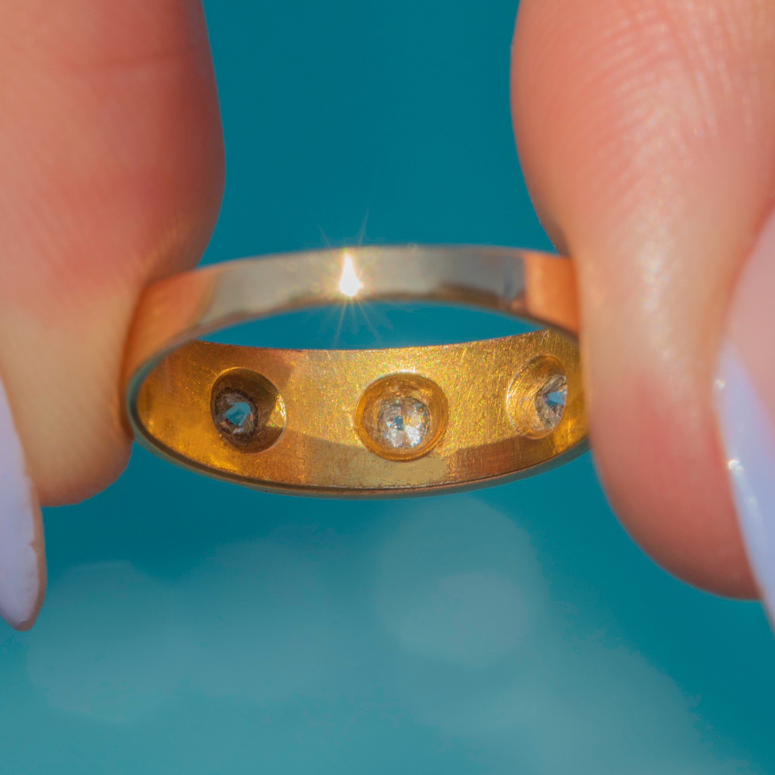 Antique 18ct Gold Diamond Three Stone Gypsy Ring