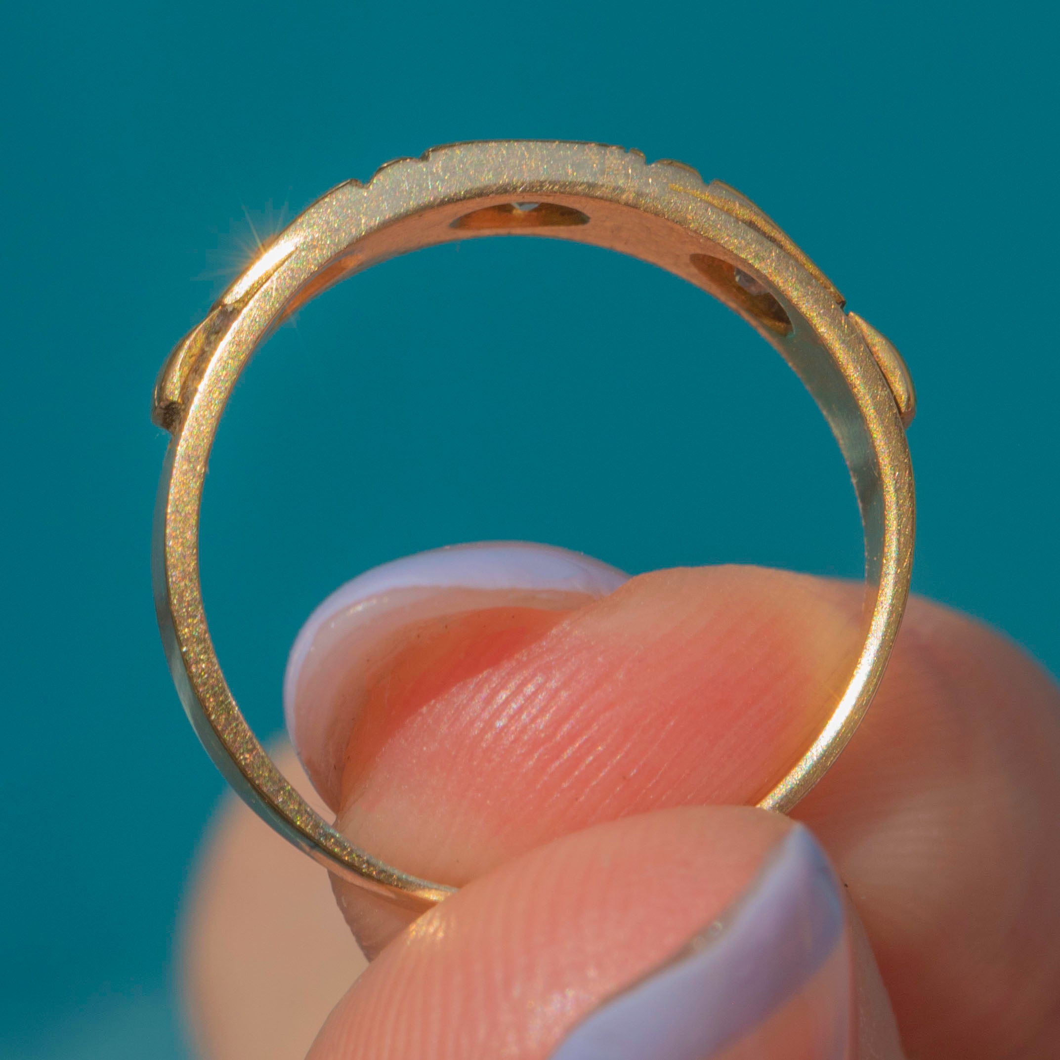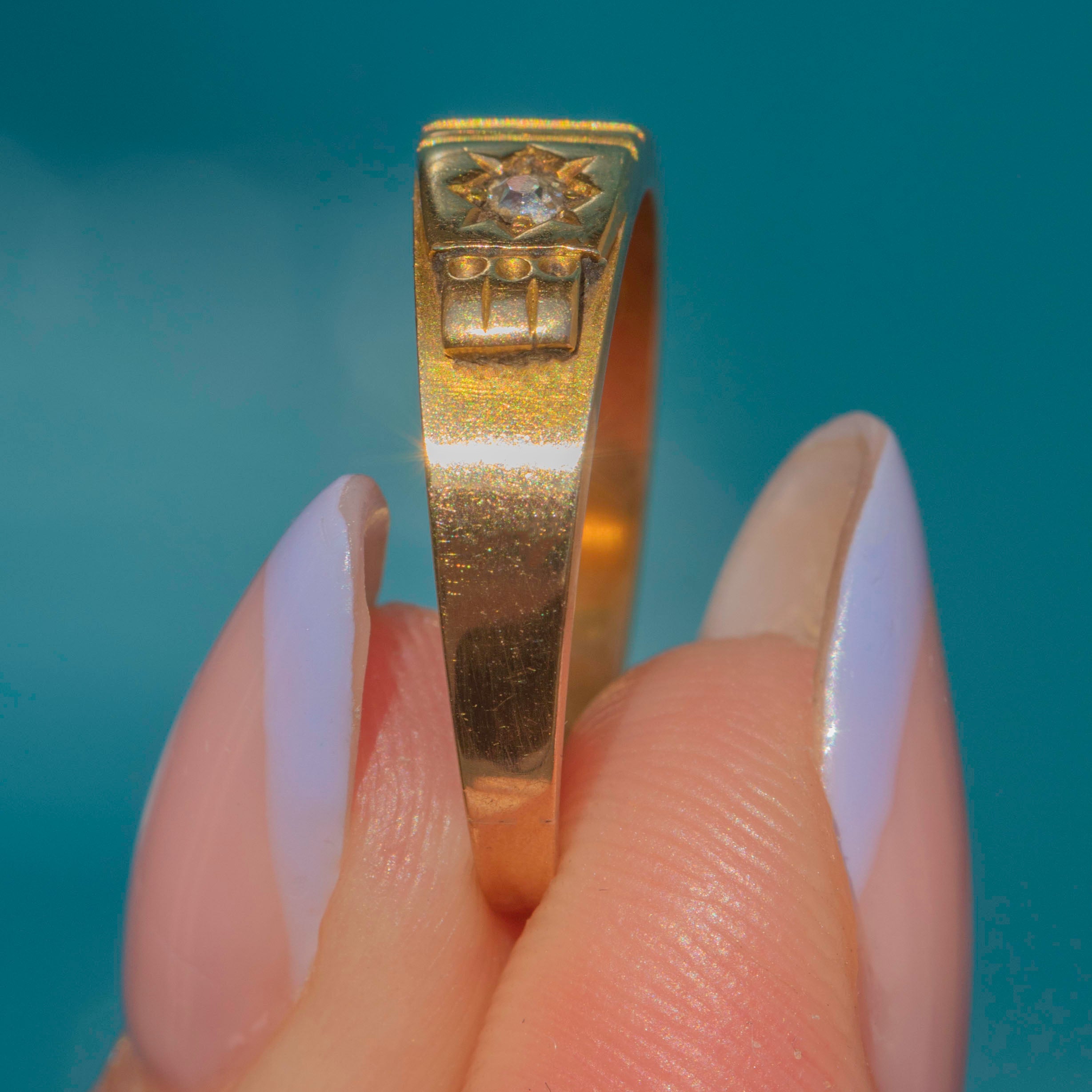 This antique Diamond gypsy ring is the perfect piece to incorporate a touch of Victorian charm into your everyday attire! Crafted from solid 18ct Gold, the band has a gorgeously rich saturation and feels luxurious on the hand.