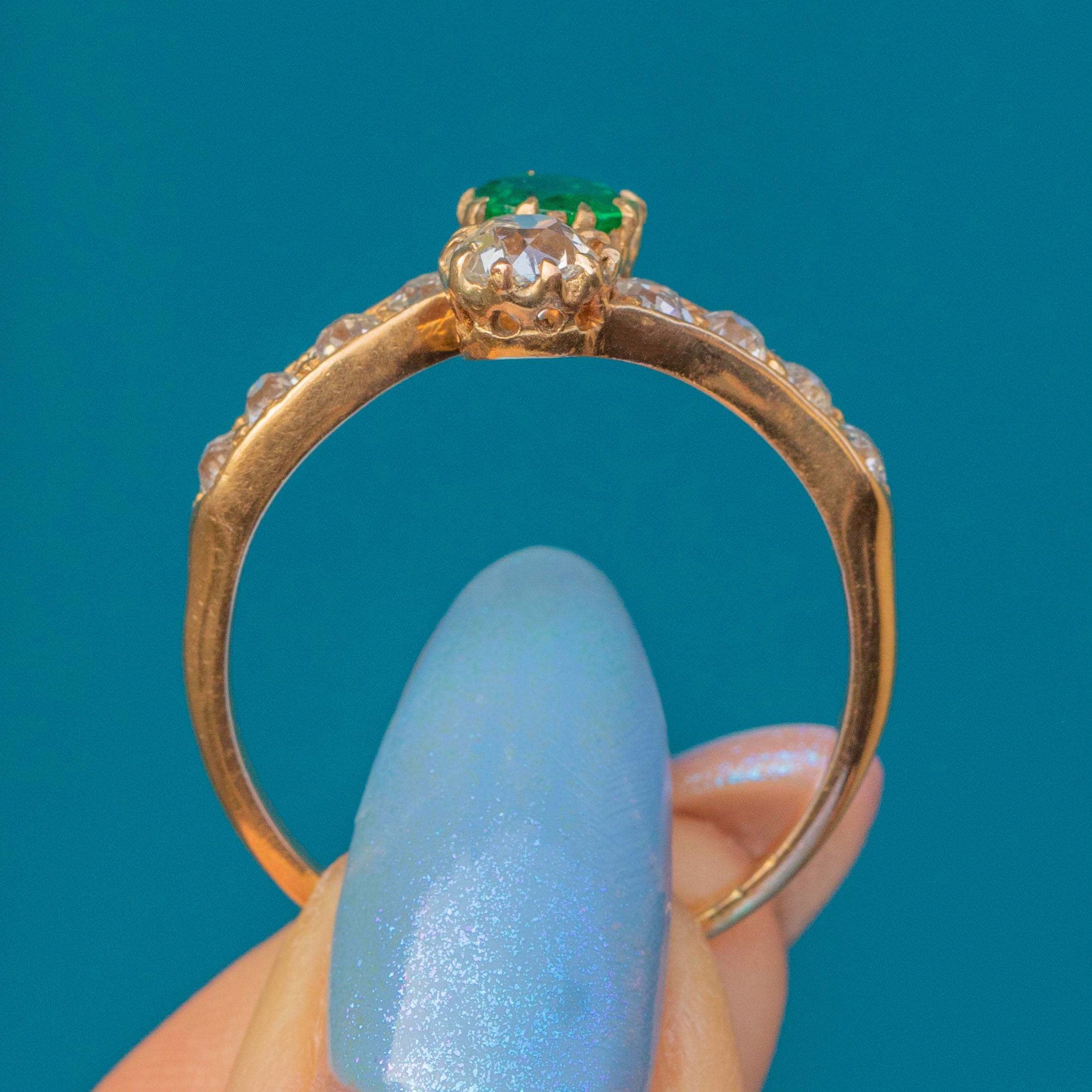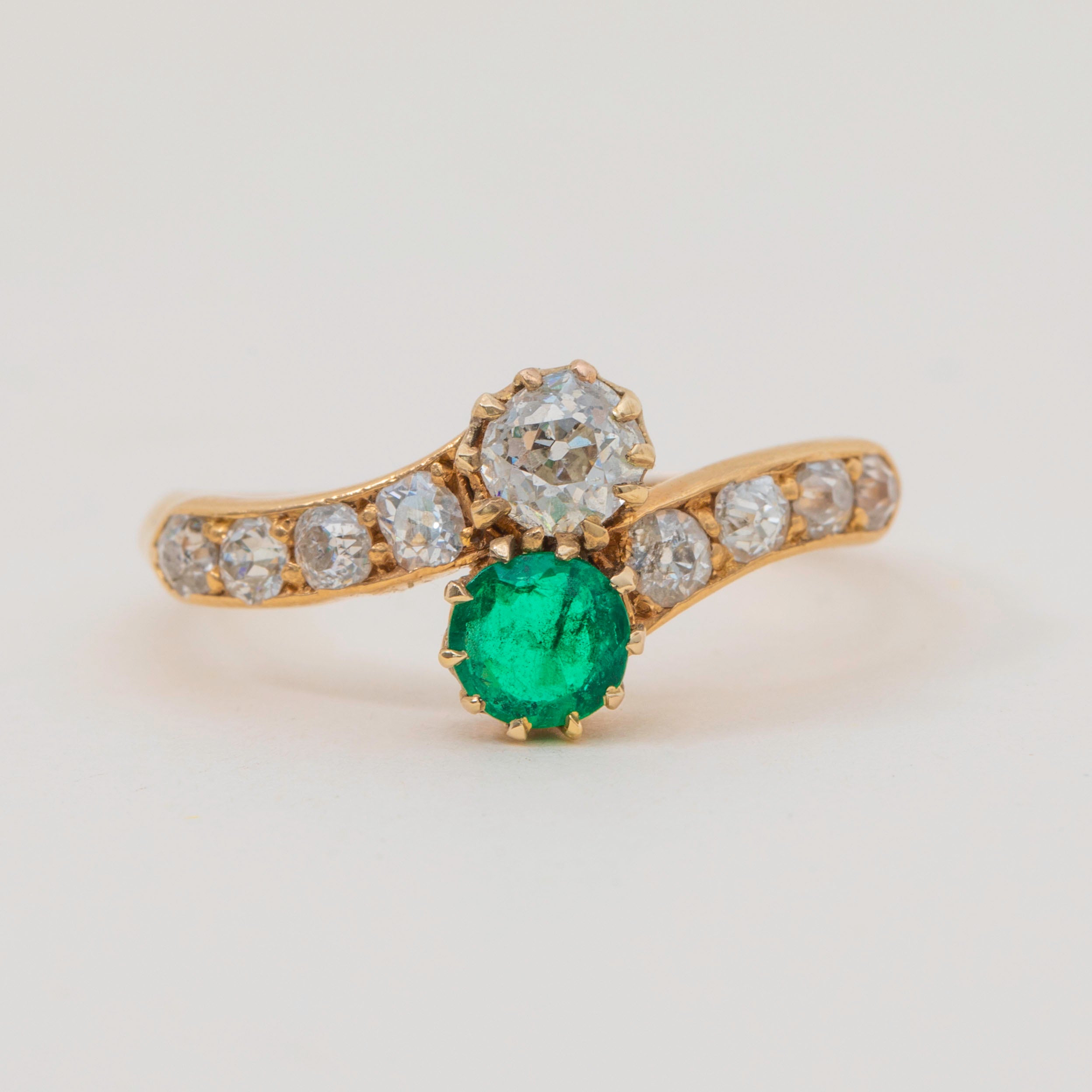 Antique 18ct Gold Emerald Diamond Toi et Moi Ring, 0.70ct Diamonds Item added