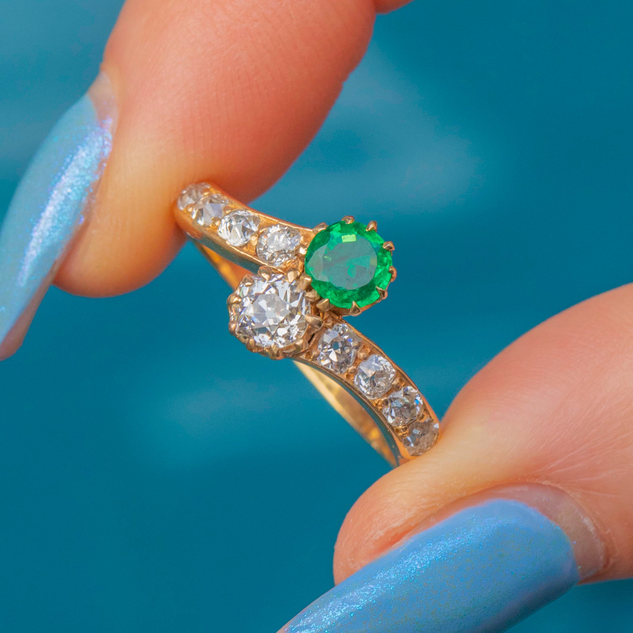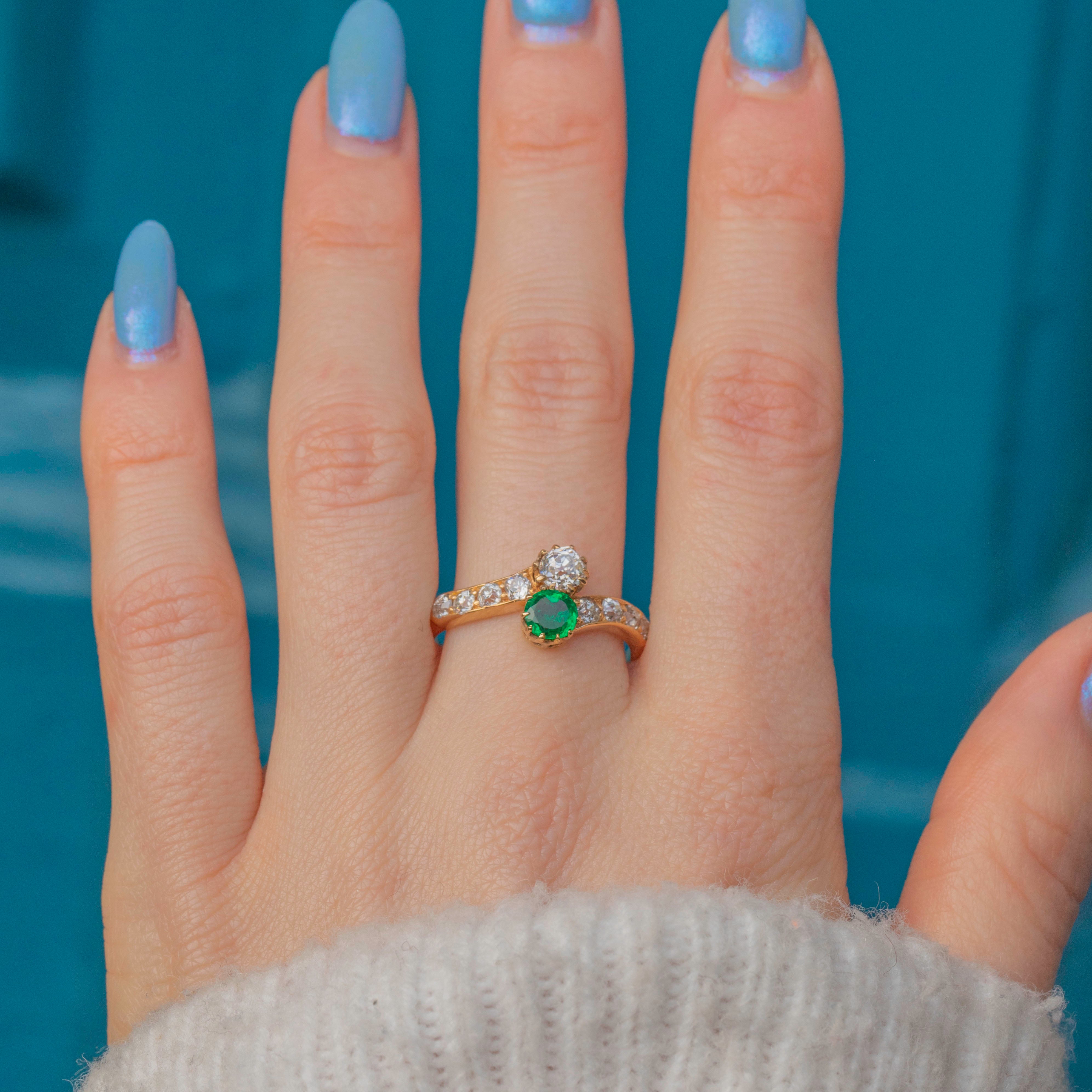 Symbolic of a union between two partners, Toi-et-moi rings - directly translating to 'you and me' - ooze romance and sentimental value. A superb, elegant antique piece, this Emerald and Diamond Edwardian ring would make a wonderful choice for a unique engagement ring!