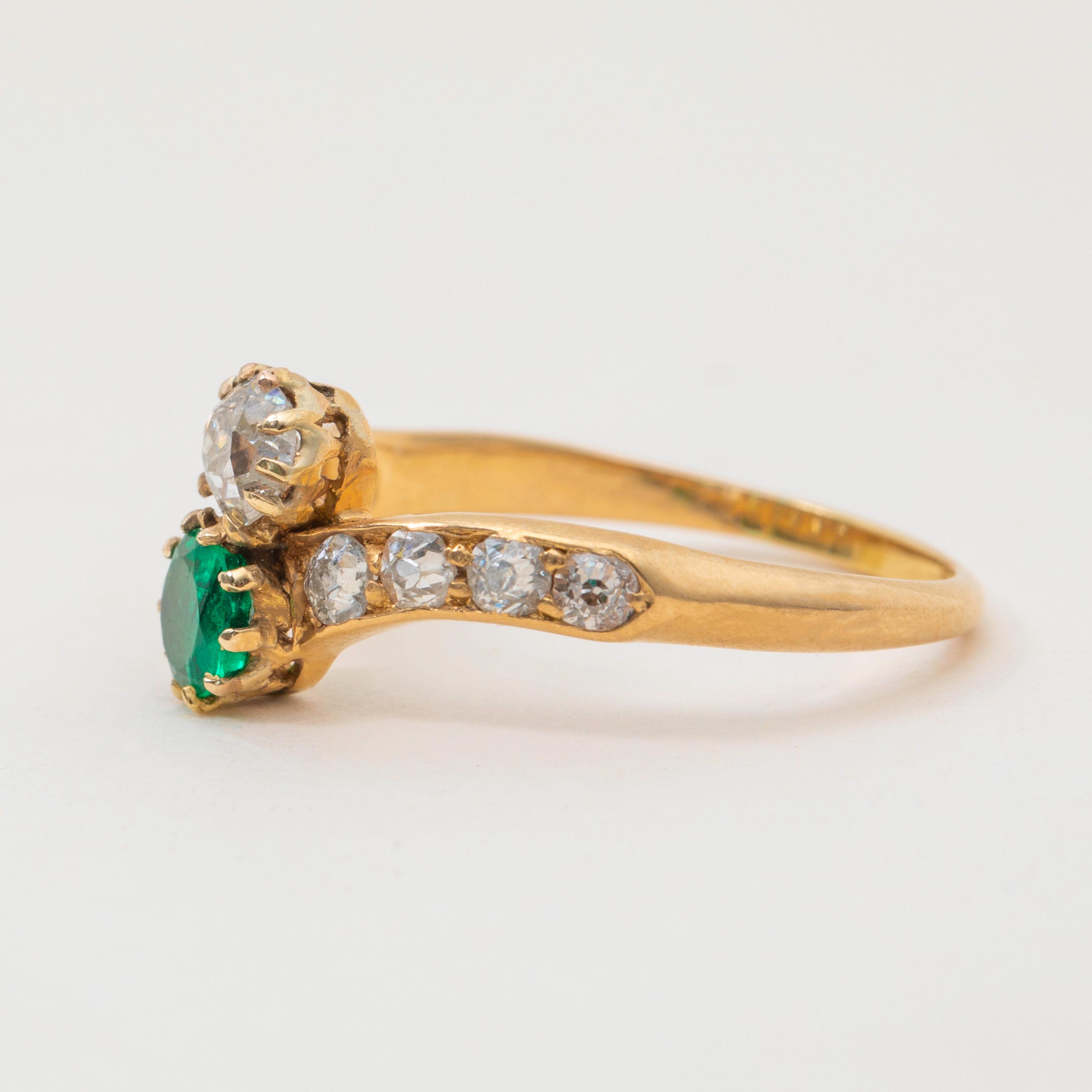 Antique 18ct Gold Emerald Diamond Toi et Moi Ring, 0.70ct Diamonds