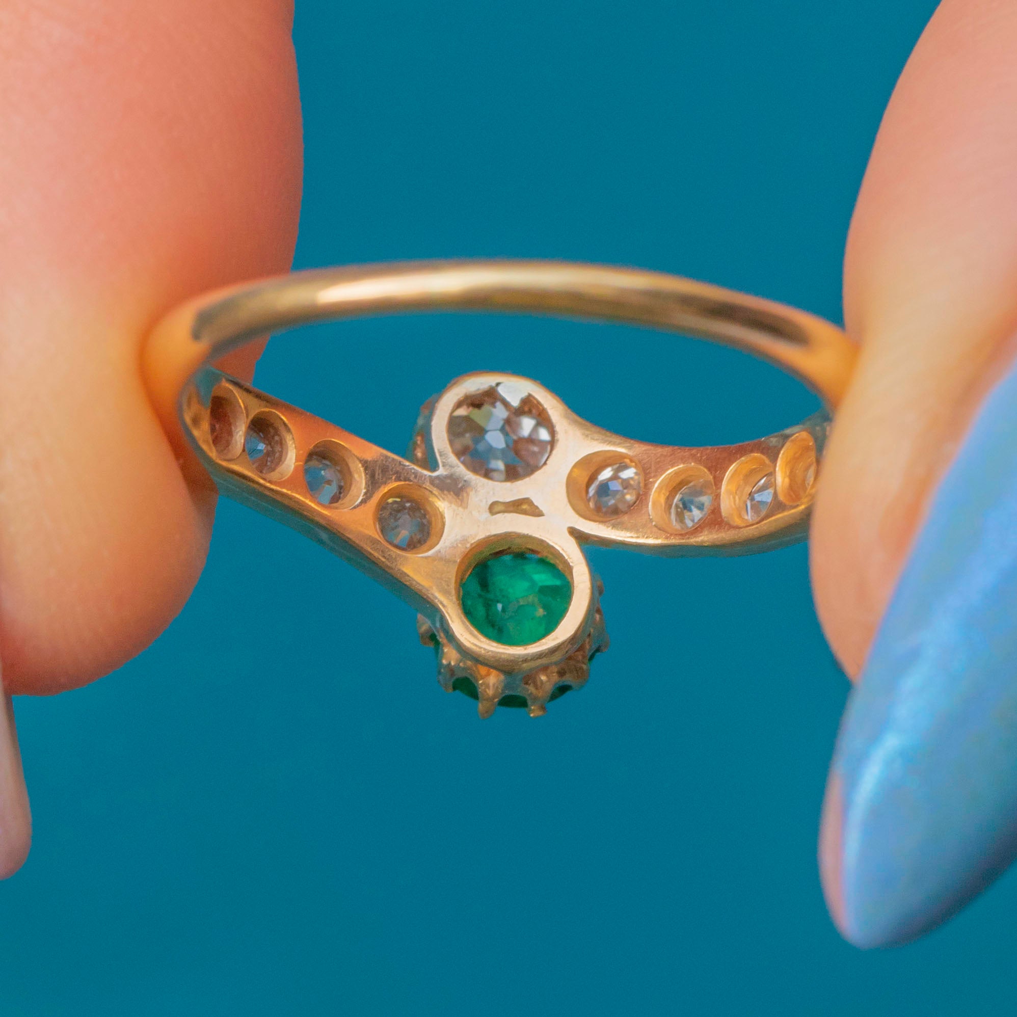 This antique 18ct Gold Emerald Diamond toi et moi ring is divine!