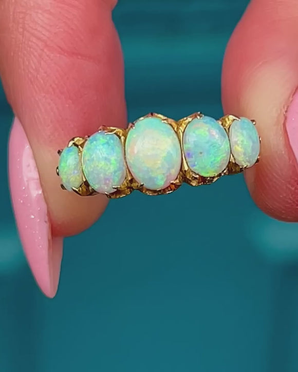 This antique 18ct Gold Opal five stone ring is a stunning piece and an exemplar of Victorian craftsmanship!