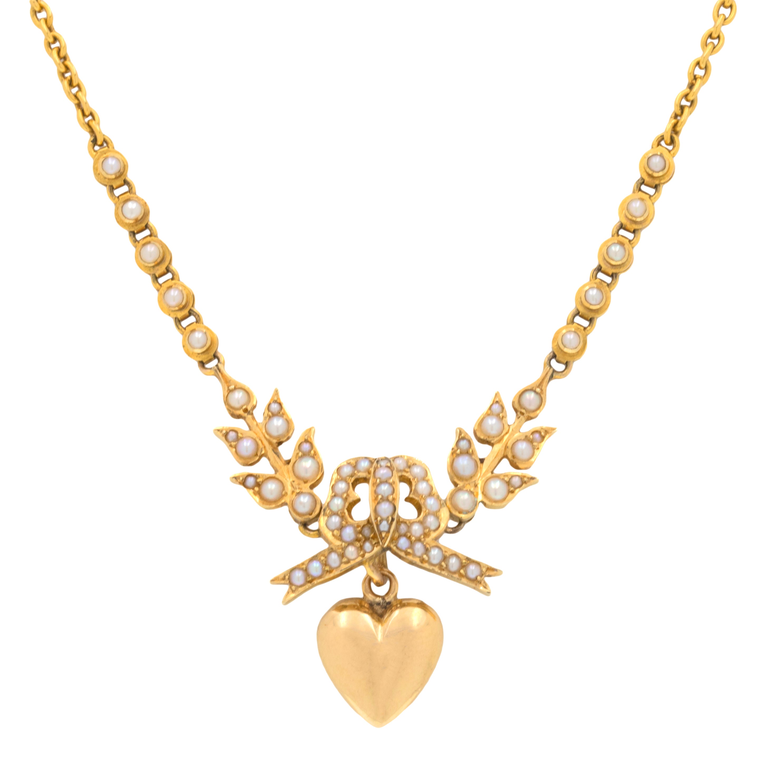 Antique 18ct Gold Pearl Necklace with Bow Motif, Interchangeable Heart Drop