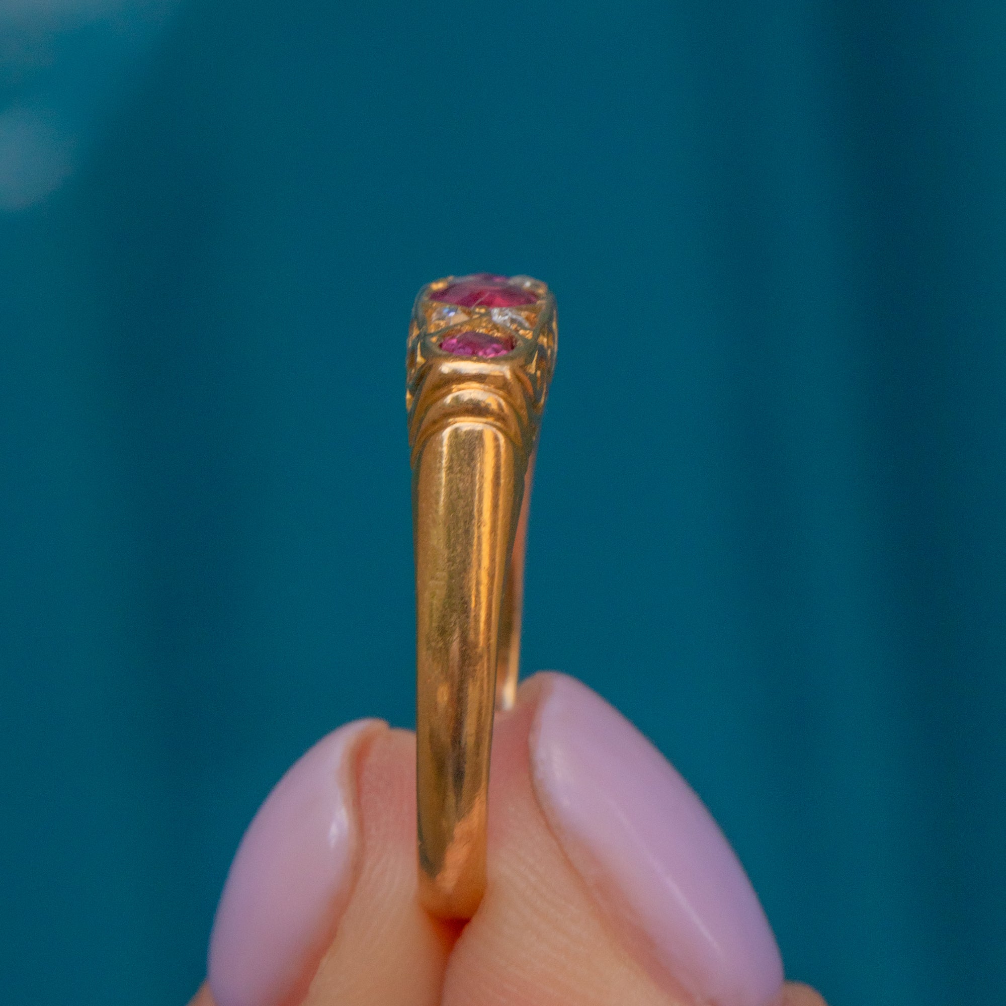 Antique 18ct Gold Pink Sapphire Diamond Boat Ring