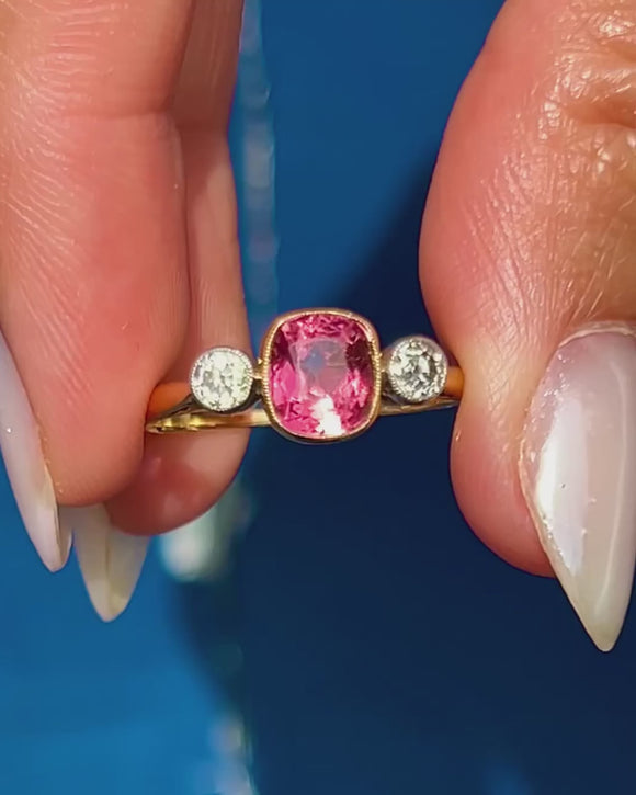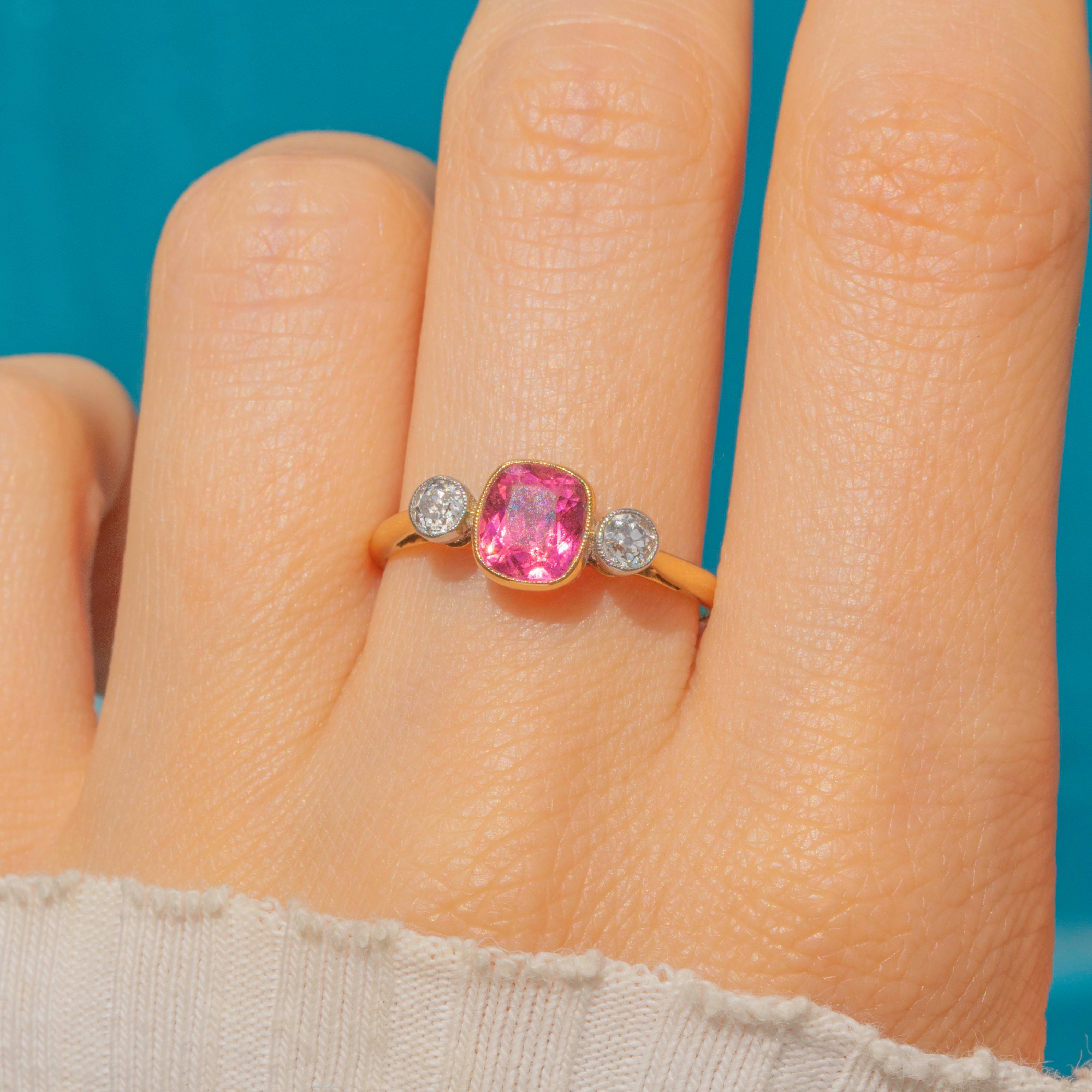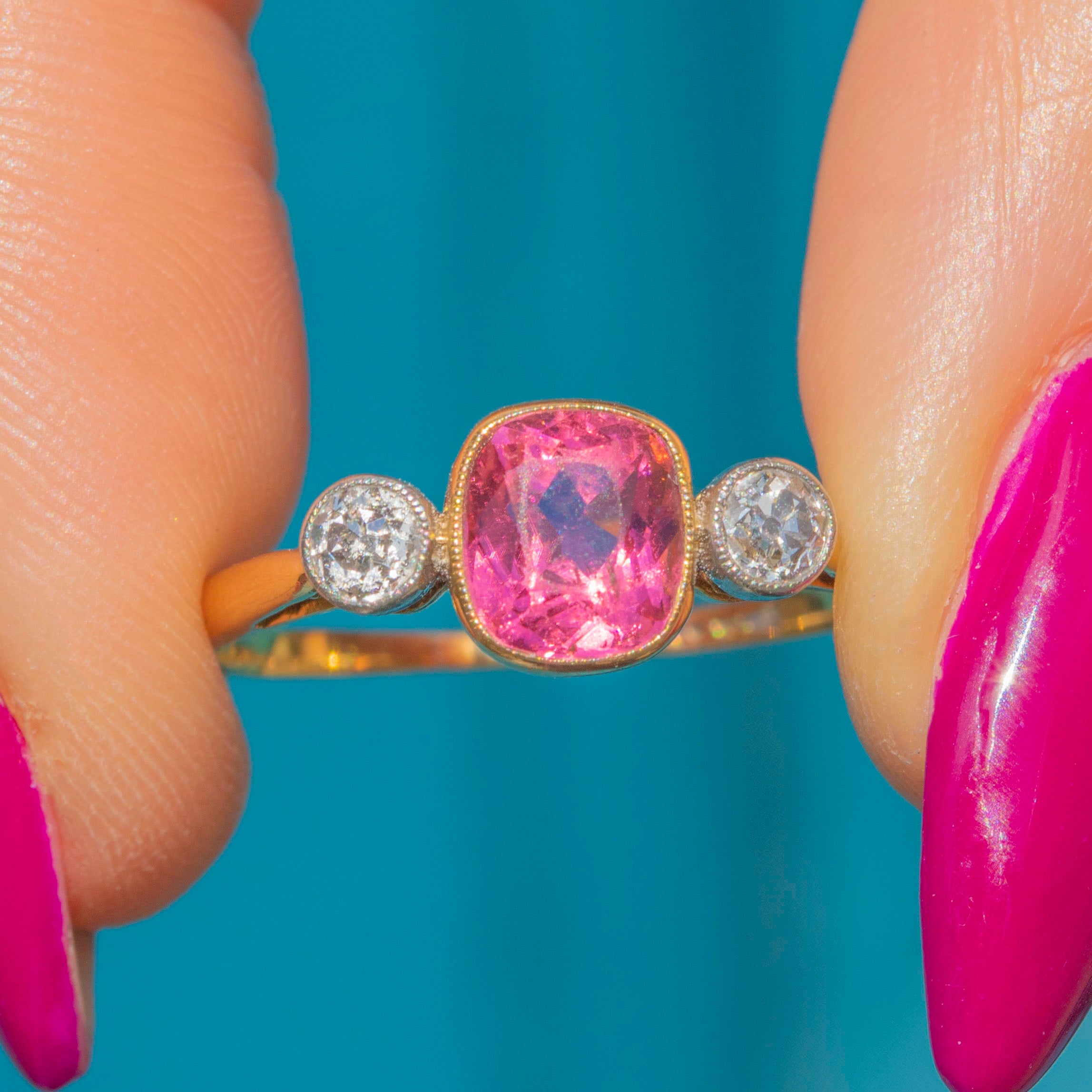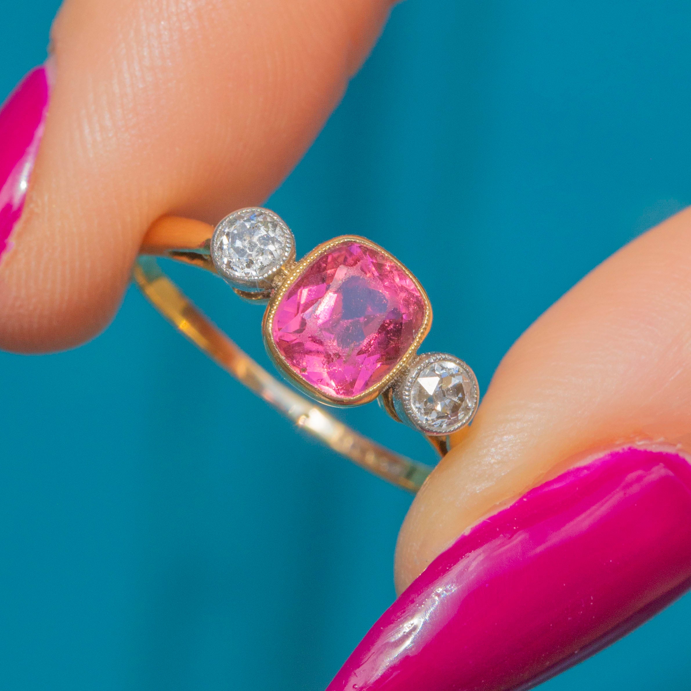Antique 18ct Gold Pink Tourmaline Diamond Ring, 0.90ct Tourmaline